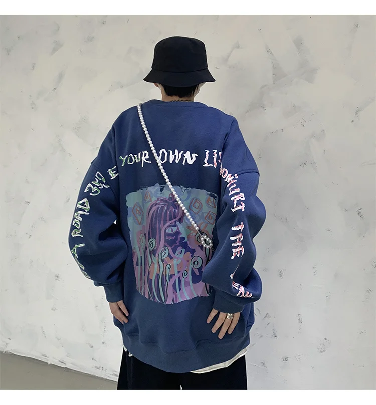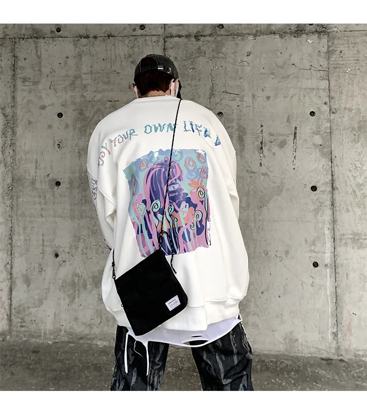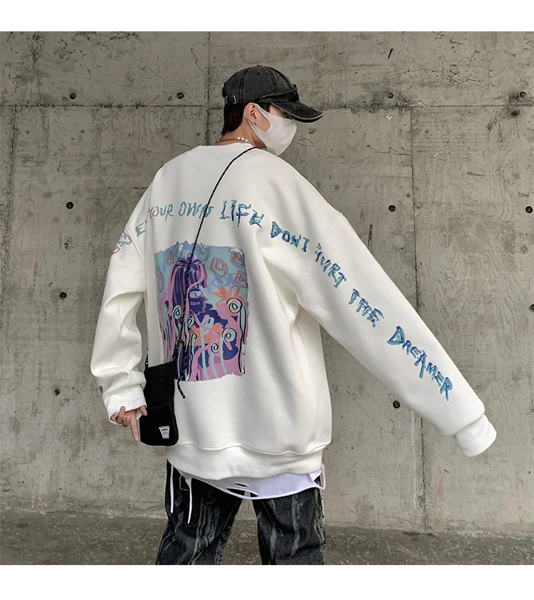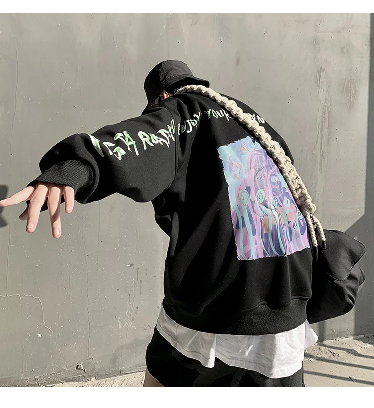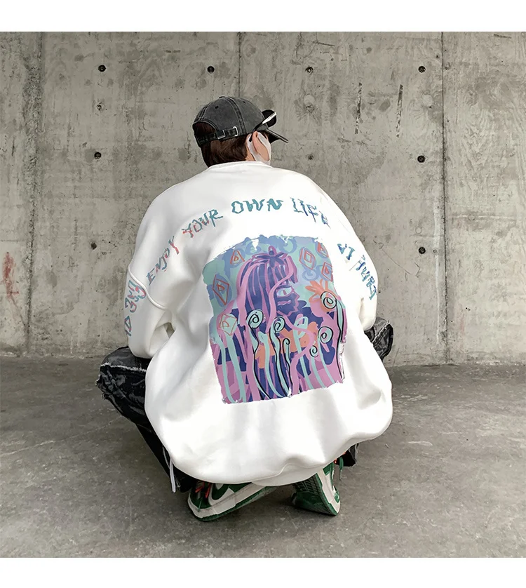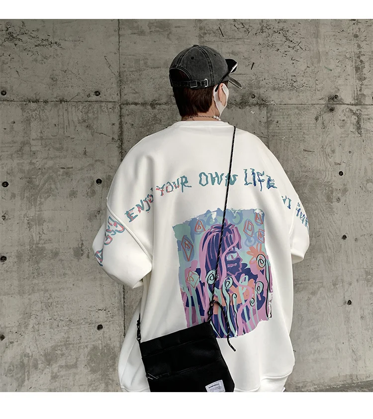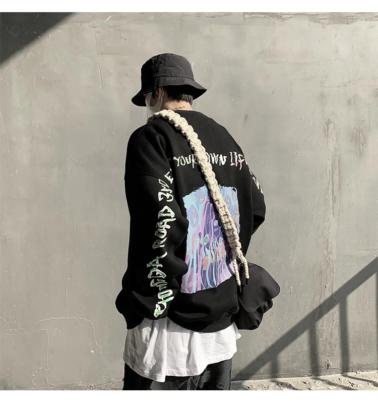 Men's Cartoon Graffiti High Street Sweatshirt Oversize Male Letter Printed O Neck Hoodies Harajuku Unisex Pullovers
