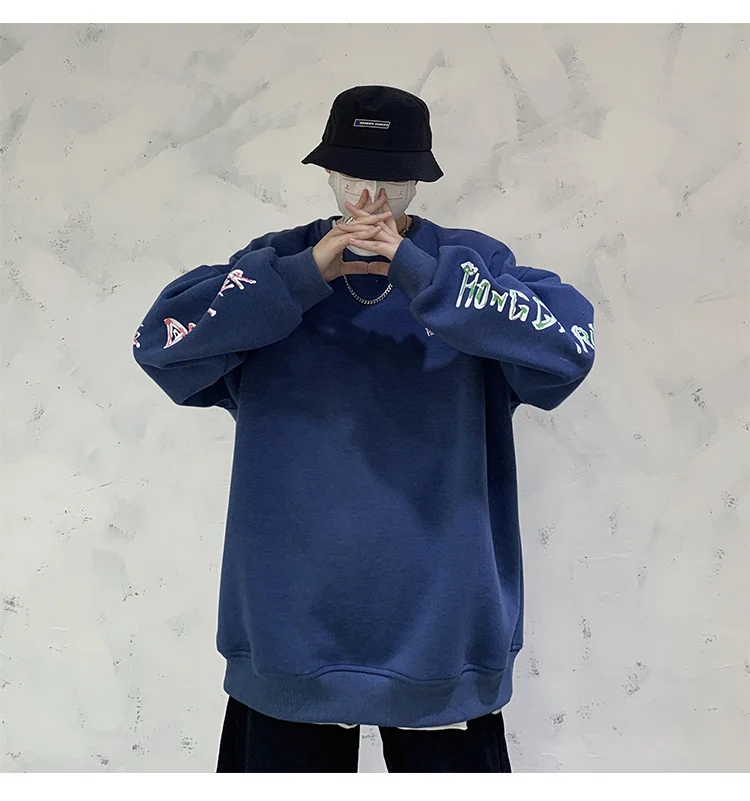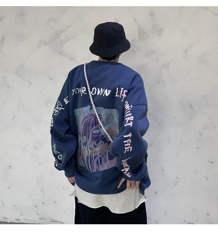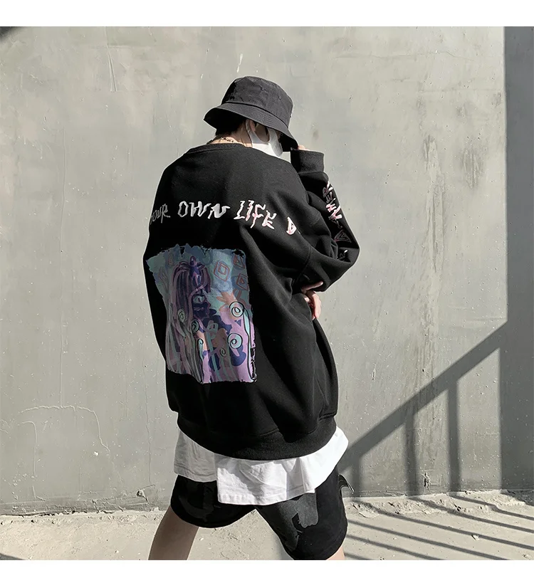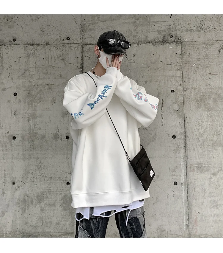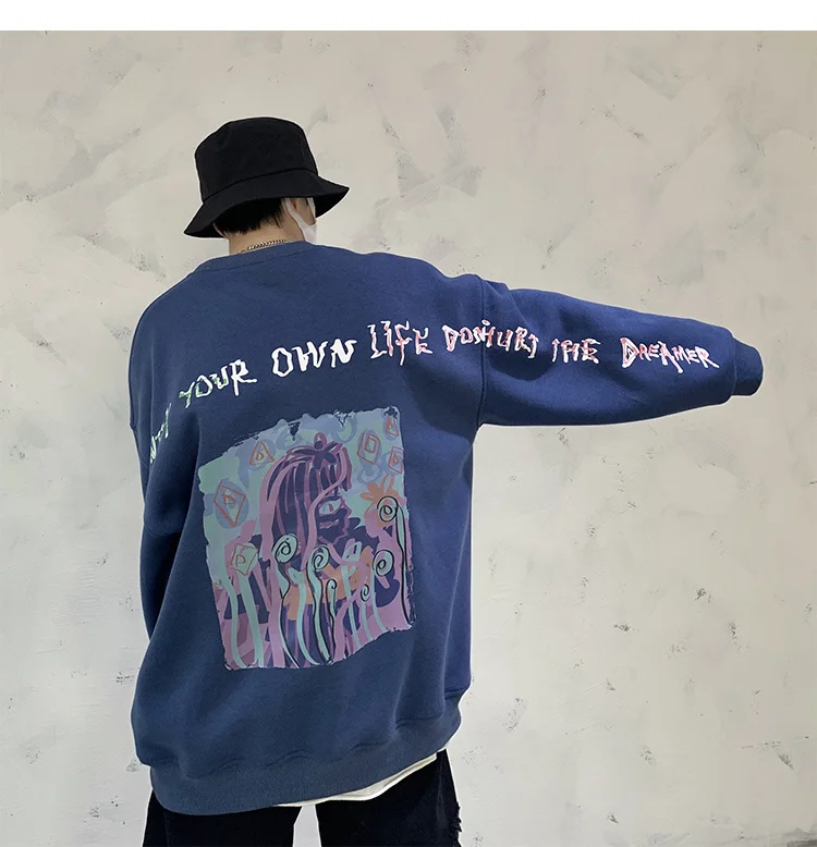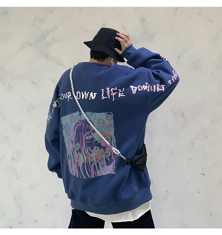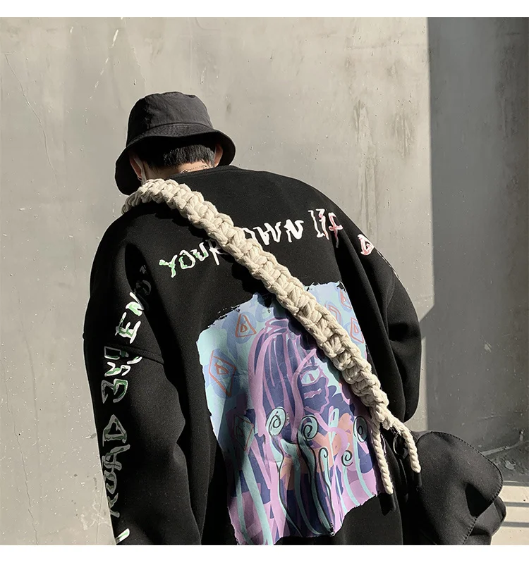 Men's Cartoon Graffiti High Street Sweatshirt Oversize Male Letter Printed O Neck Hoodies Harajuku Unisex Pullovers