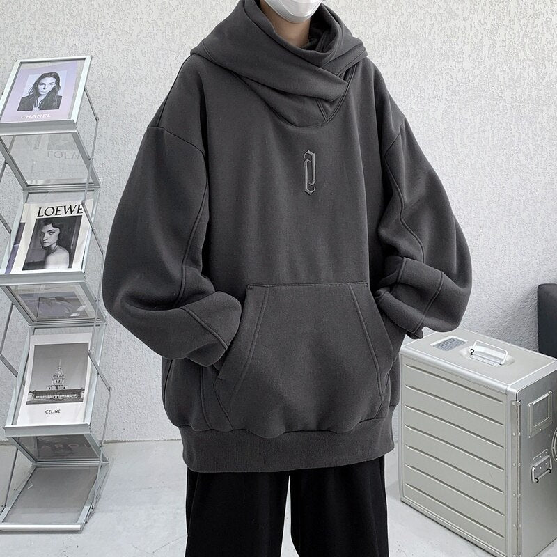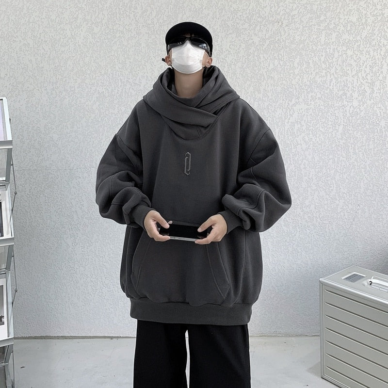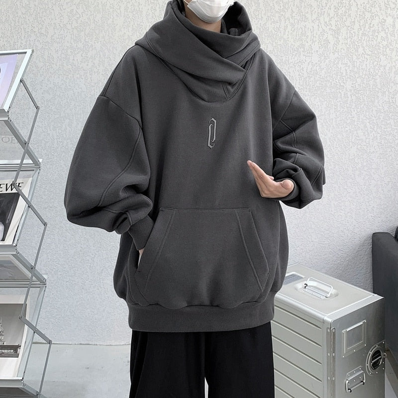 New Men Gothic Hoodies Fleece Cowl Design Streetwear Fashion Hip Hop Hooded Pullovers Harajuku Male Sweatshirts