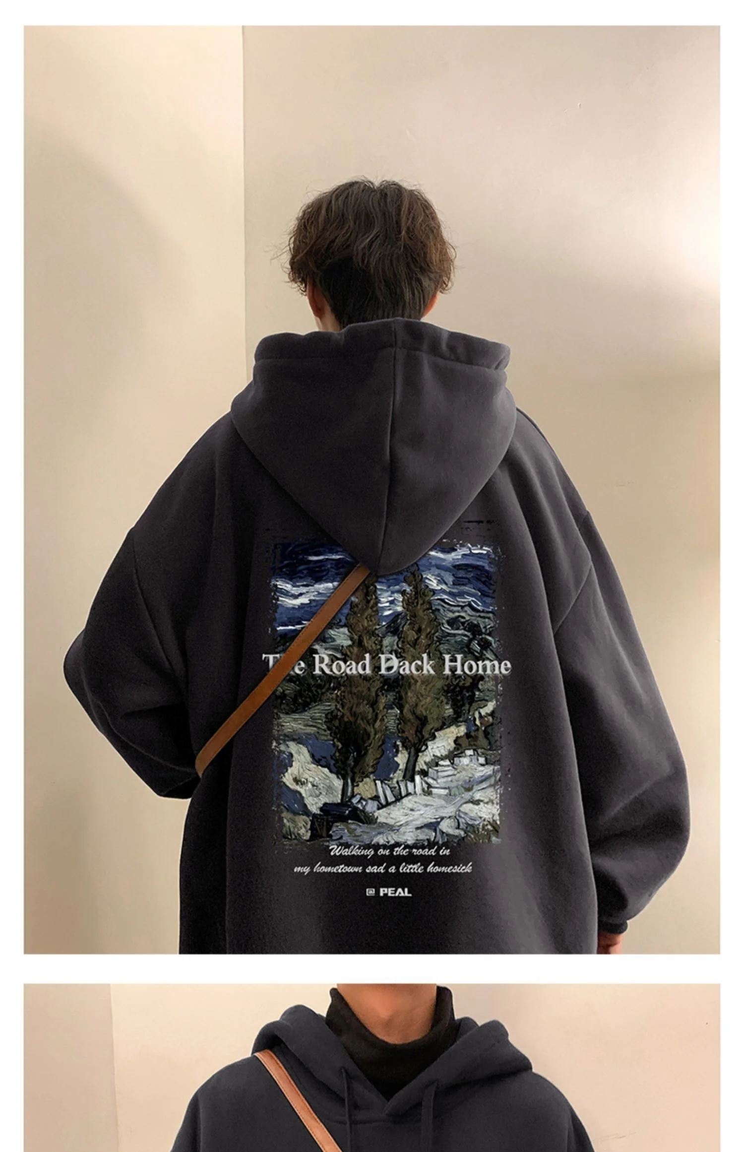 Oil Painting Men's Hoodies Fleece Thicken Warm Fashion Unisex Pullovers Hip Hop Loose Male Casual Sweatshirts