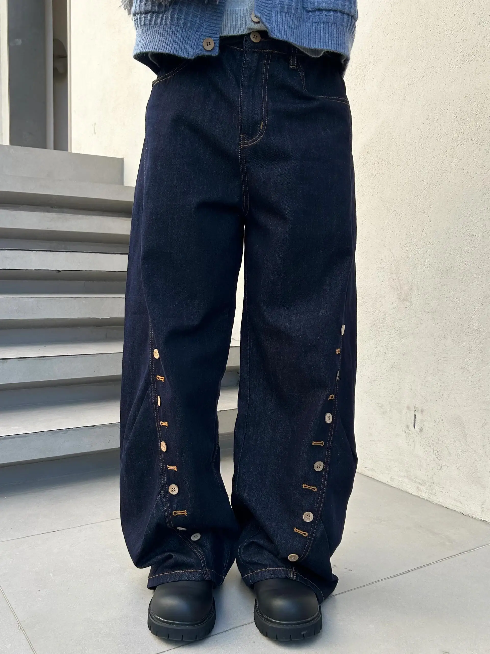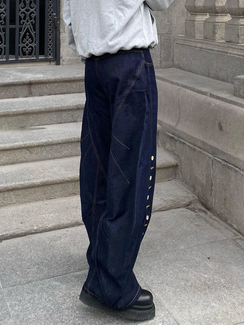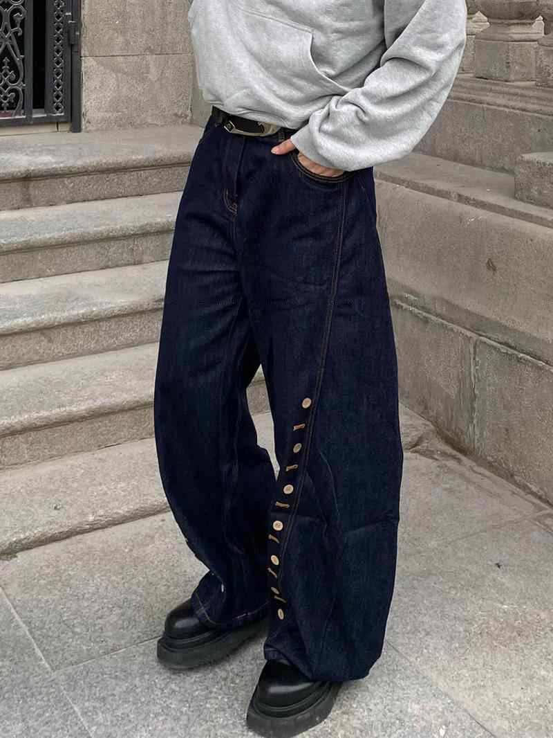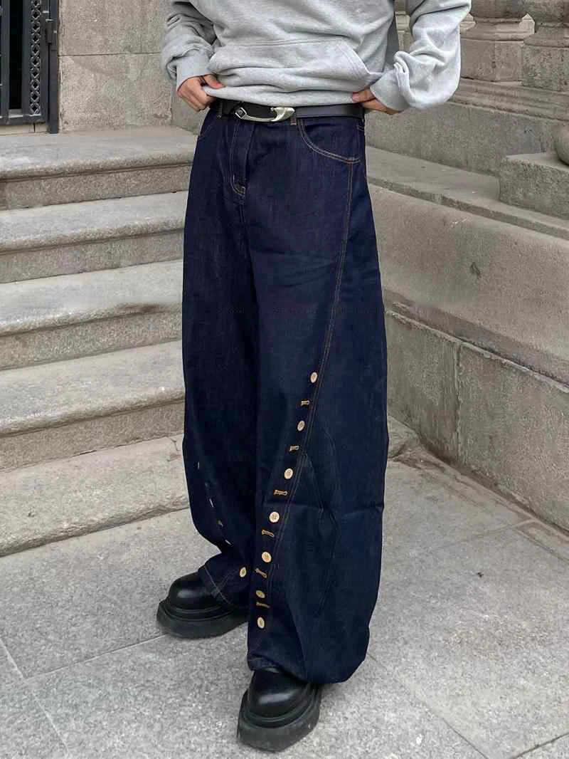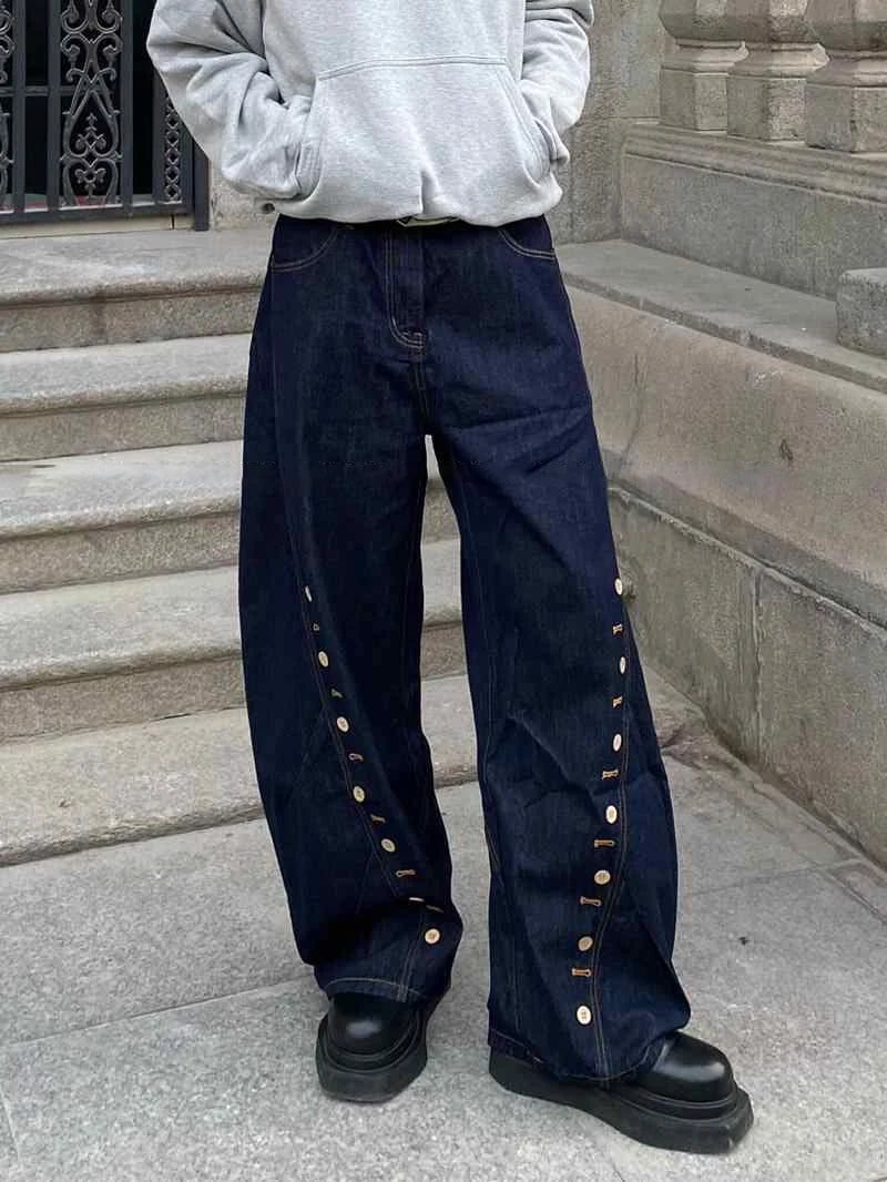AIDASE - American Streetwear Dark Blue Baggy Jeans for Women Hip Hop Style Lady Denim Trousers Ropa De Mujer