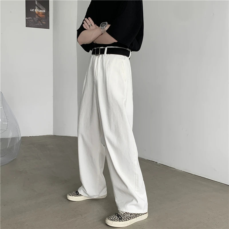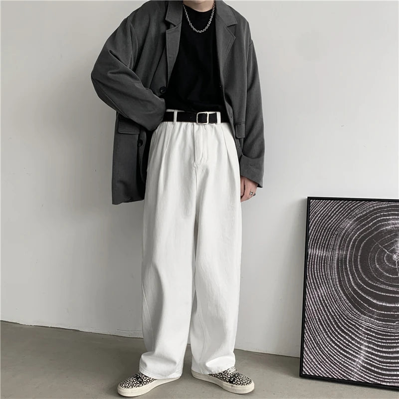 AIDASE - Baggy Jeans Men Oversized Casual Wide Leg Jeans Men Streetwear Korean Loose Straight White Jeans Mens Denim Trousers S-3XL