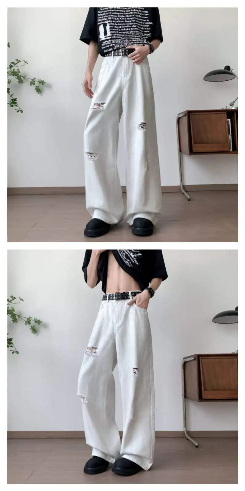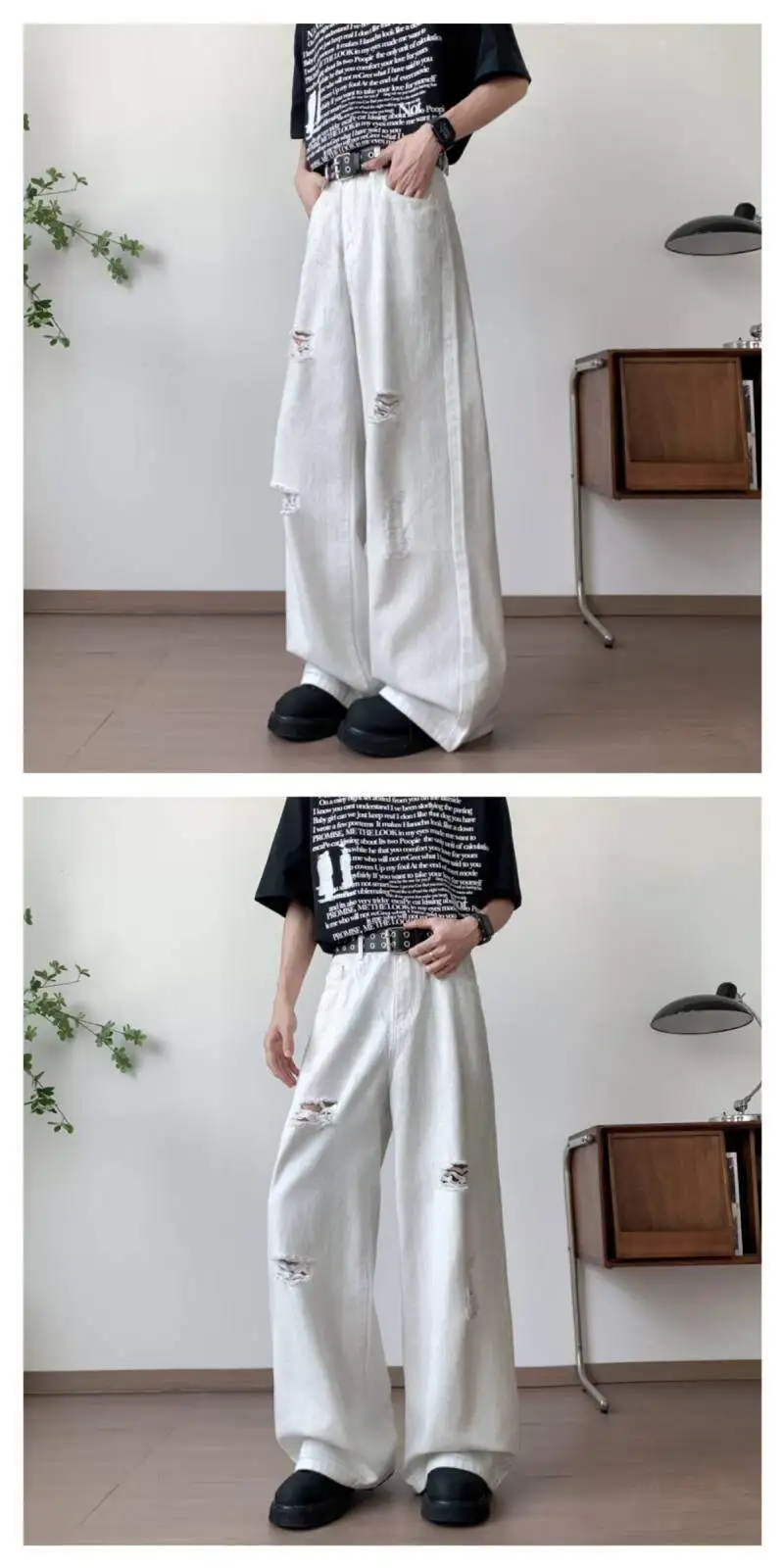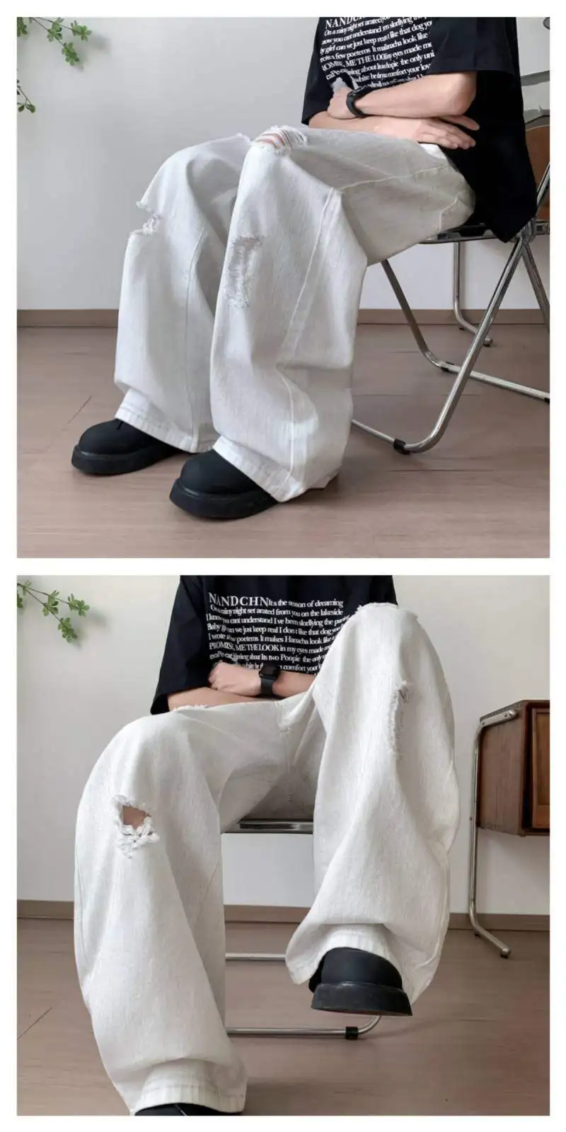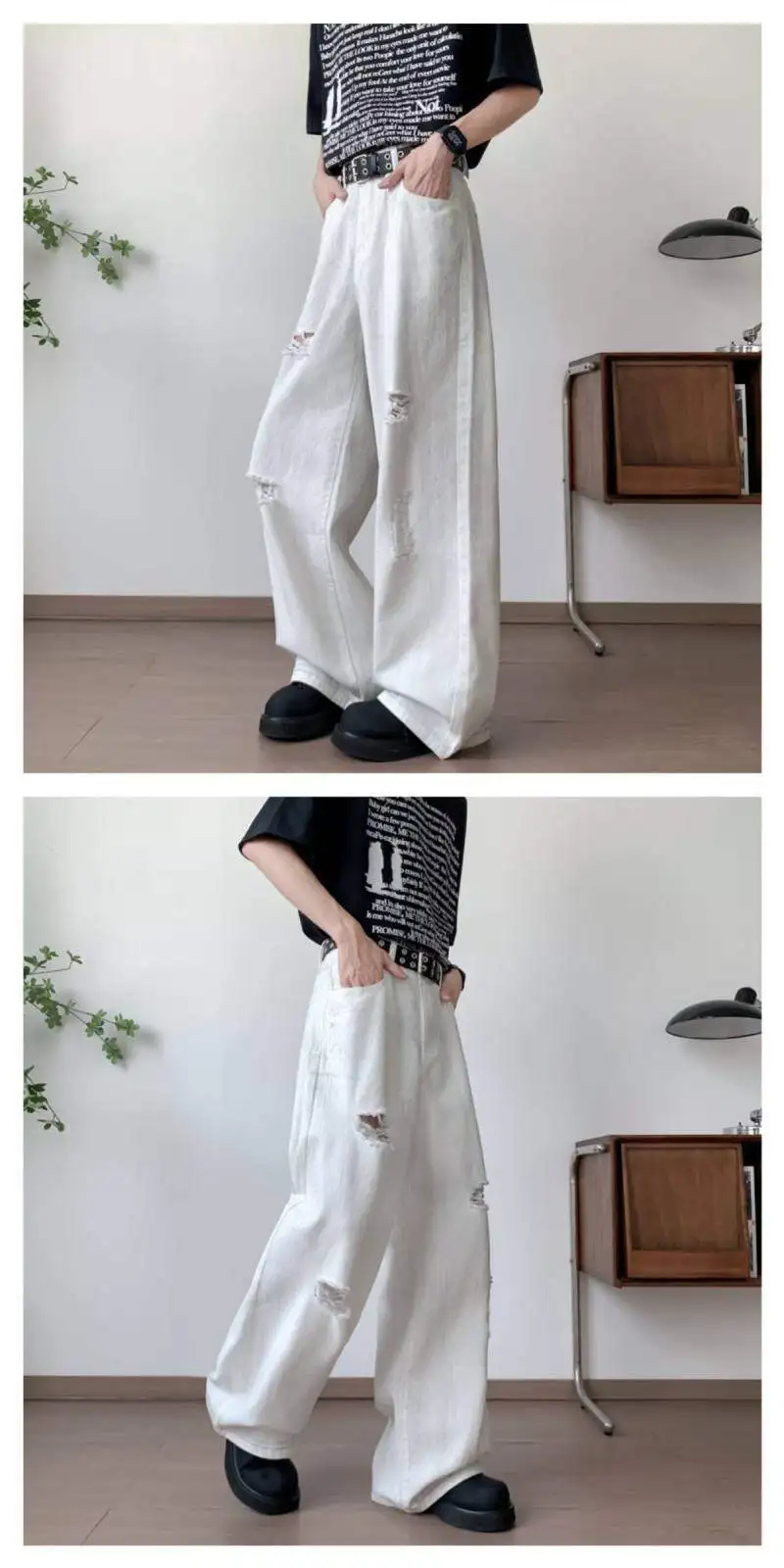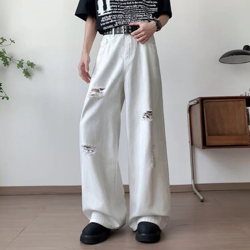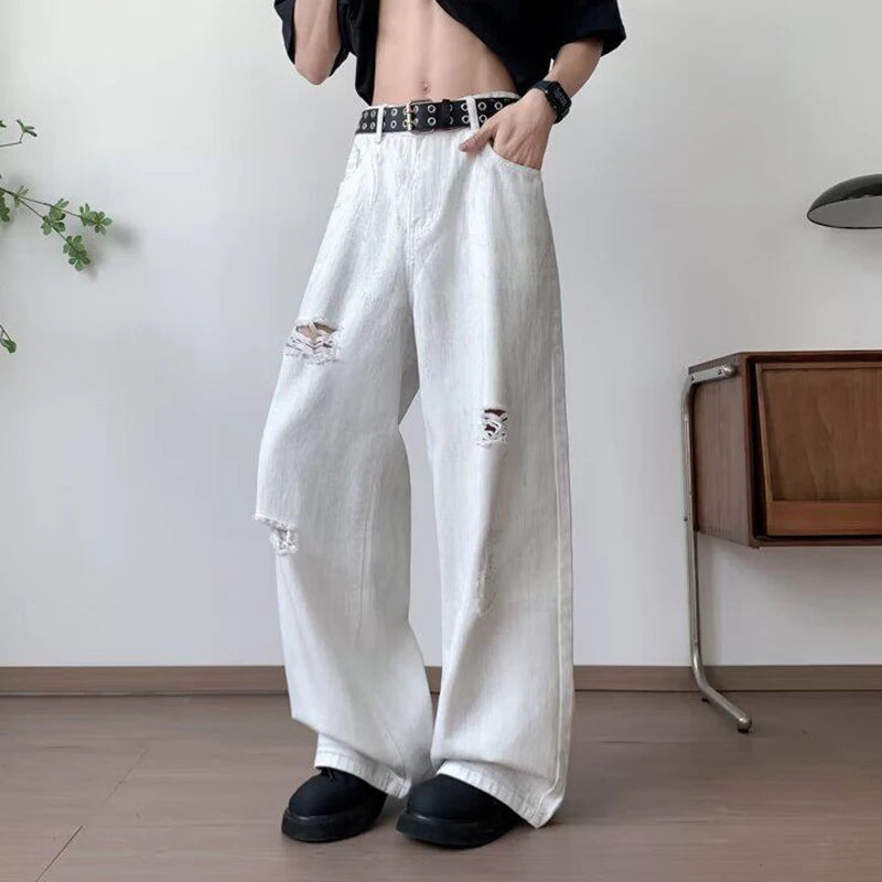 AIDASE - Fashion Wide-Leg Men Jeans Popular Ripped Pants Summer Personality Versatile Clothing 2025 New Trend Menswear