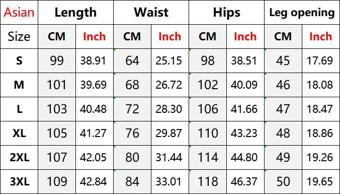PANTS SIZE (Unit: CM)