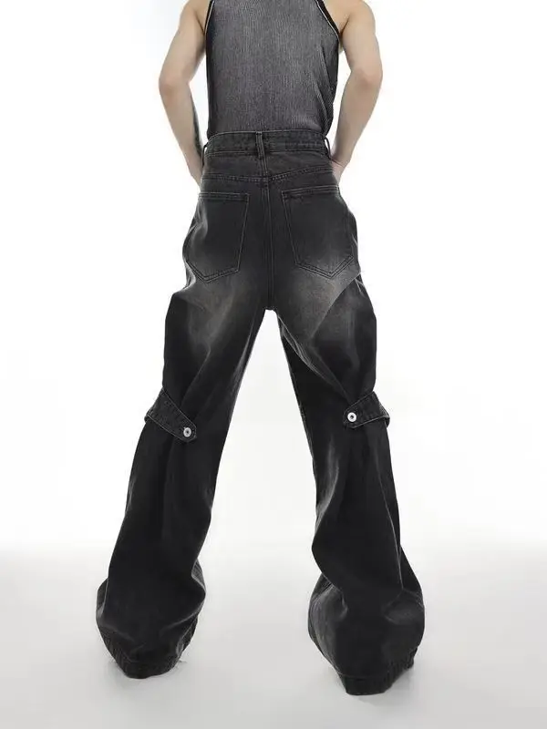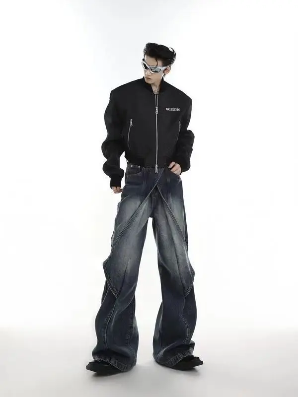 Aidase Hip Hop American Vintage Jeans Men Heavy Industry Used Wash Denim Pant Deconstruct Cut Design Variable Flared Trousers Unisex