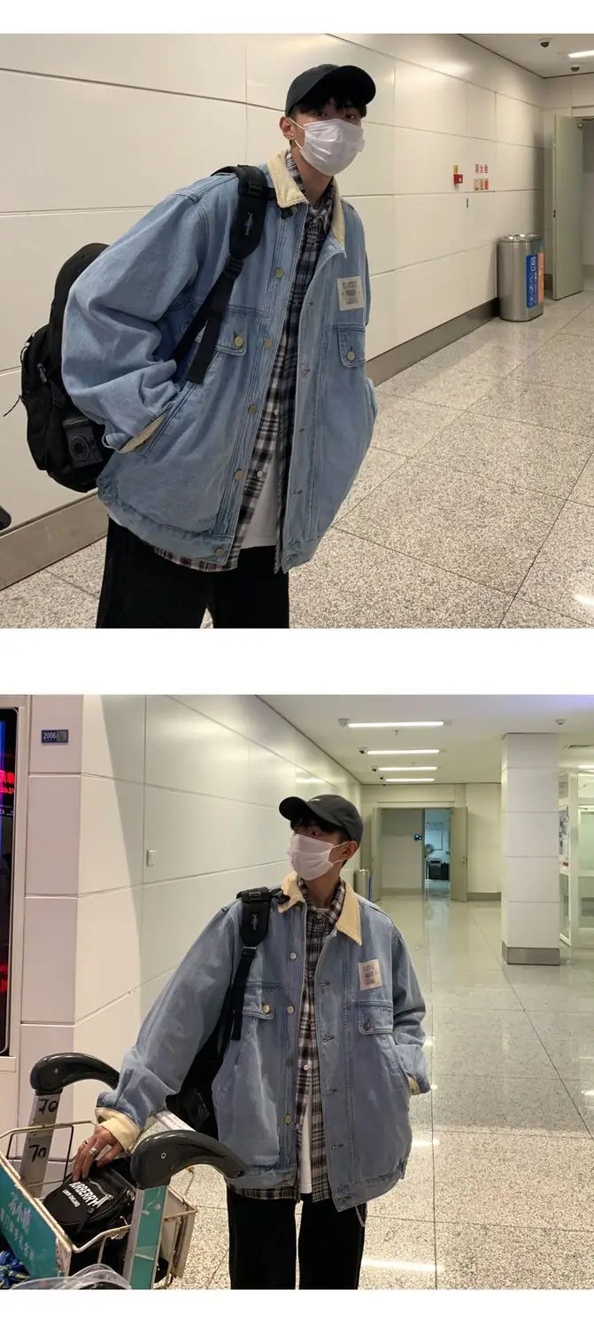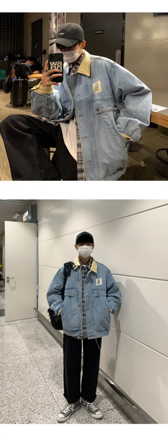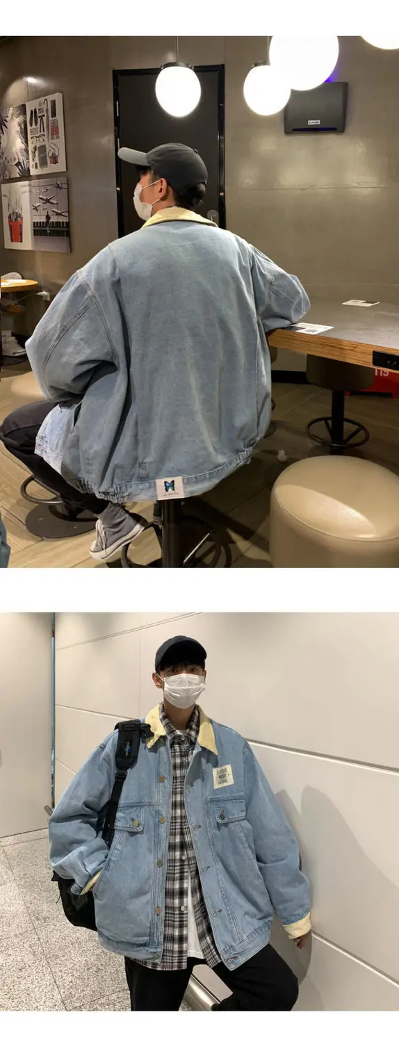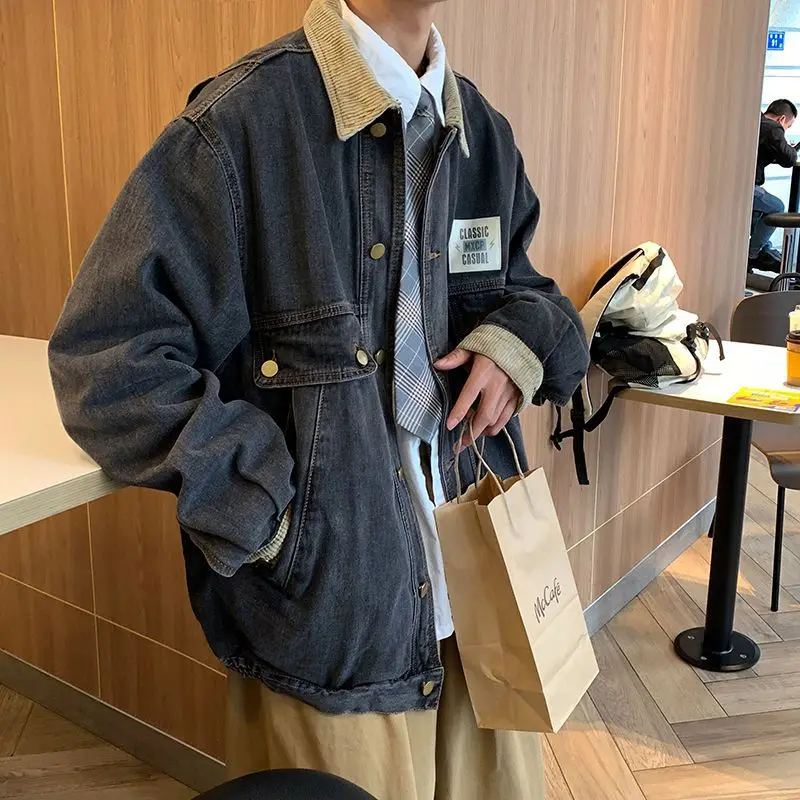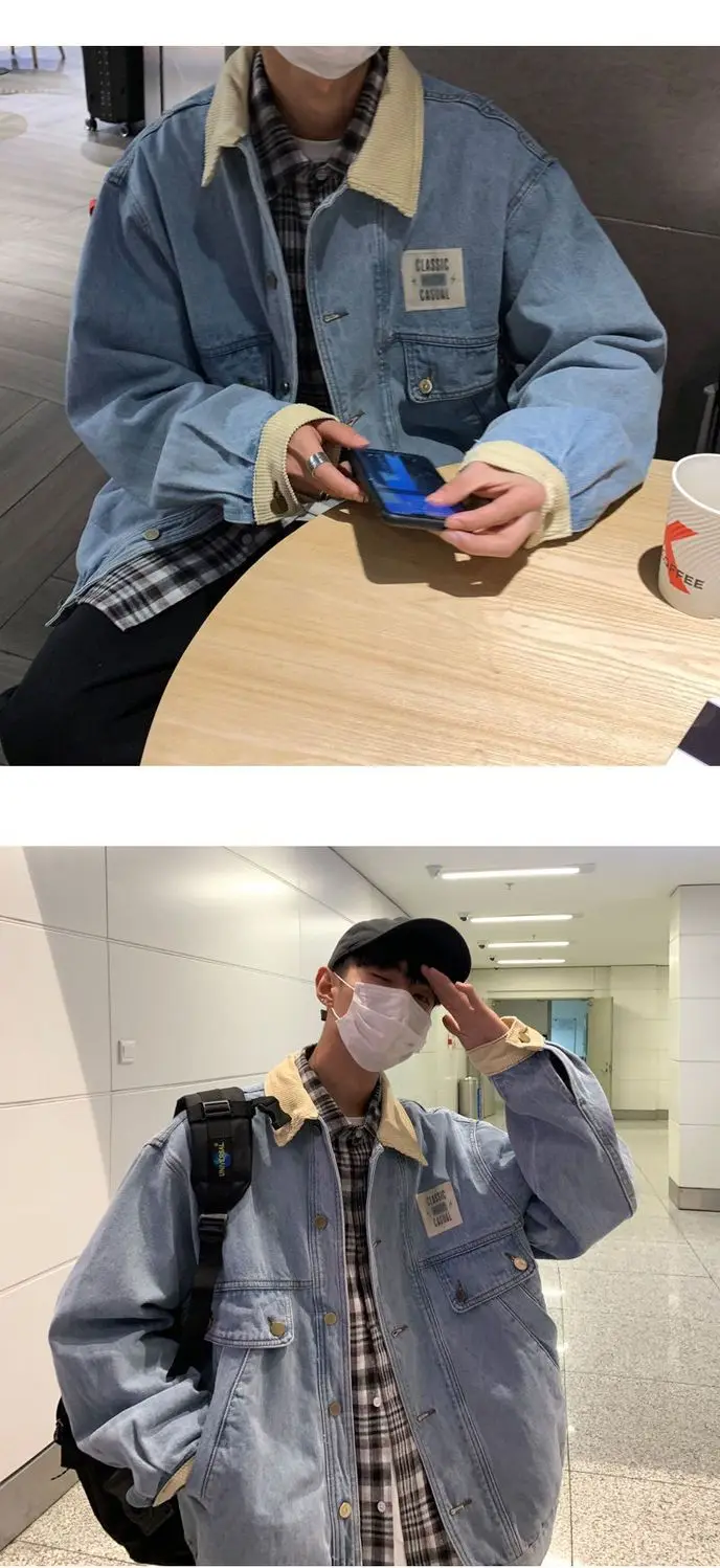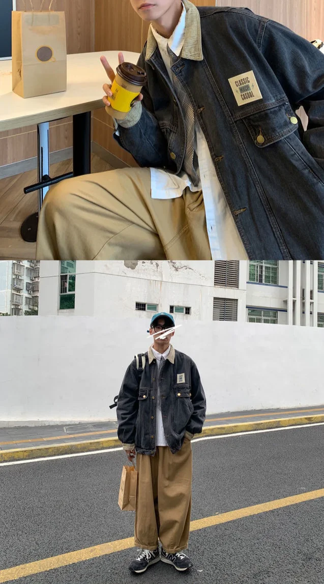 Aidase Japan Retro Lapel Denim Jacket Cityboys Punk Loose Jacket Autumn Hong Kong Style Hip Hop Handsome Stitching Jeans Coat