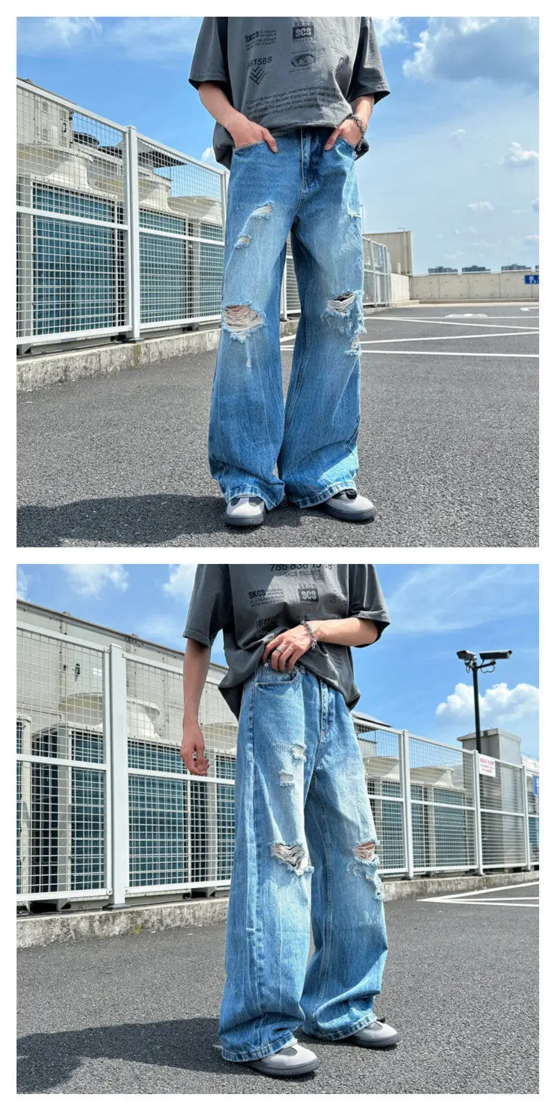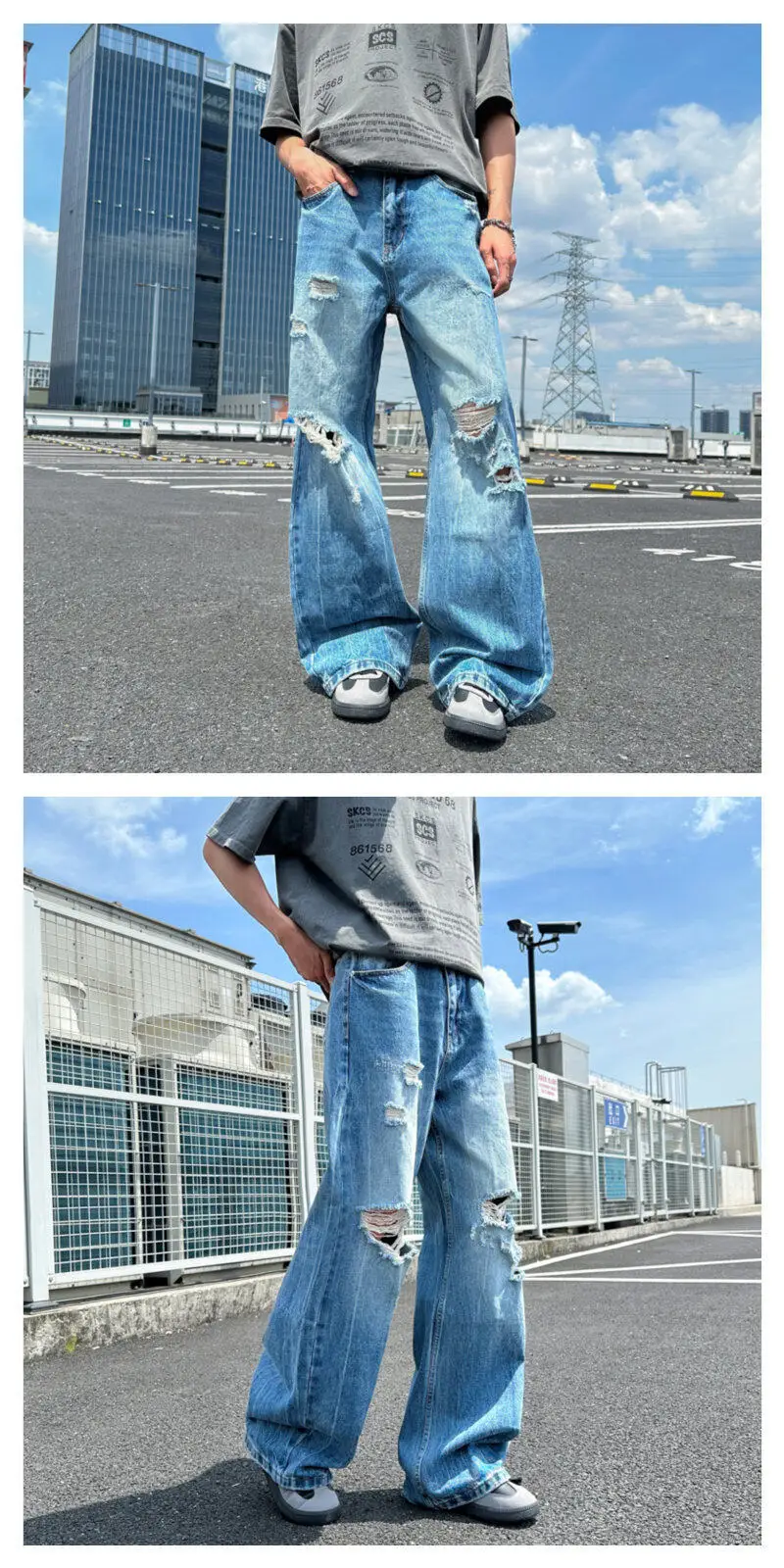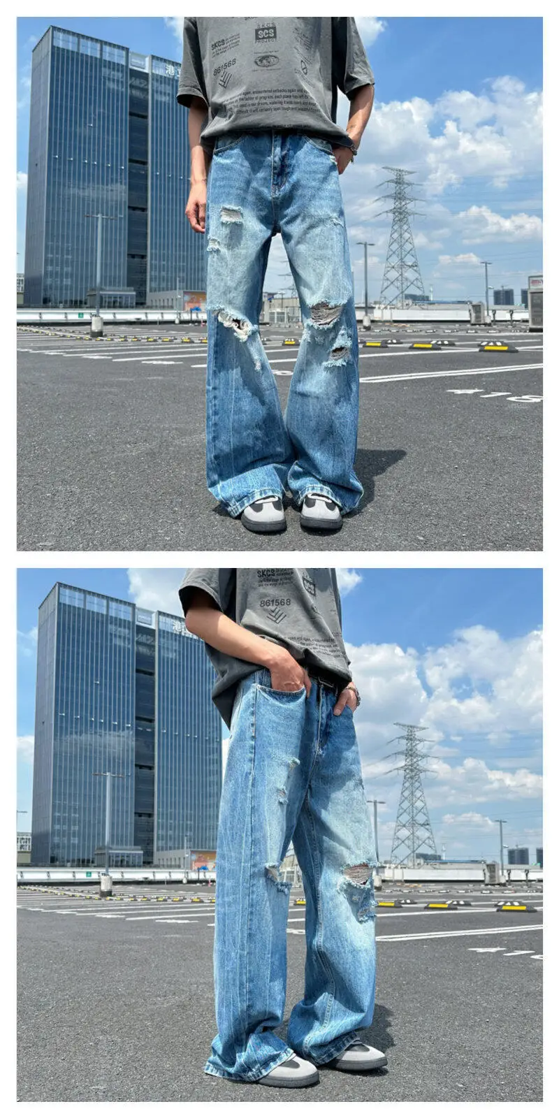AIDASE - Male Ripped Jeans American Style Loose Straight Wide-Leg Floor-Length Denim Pants 2025 New Fashion Casual Clothing 21E6754