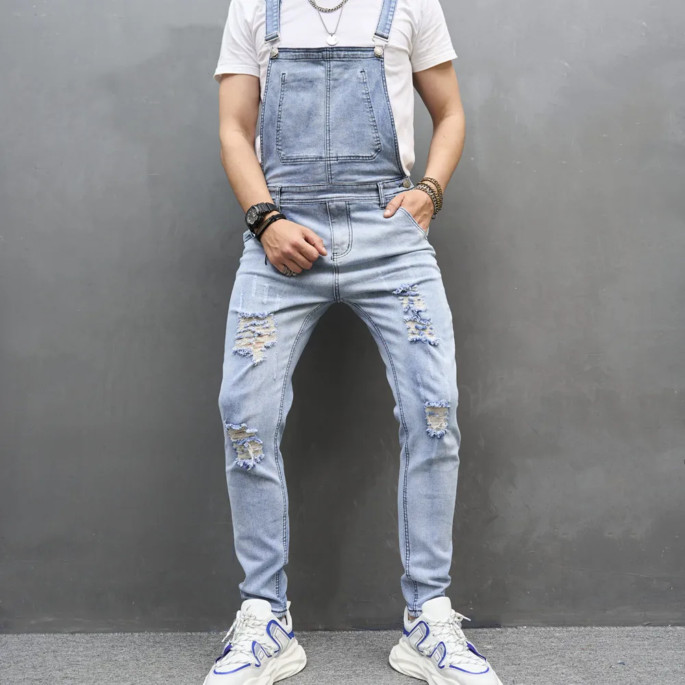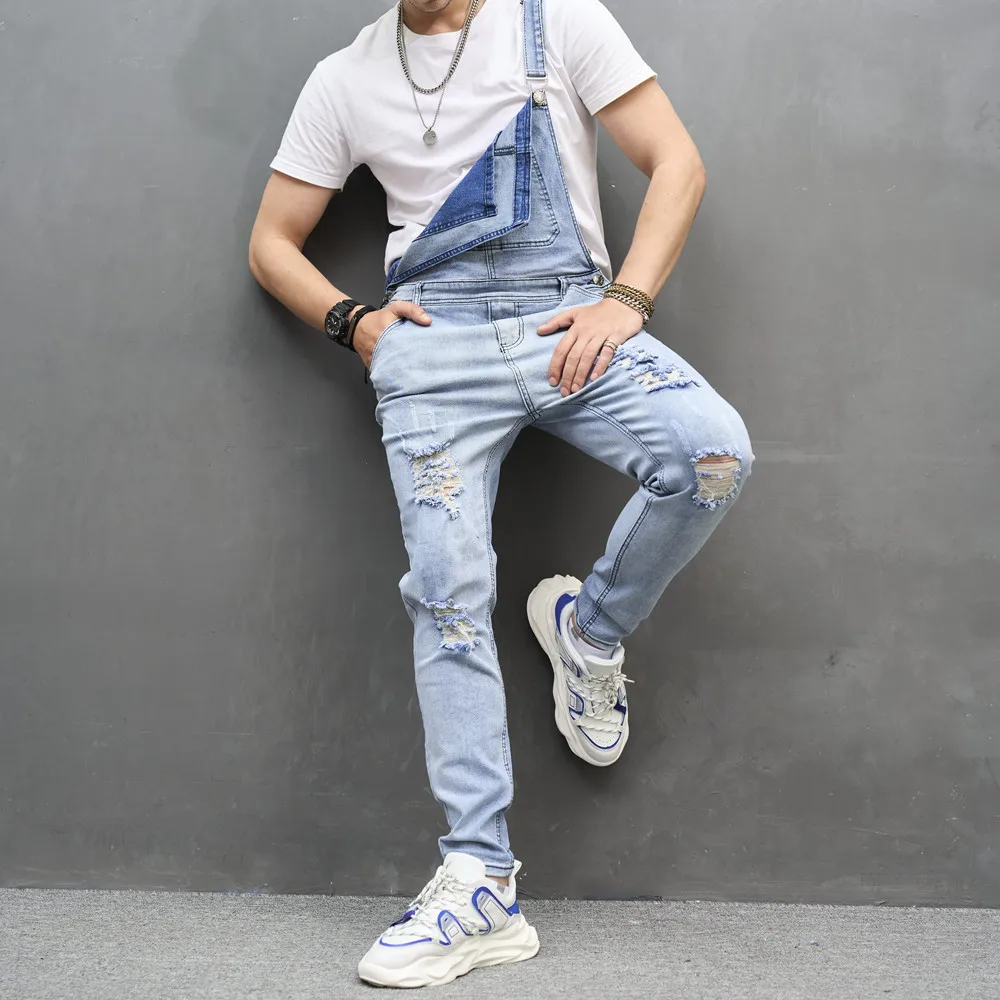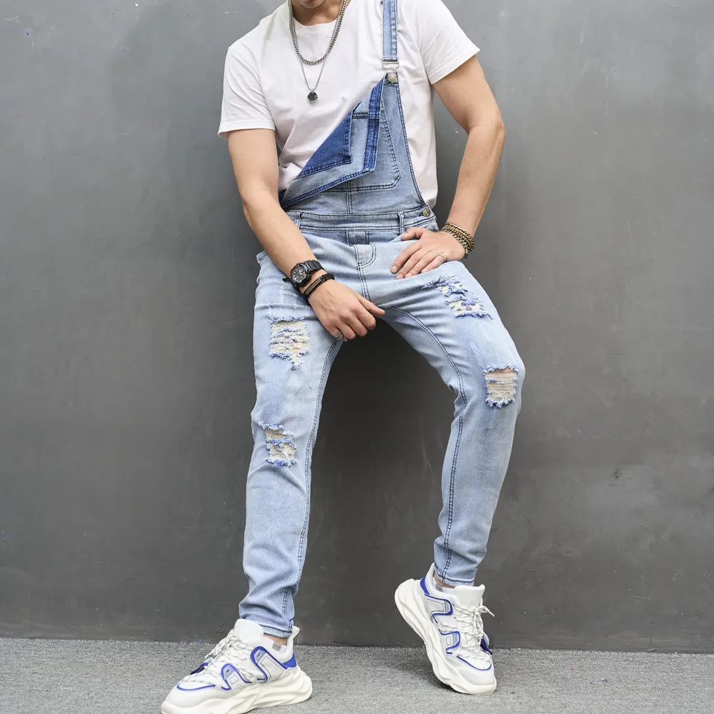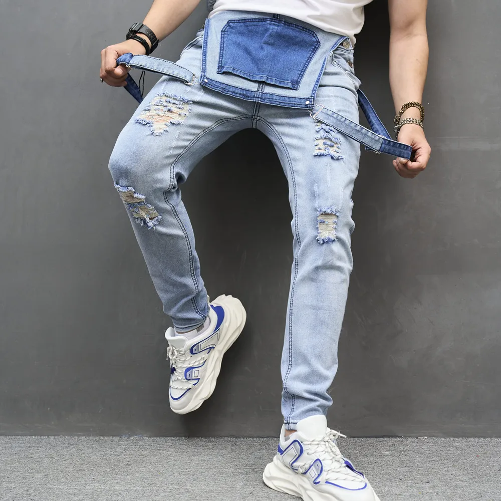 AIDASE  -  Men Ripped Slim Biker Jeans Bib Overalls Jumpsuits jeans Stylish Man Streetwear Stretch Dungarees Male Strap Jeans