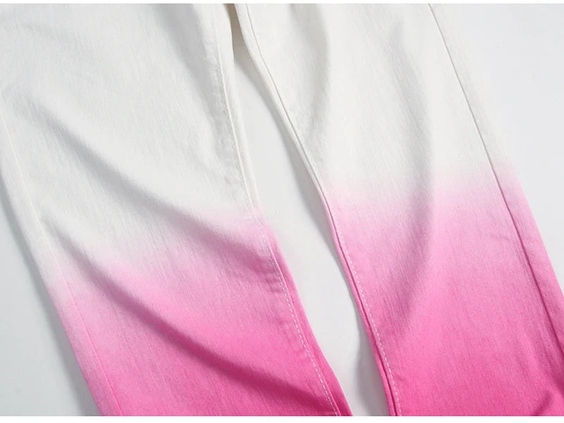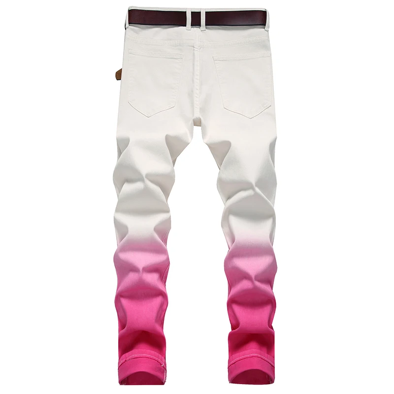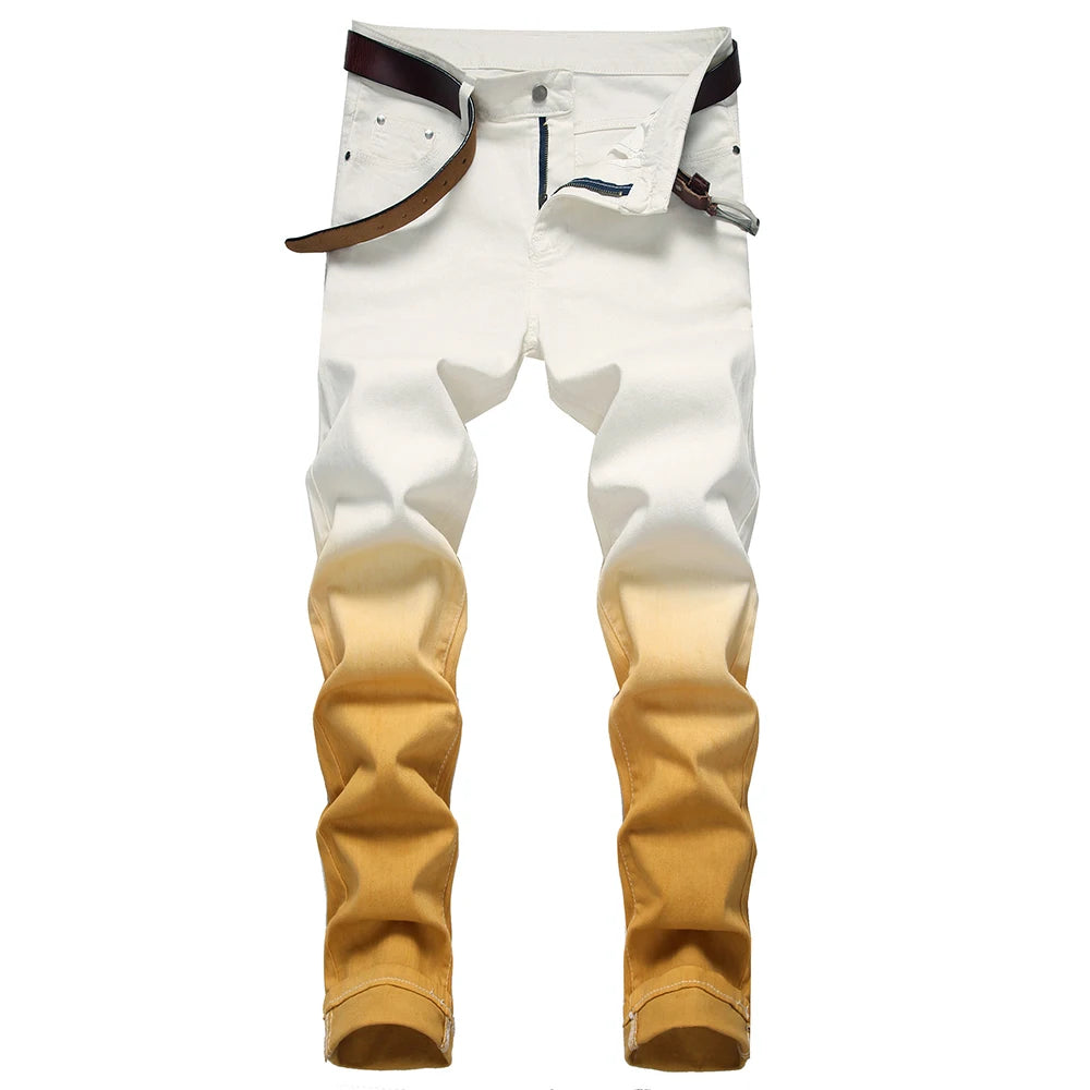 AIDASE - Men's Gradient Color Stretch Jeans Y2K Fashion Fancy Color Slim Pencil Pants Streetwear Trousers