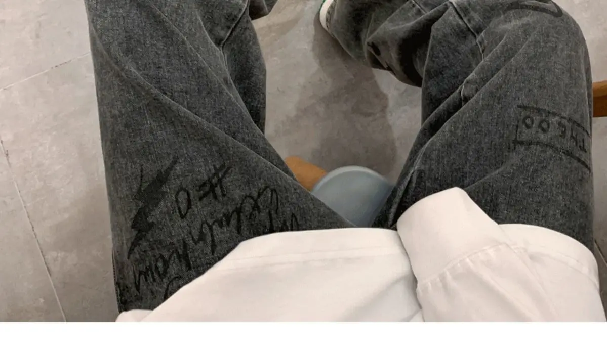 AIDASE  -  Men's Streetwear Pants Hip Hop Jeans Mens Straight Loose Male Wide Leg Pants Fashion Spring Summer Thin Graffiti Printing Pants