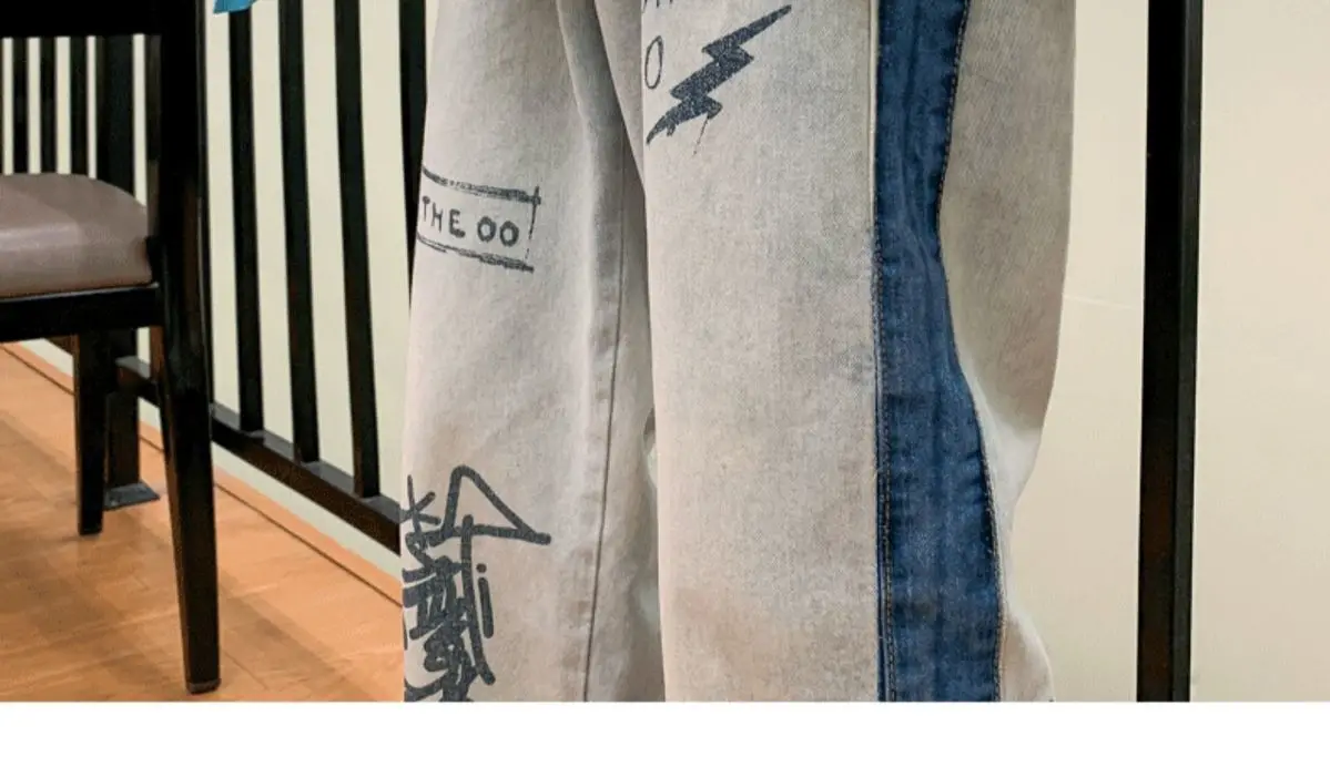 AIDASE - Men's Streetwear Pants Hip Hop Jeans Mens Straight Loose Male Wide Leg Pants Fashion Spring Summer Thin Graffiti Printing Pants