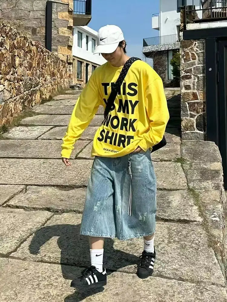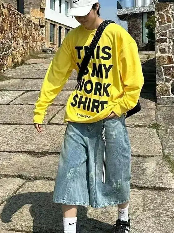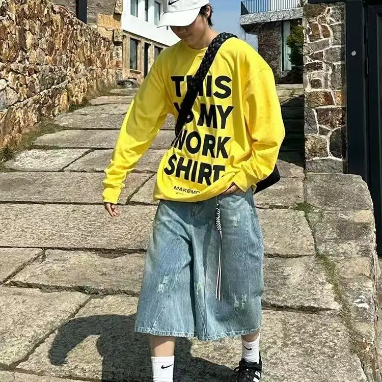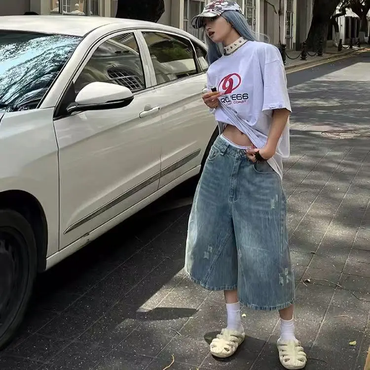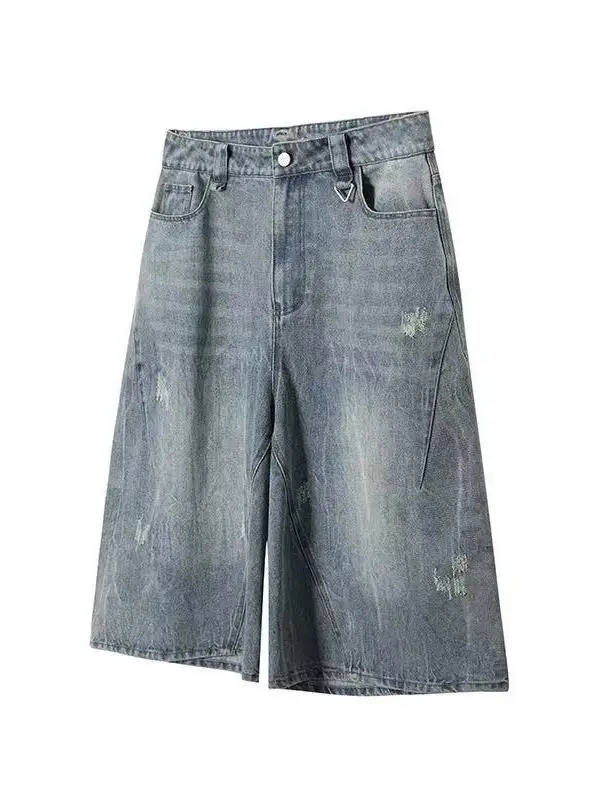 AIDASE - Retro American Hole Waed Jeans orts Loose Straight Leg Wide Leg Six Seven Loose Fit Men Women Summer orts Trendy