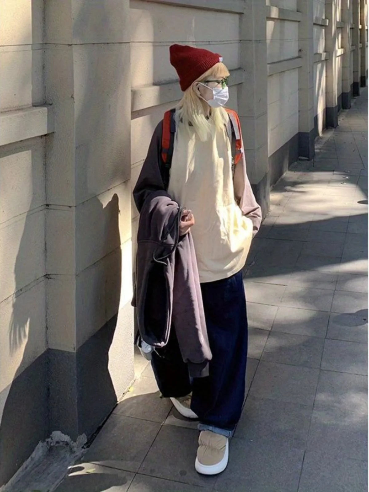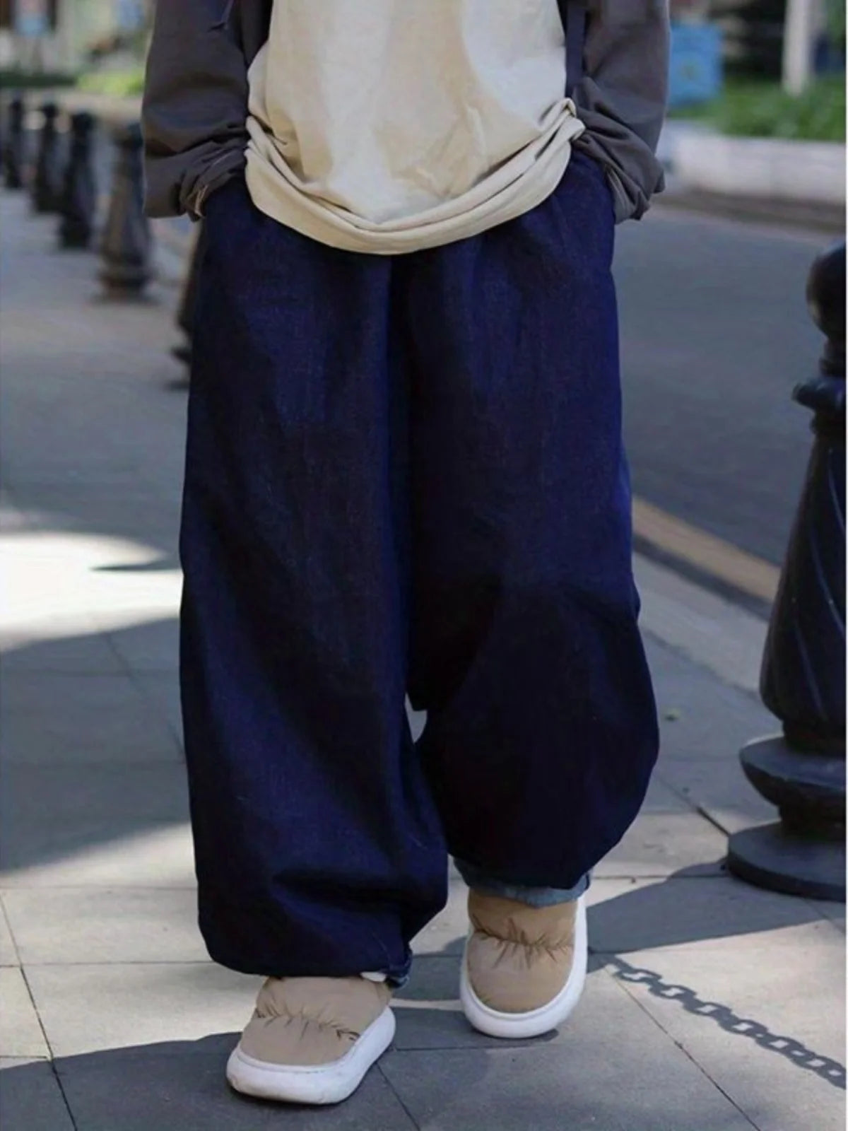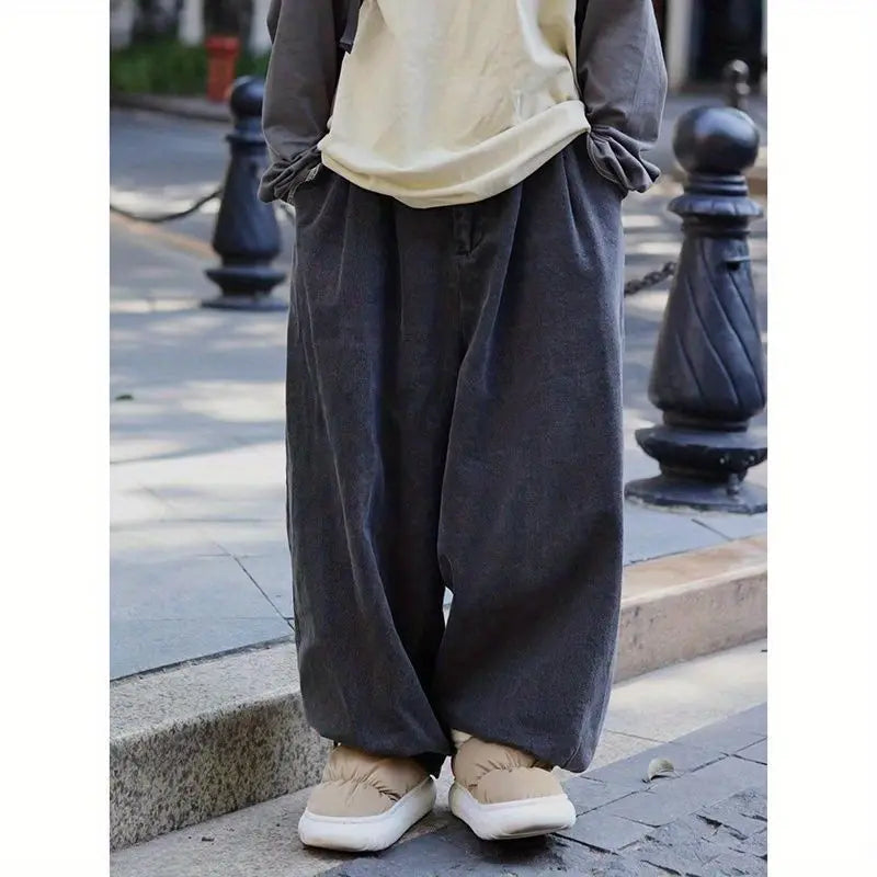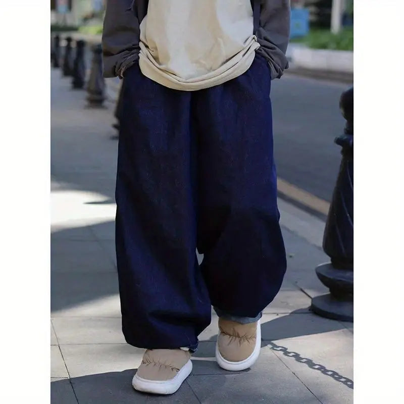 AIDASE - Retro Japanese Sle BF Wide Leg Pants Weathered Denim Loose Straight Cut Jeans ex Dad Pants Youth Faion All Seasons