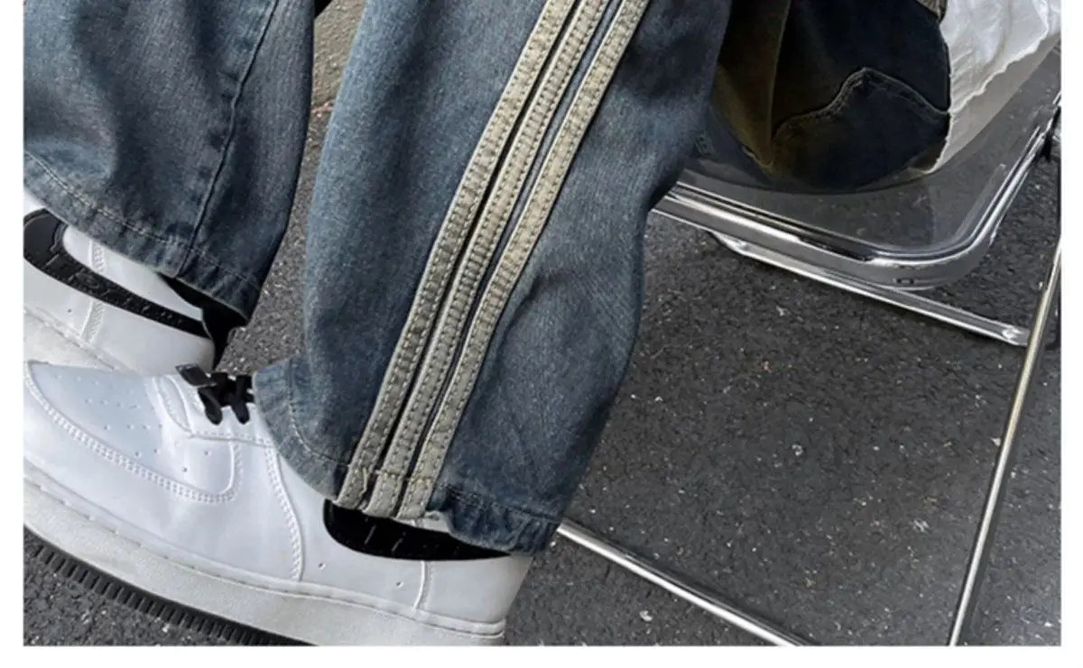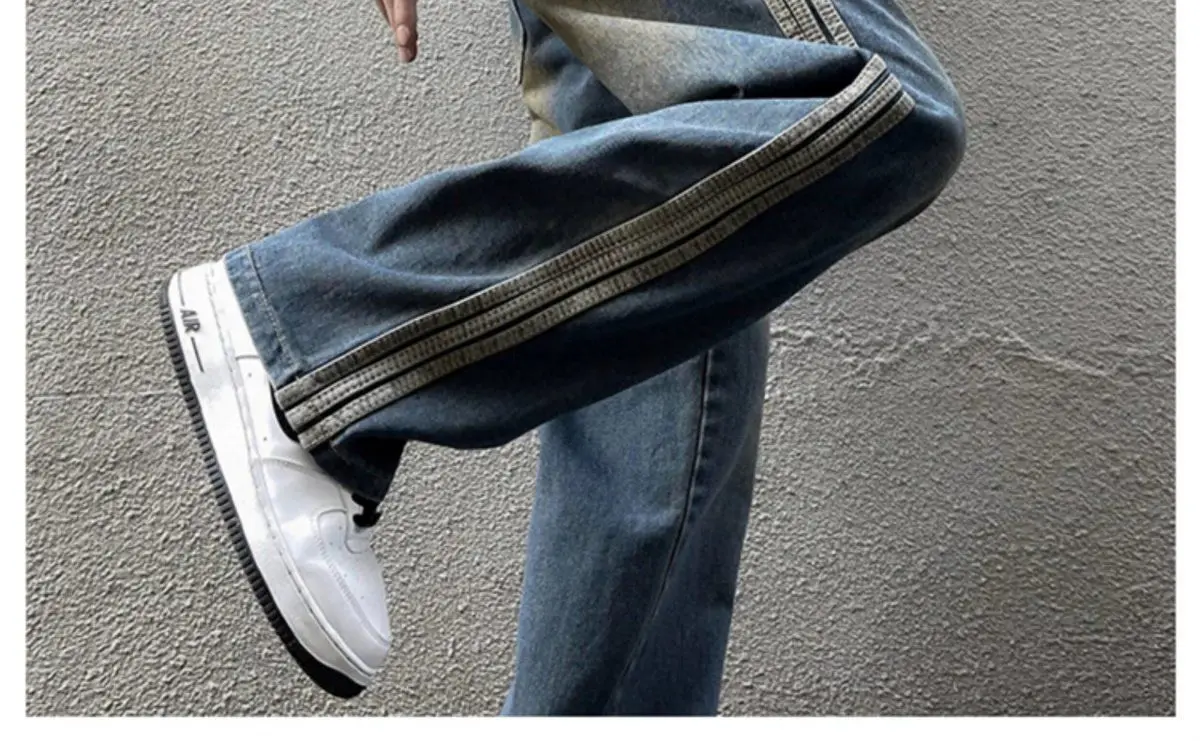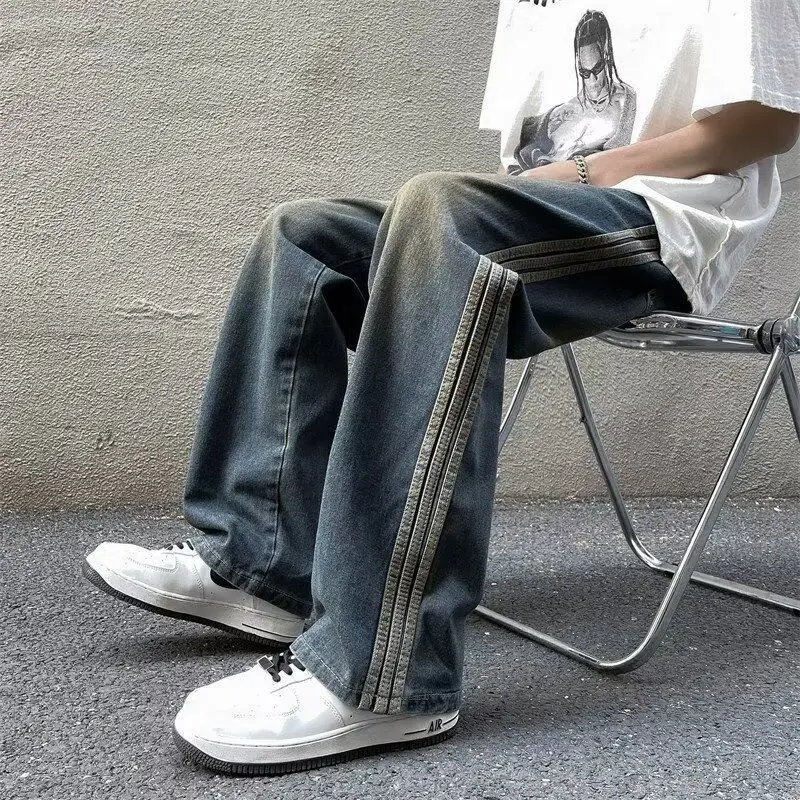 AIDASE - Retro Jeans Men's Versatile Loose Trendy Brand Handsome Striped Straight Pants
