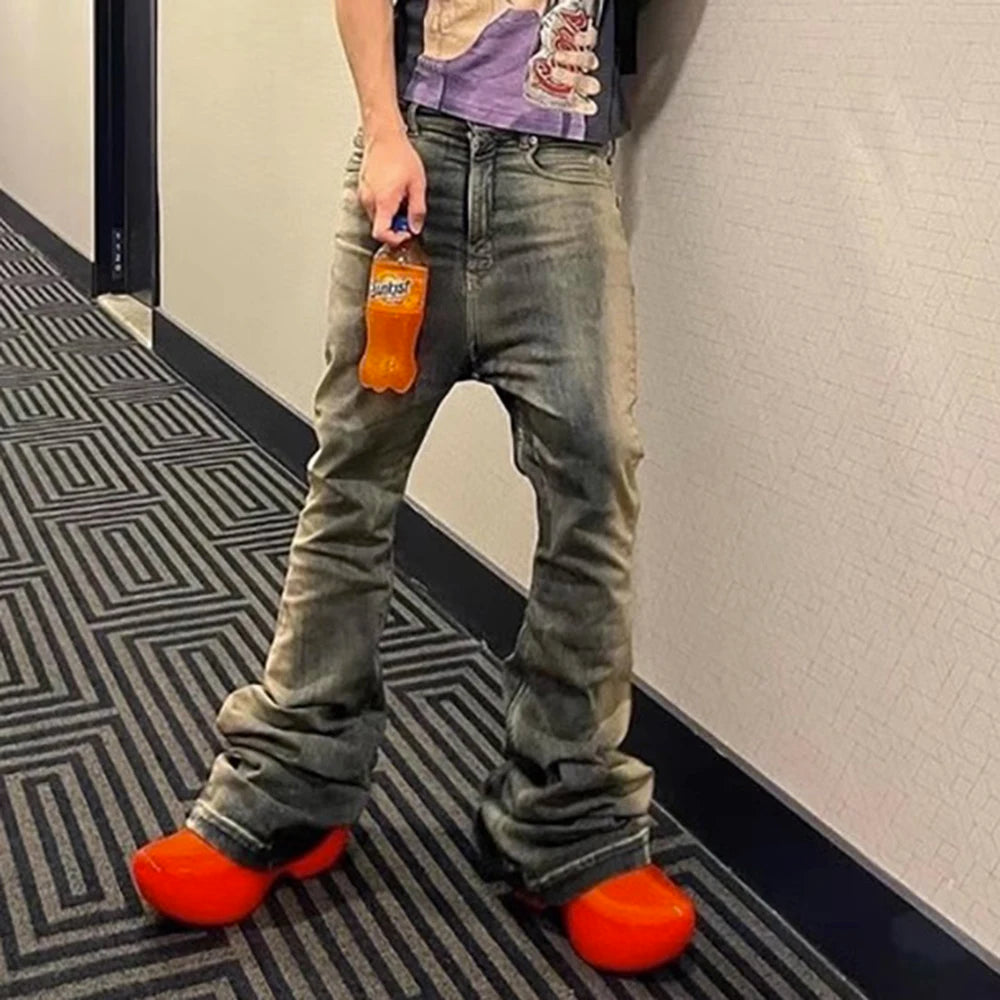 Aidase RO Style Gradient Washed Sashes Flare Jeans Unisex Streetwear Baggy Y2K Bell-bottoms Harajuku Loose Casual Denim Trousers