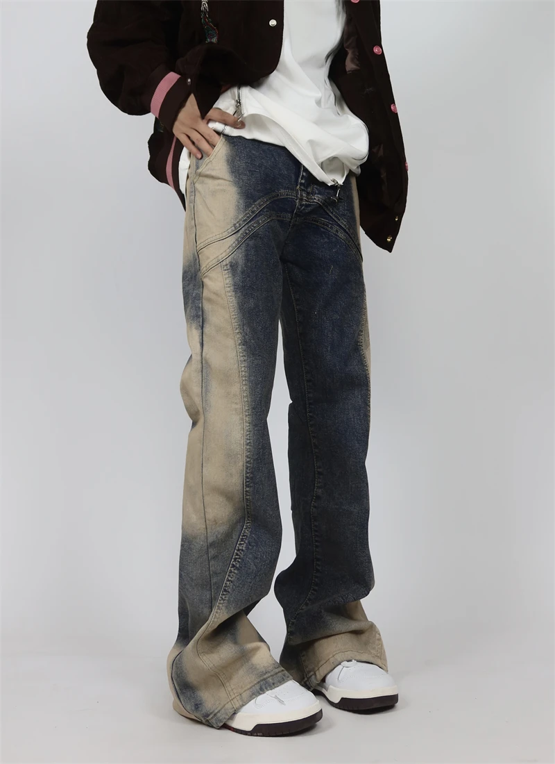 Aidase S-3XL Jeans for Men Contrast Color Hip Hop American Style Popular Teenagers All-match Daily Vitality Simple Baggy Mops Trousers