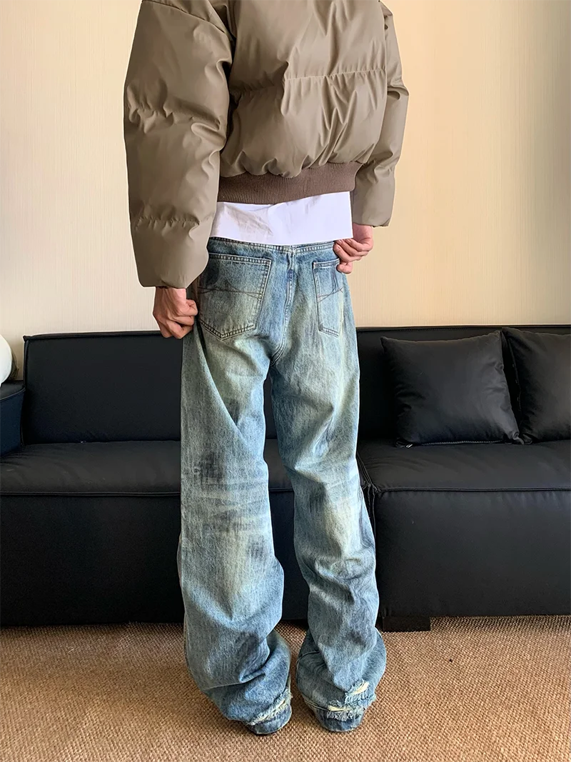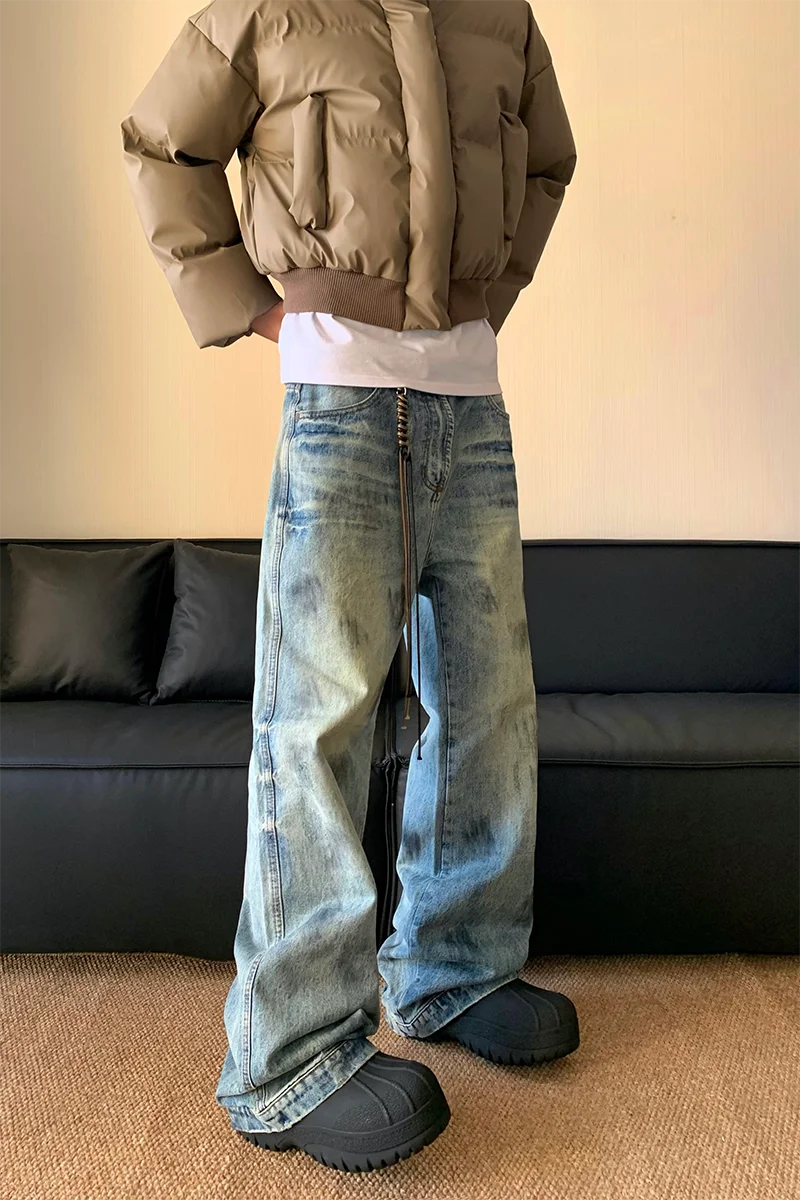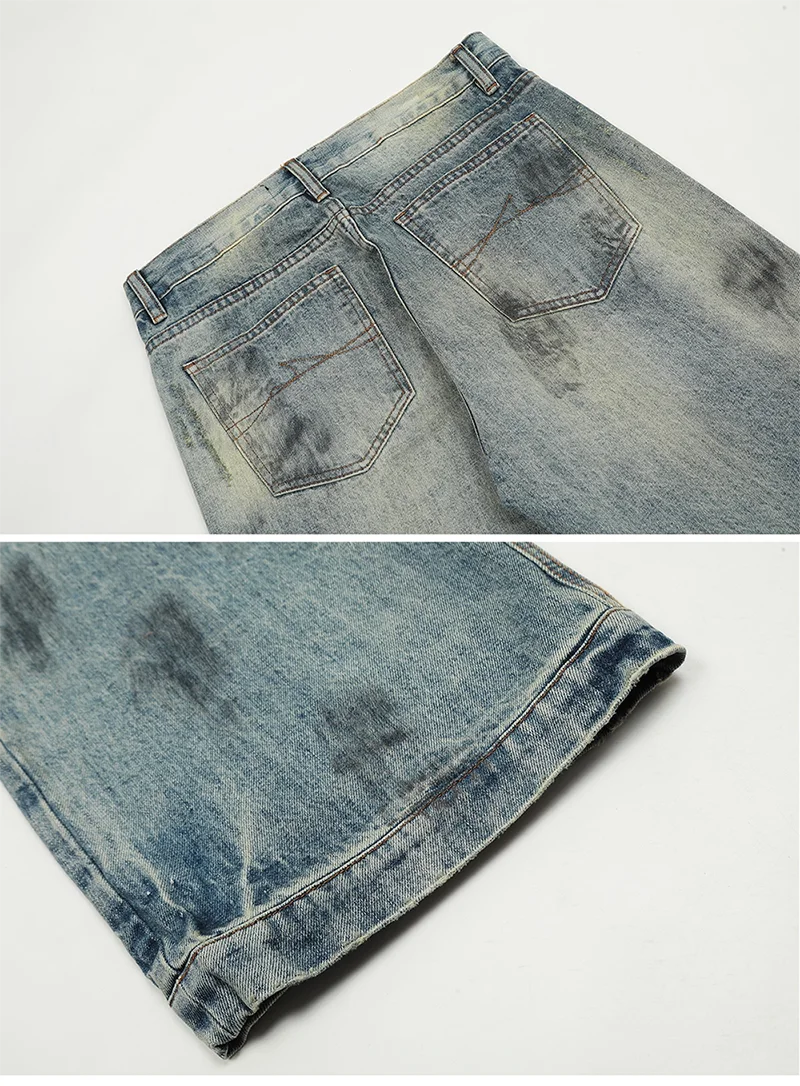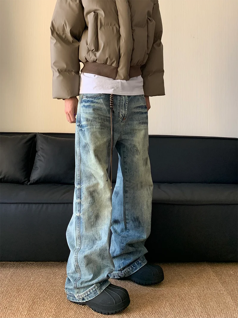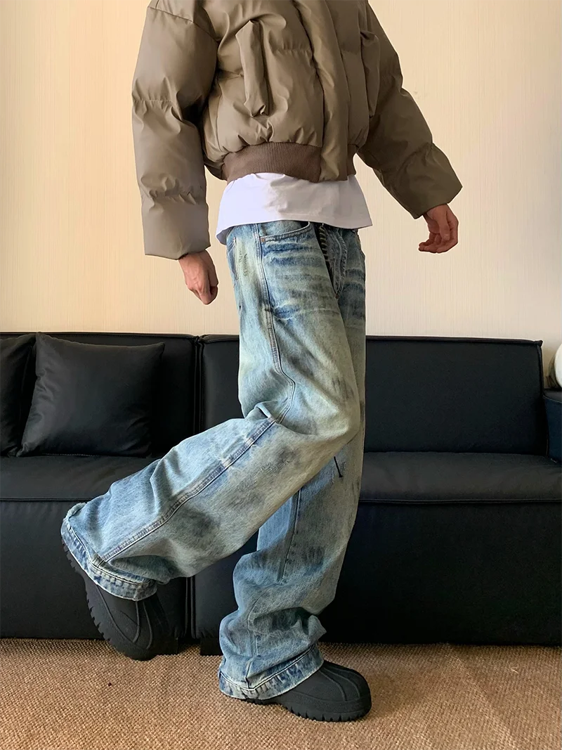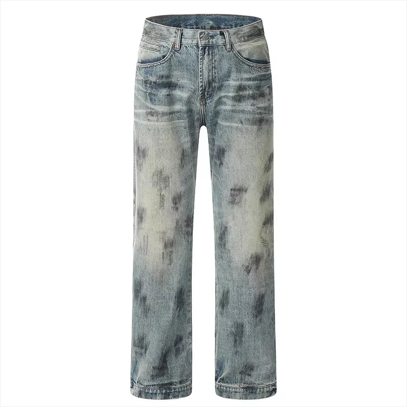 AIDASE - Splash Ink Jeans Men 2025 Baggy Wide Leg Jeans American High Street Washed Stretch Soft Straight Denim Cargo Pants Trousers Male