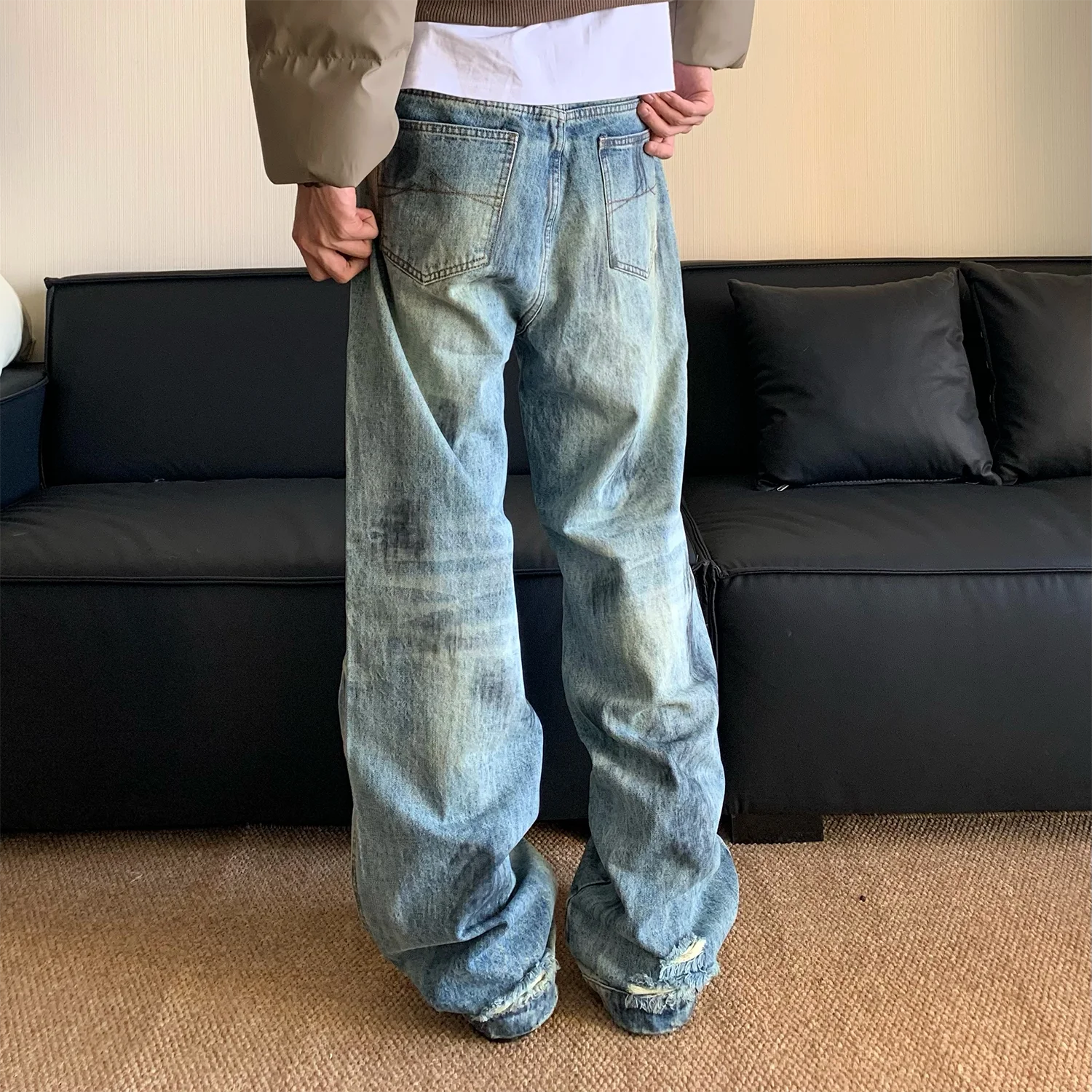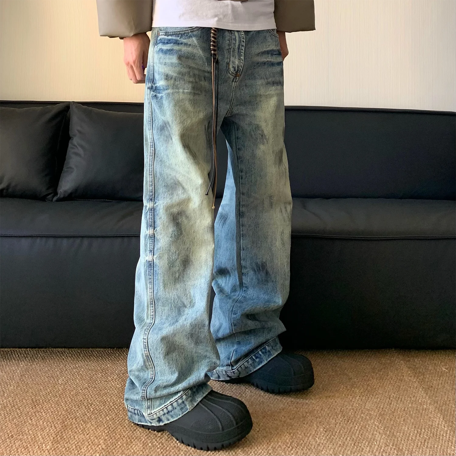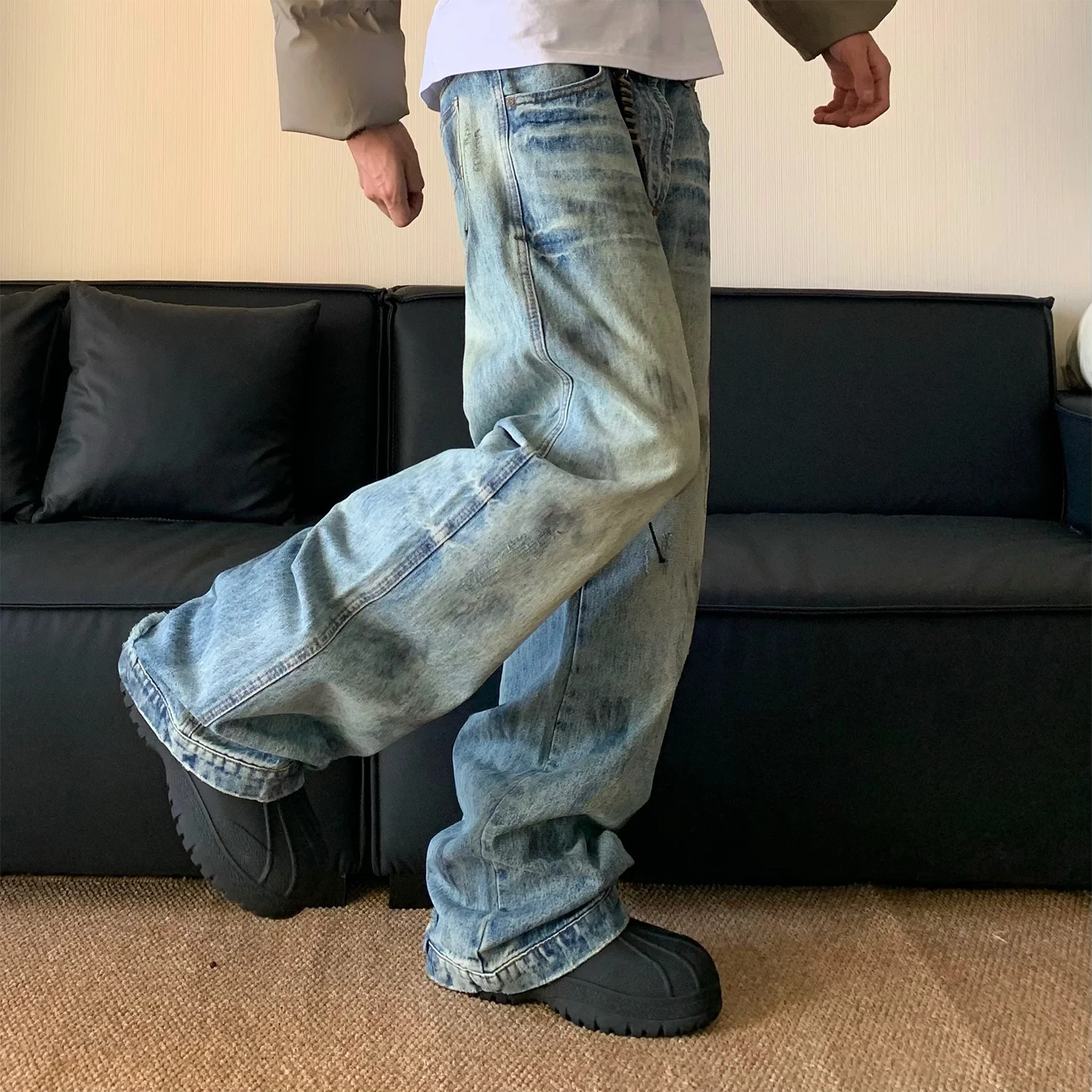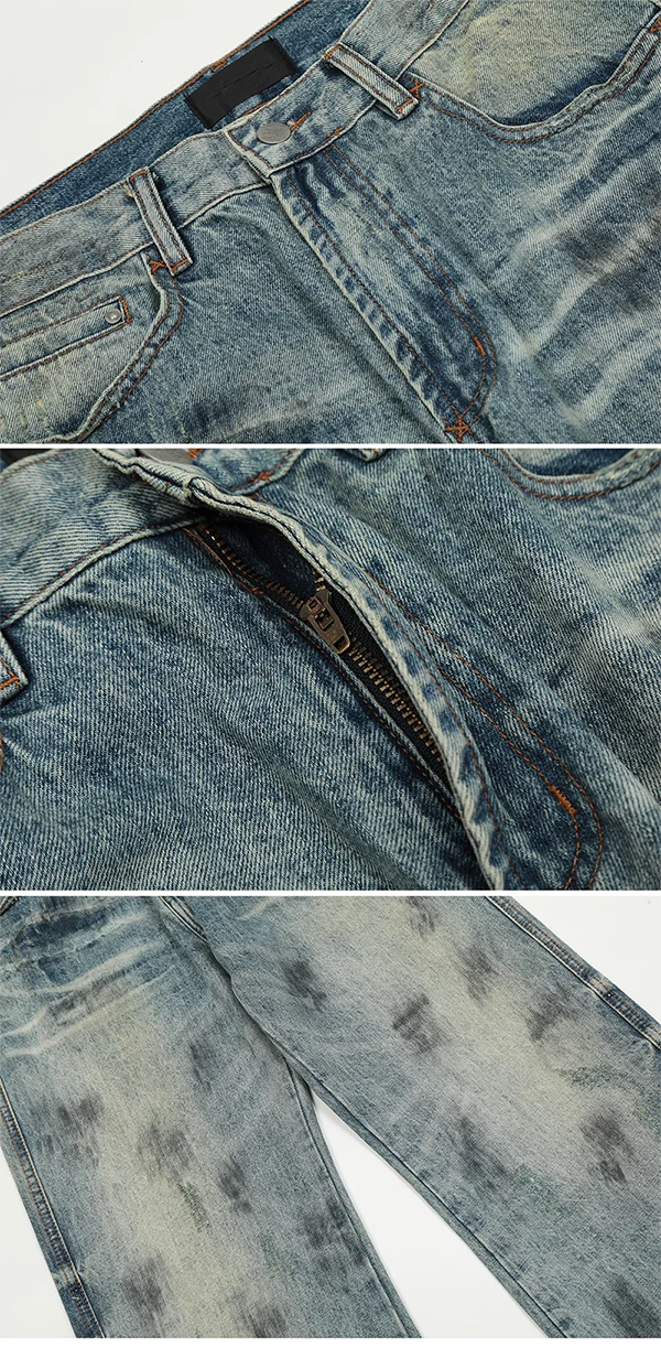 AIDASE - Splash Ink Jeans Men 2025 Baggy Wide Leg Jeans American High Street Washed Stretch Soft Straight Denim Cargo Pants Trousers Male