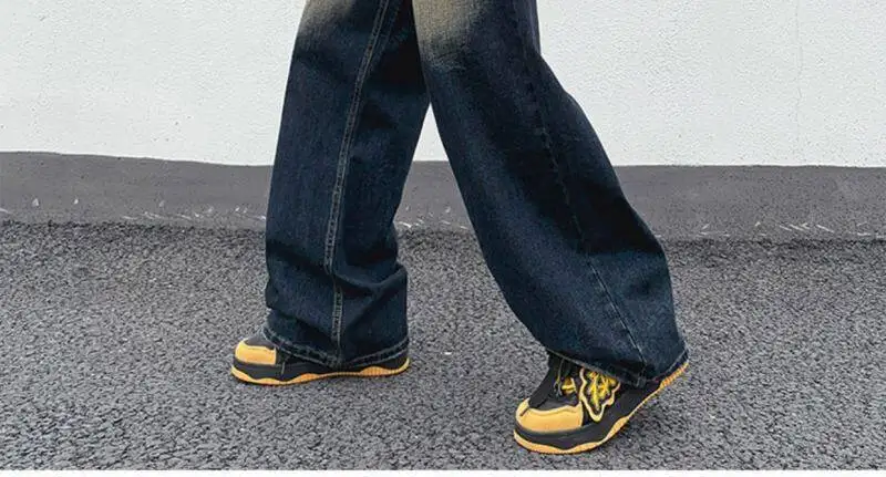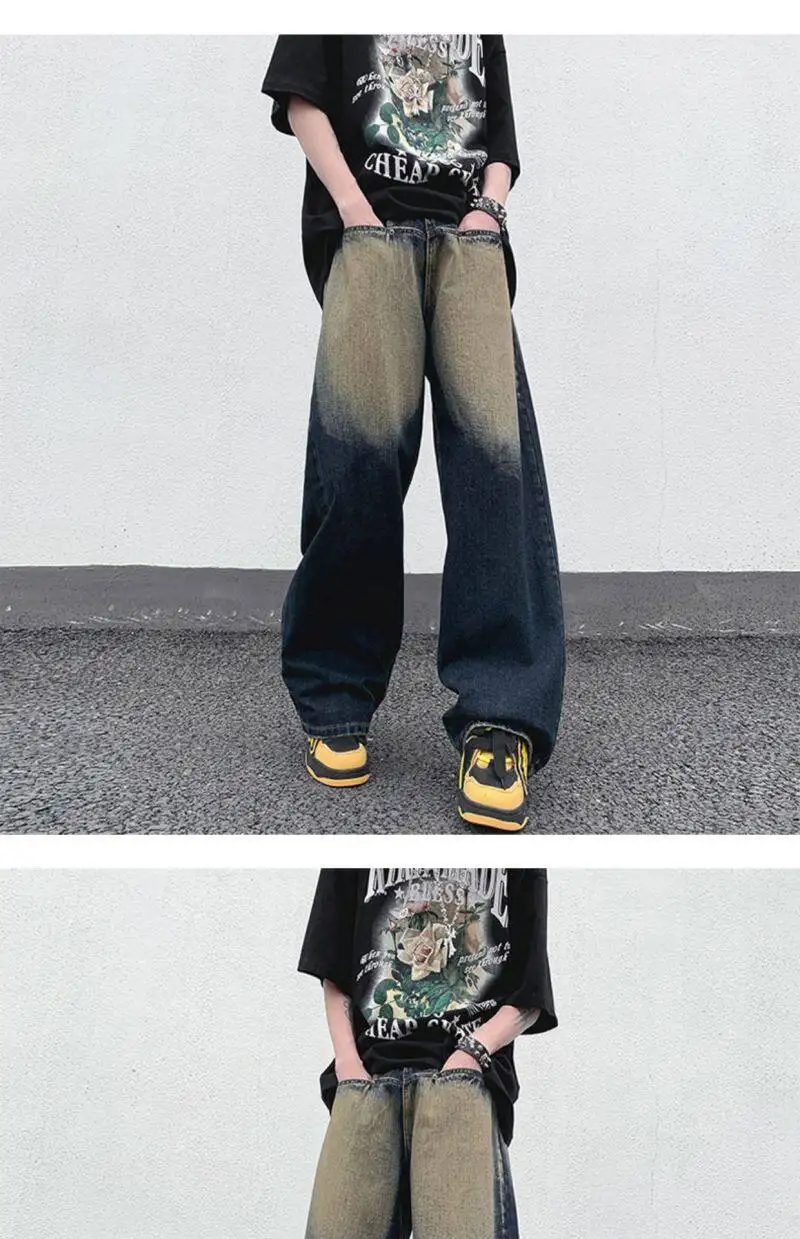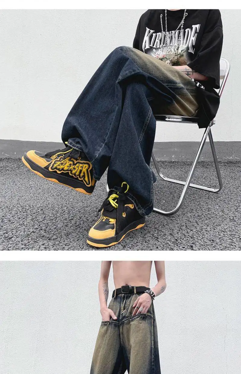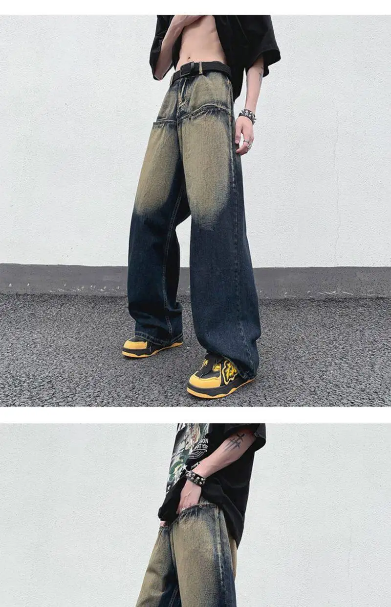 AIDASE - Straight Leg Trendy Men Jeans American Style Loose Cool Washed Vintage Personality Spliced Design Denim Trousers 21E6535