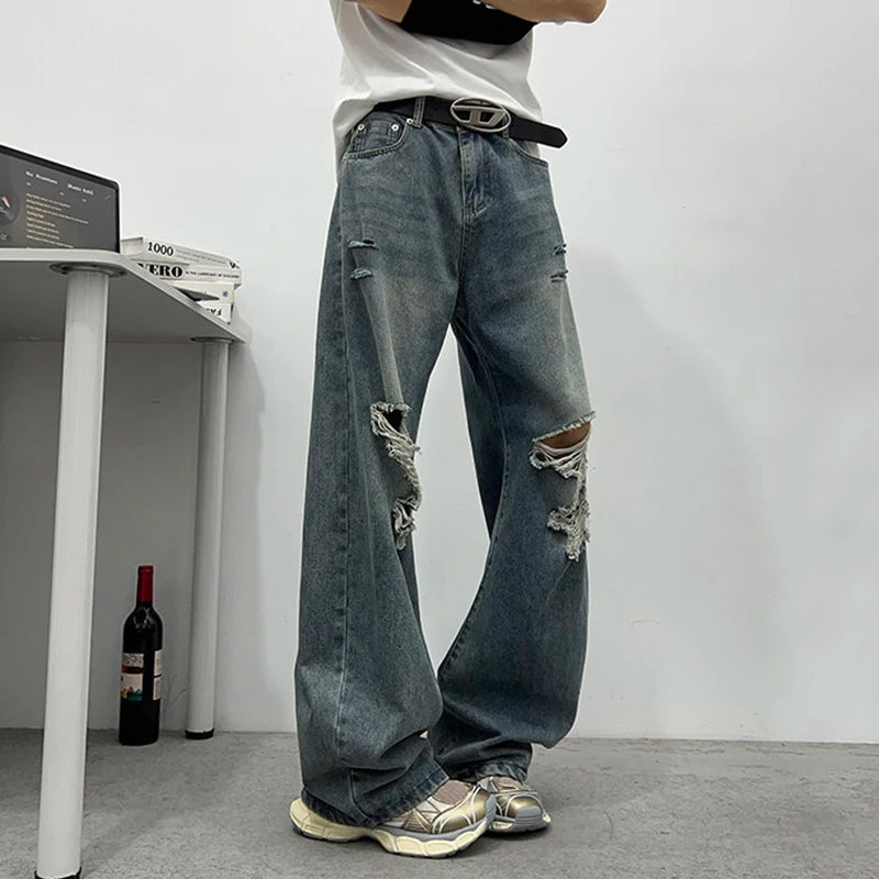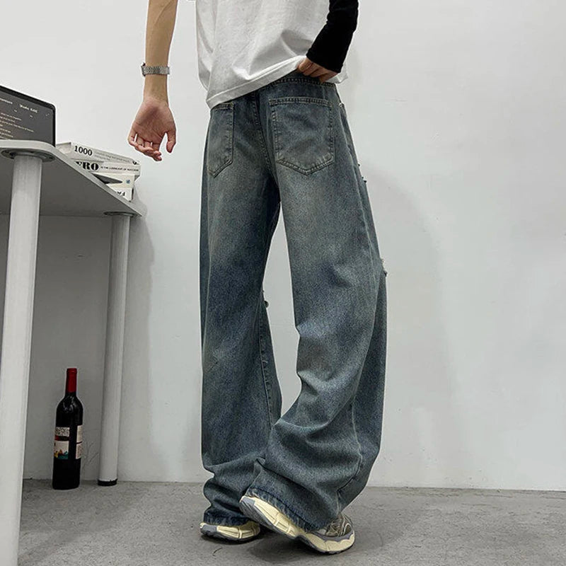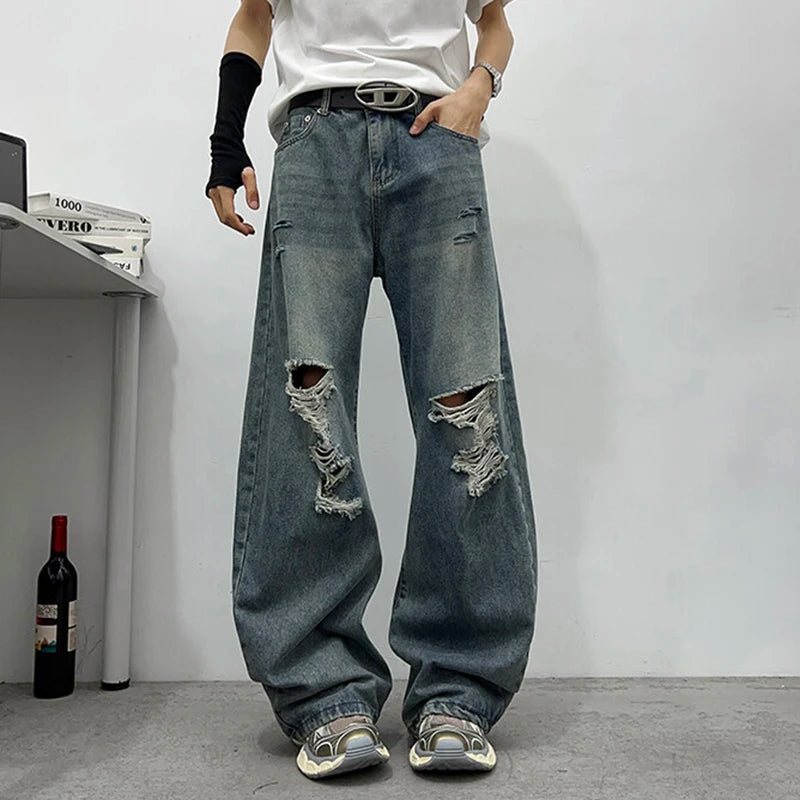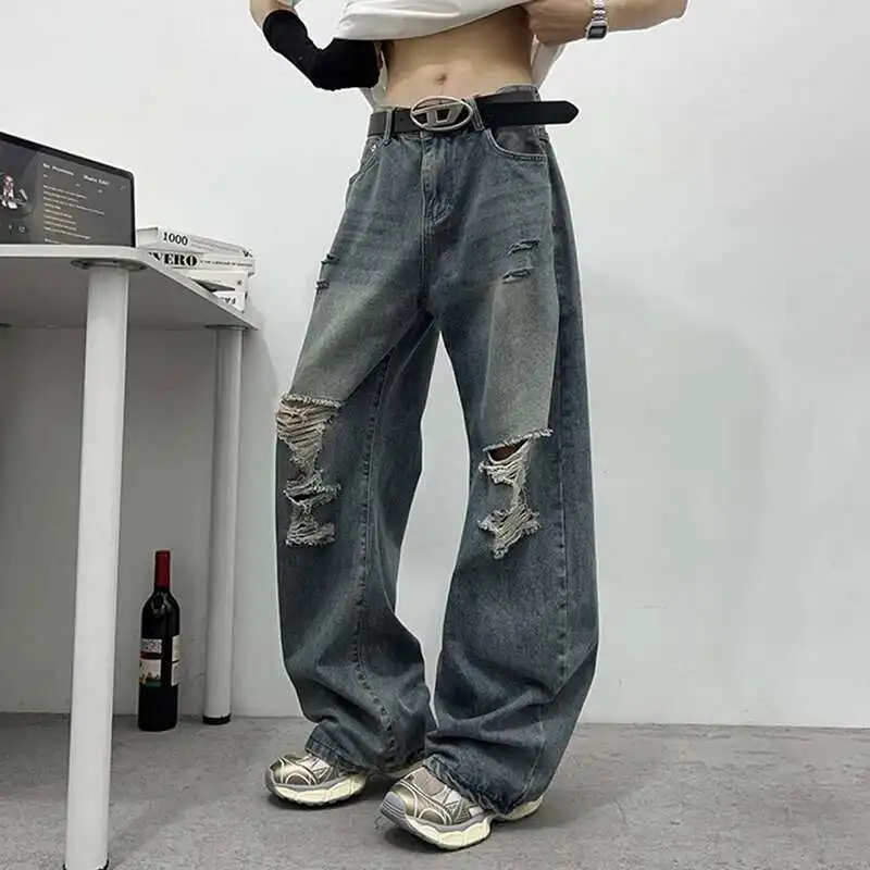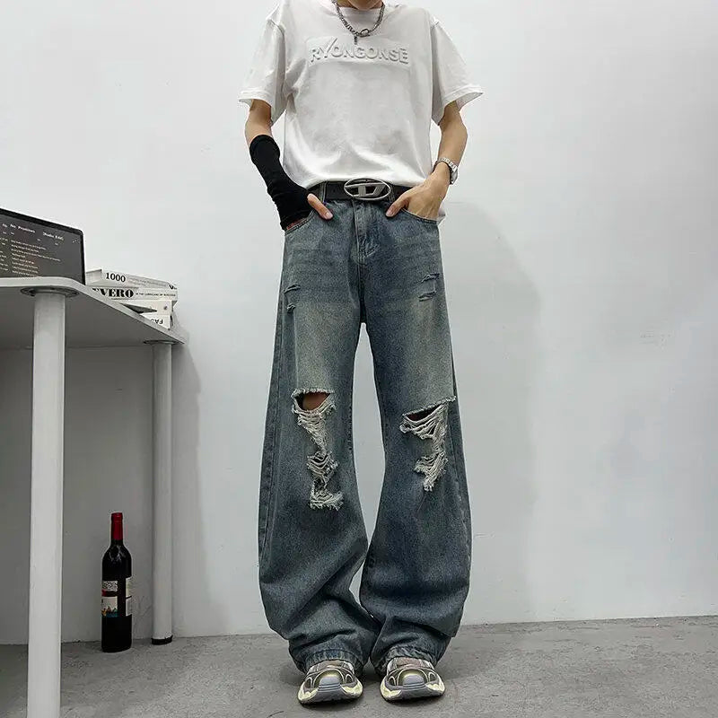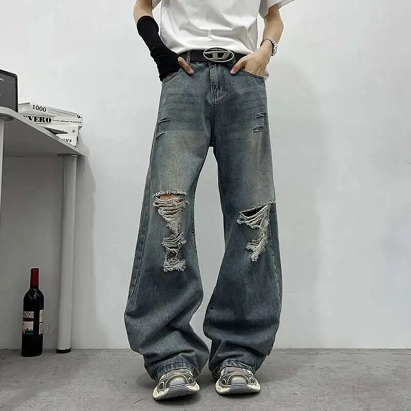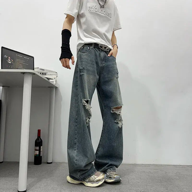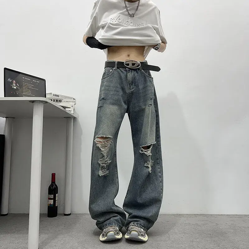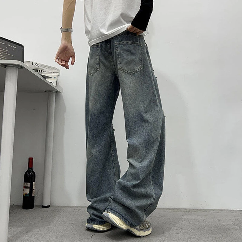 AIDASE - Summer New Ripped Men's Jeans 2025 Fashion Niche Design Straight-leg Loose Men Denim Pants High Street Menswear 21E6703