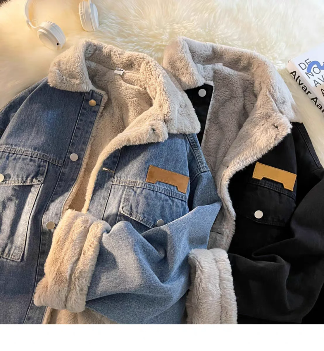 Aidase Thick Warm Lamb Fleece Lined Denim Jacket Men Winter Windbreaker Jackets Outwear Jeans Coats Male Multi-pockets Cowboy Clothing