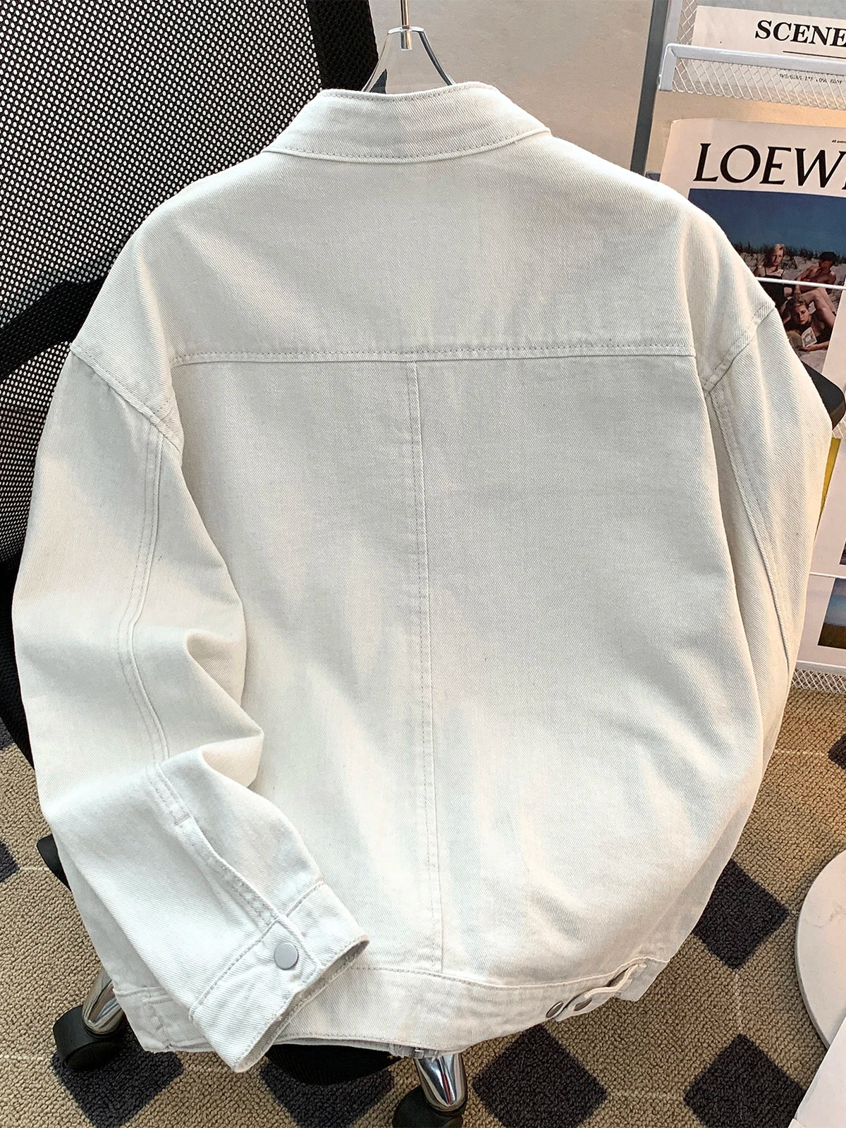 AIDASE - Washed Jeans Coat Worn Deconstructed Stand Collar Denim Jacket for Men's American Cleanfit Design Canvas Zipper Jacket