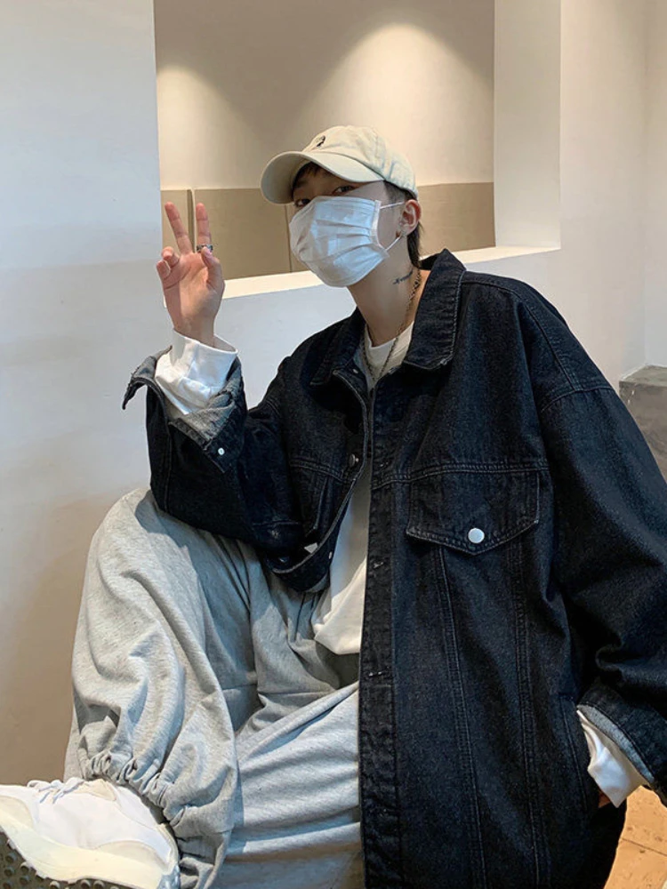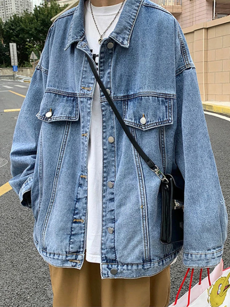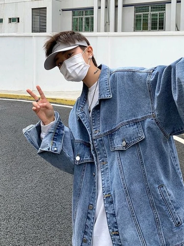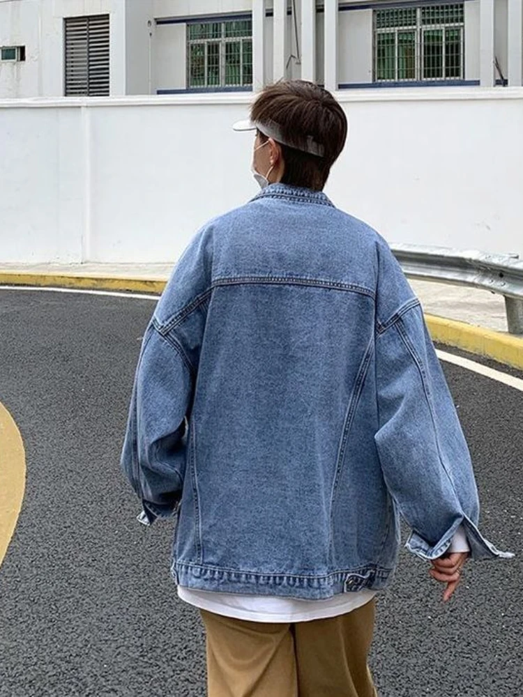 Denim Jacket Men's High Street Hip-hop Trainer Jacket Autumn Trend Streetwear All-match Preppy Oversize Punk Jeans Coat