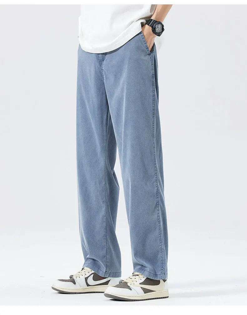 Lyocell Fabric Soft Jeans for Men Baggy Korea Straight Casual Wide Leg Pants Solid Elastic Denim Trousers Plus Size M-5xl