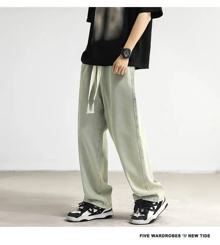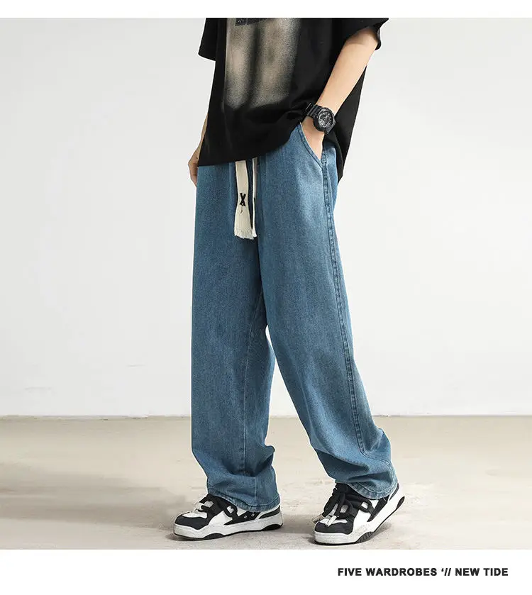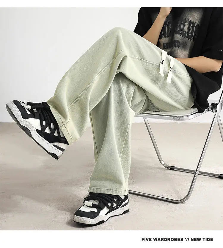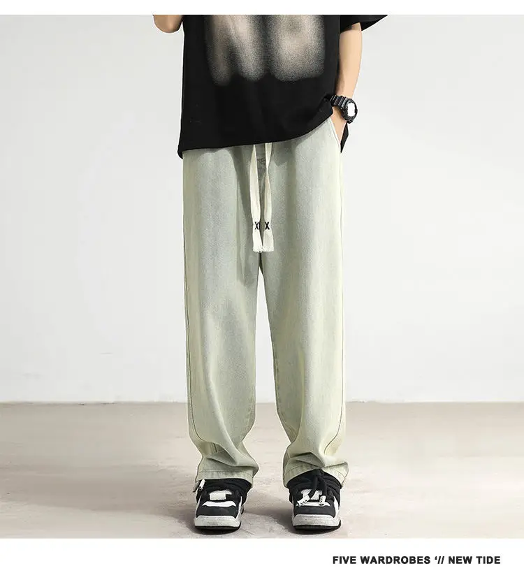 New Jeans Men's Loose Straight Tube Slim Fitting Drawstring Wide Leg Pants Streetwear Oversized Casual Denim Trousers