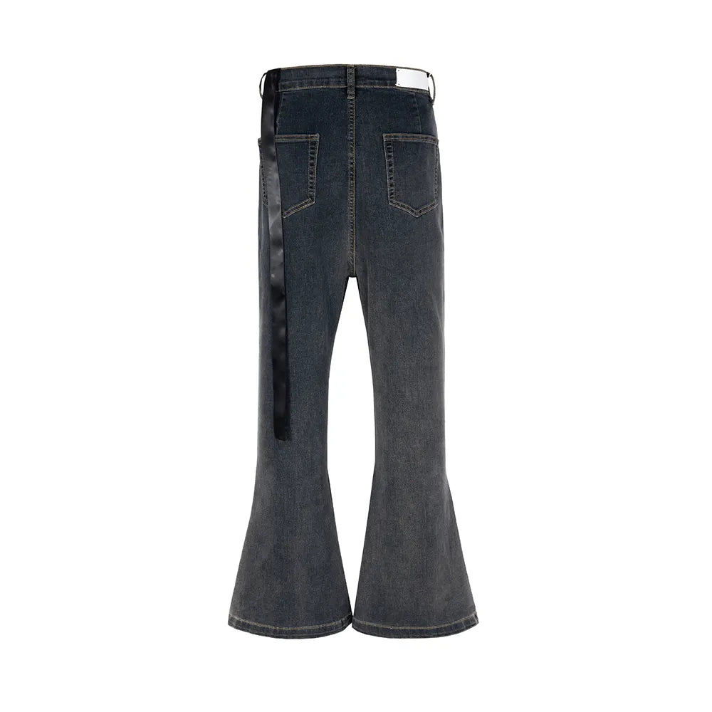 Style Gradient Washed Sashes Flare Jeans Unisex Streetwear Baggy Y2K Bell-bottoms Harajuku Loose Casual Denim Trousers