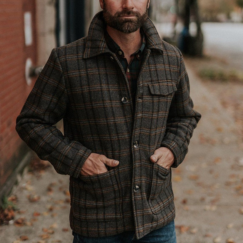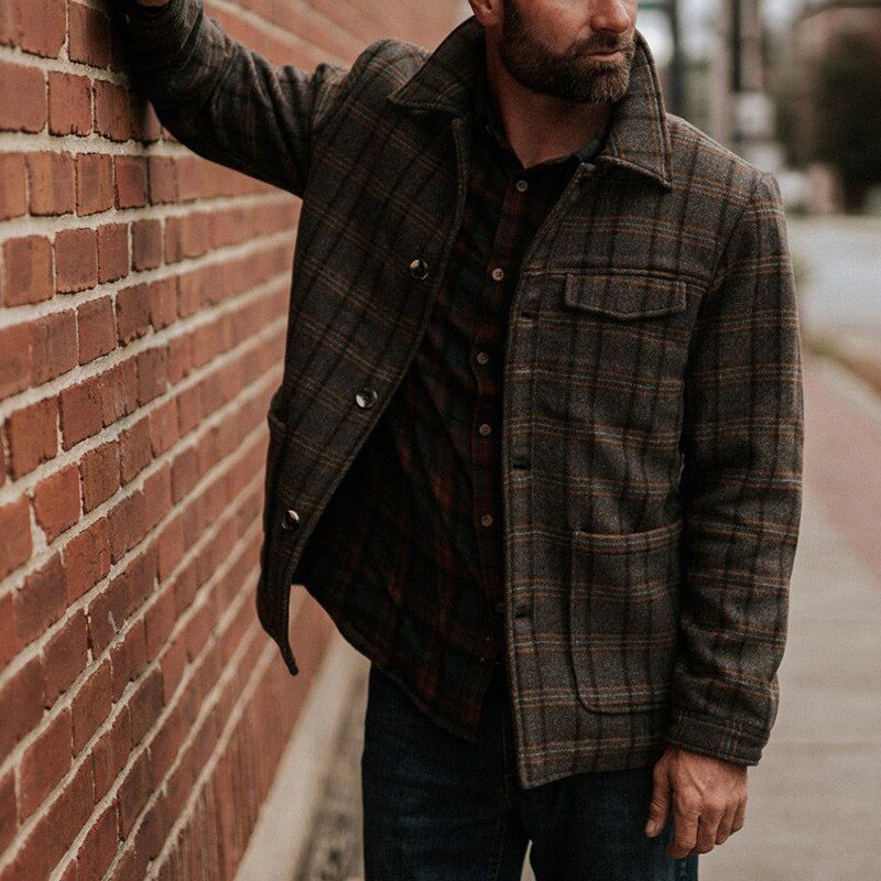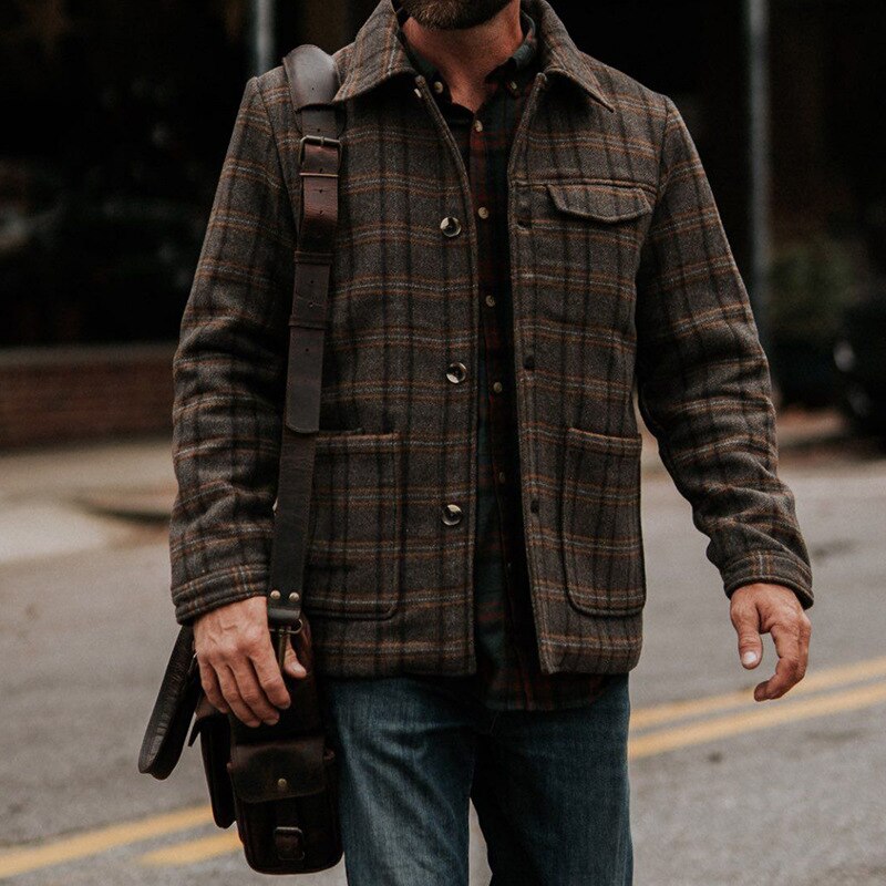Aidase Autumn Vintage Plaid Printed Long Sleeve Jackets Men Casual Loose Turn-down Collar Coats Mens New Spring Fashion Outerwear