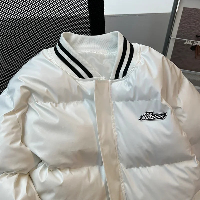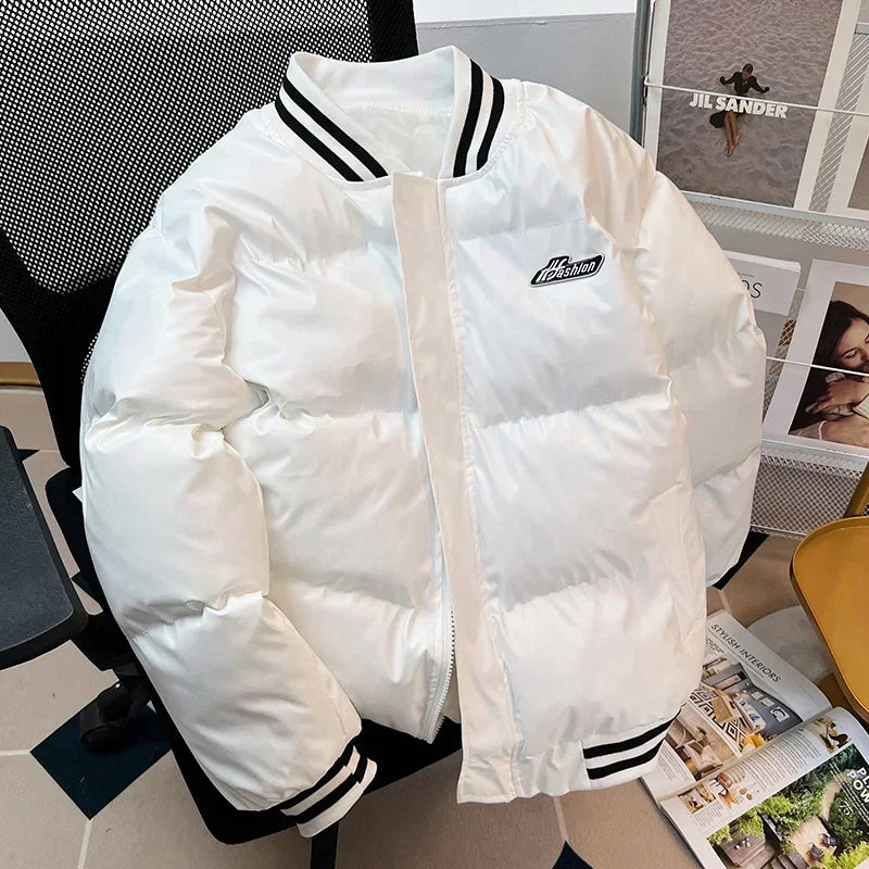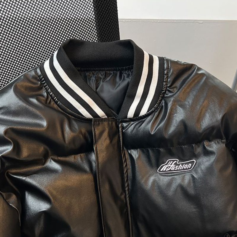 Aidase American Baseball Uniform PU Bomber Jacket Hip Hop Thickened Stand Collar Parkas Loose Versatile Couple Winter Coat