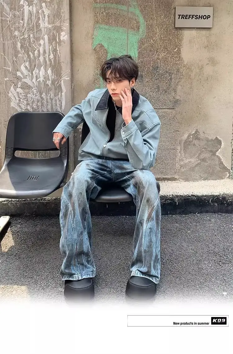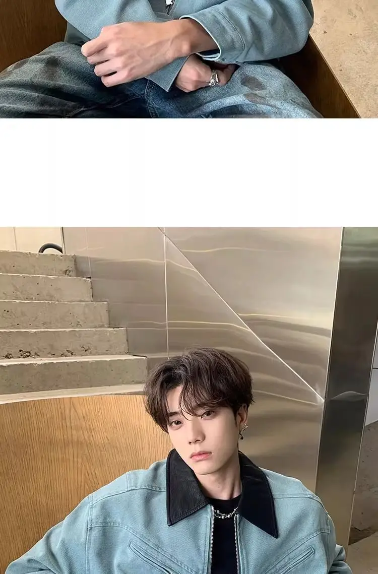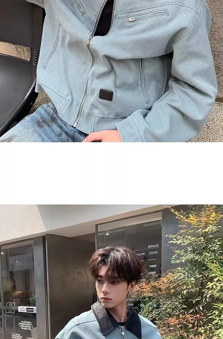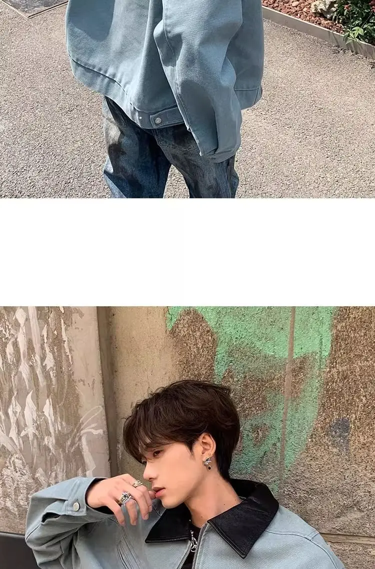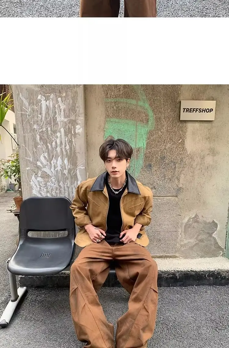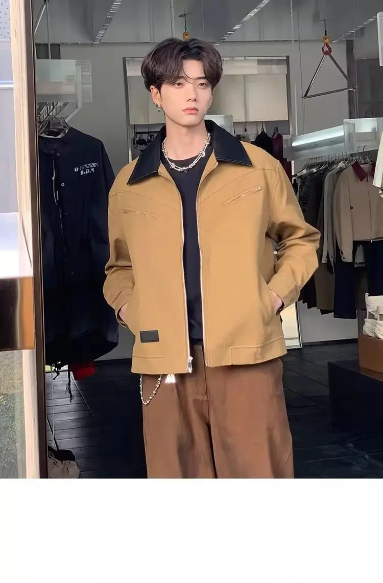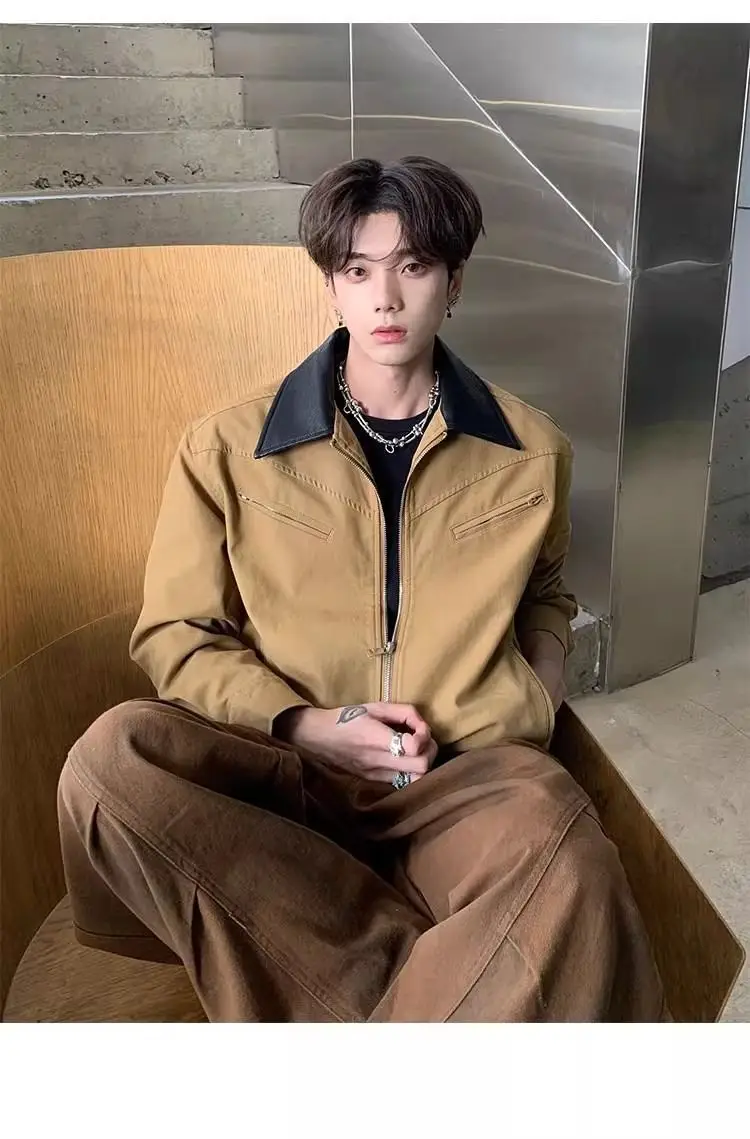 AIDASE - Fashion Male Jacket Patchwork Leather Contrast Color Design Long Sleeve Turn-down Collar Men Coats 2025 New Clothes 21E7564