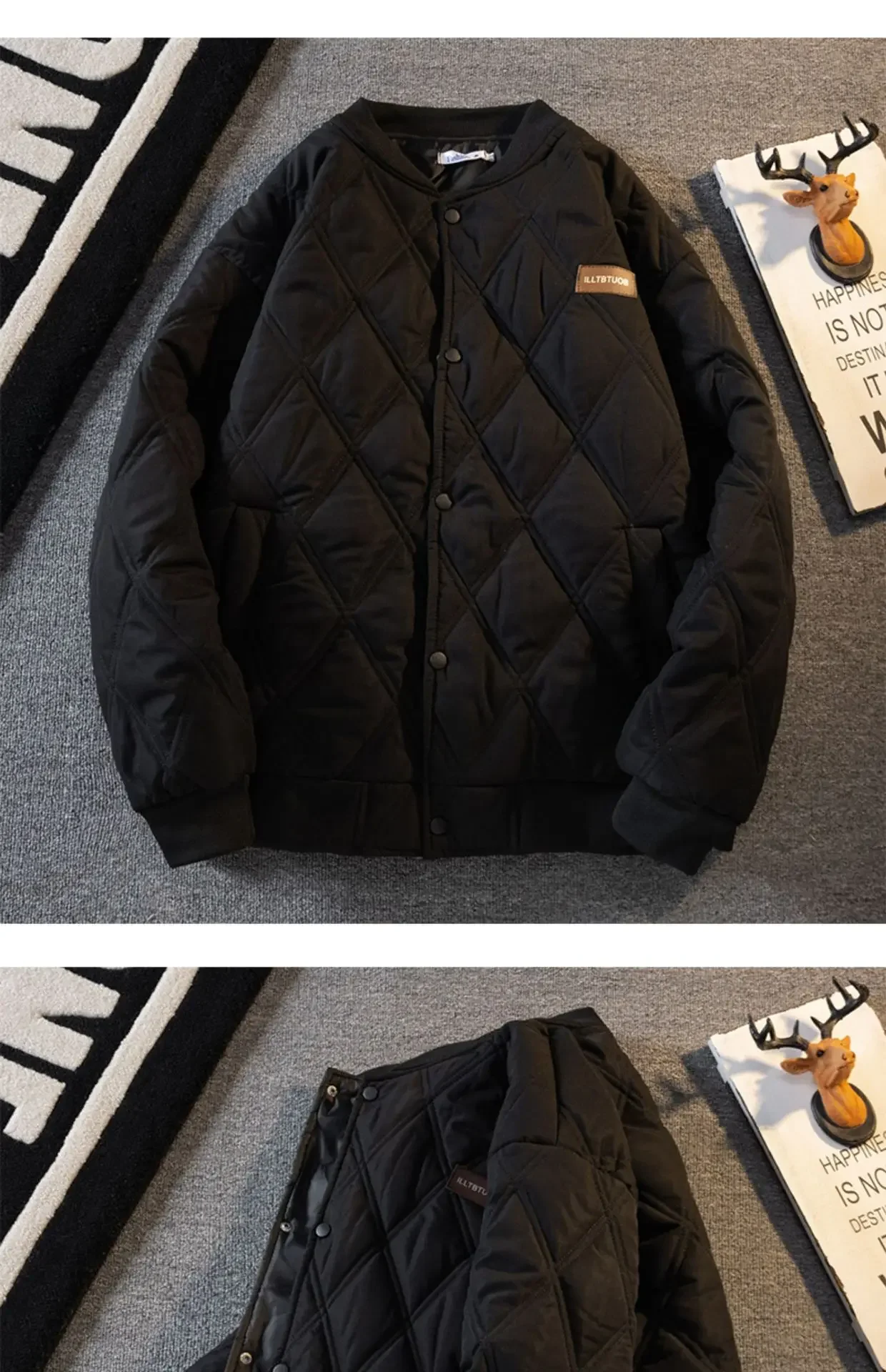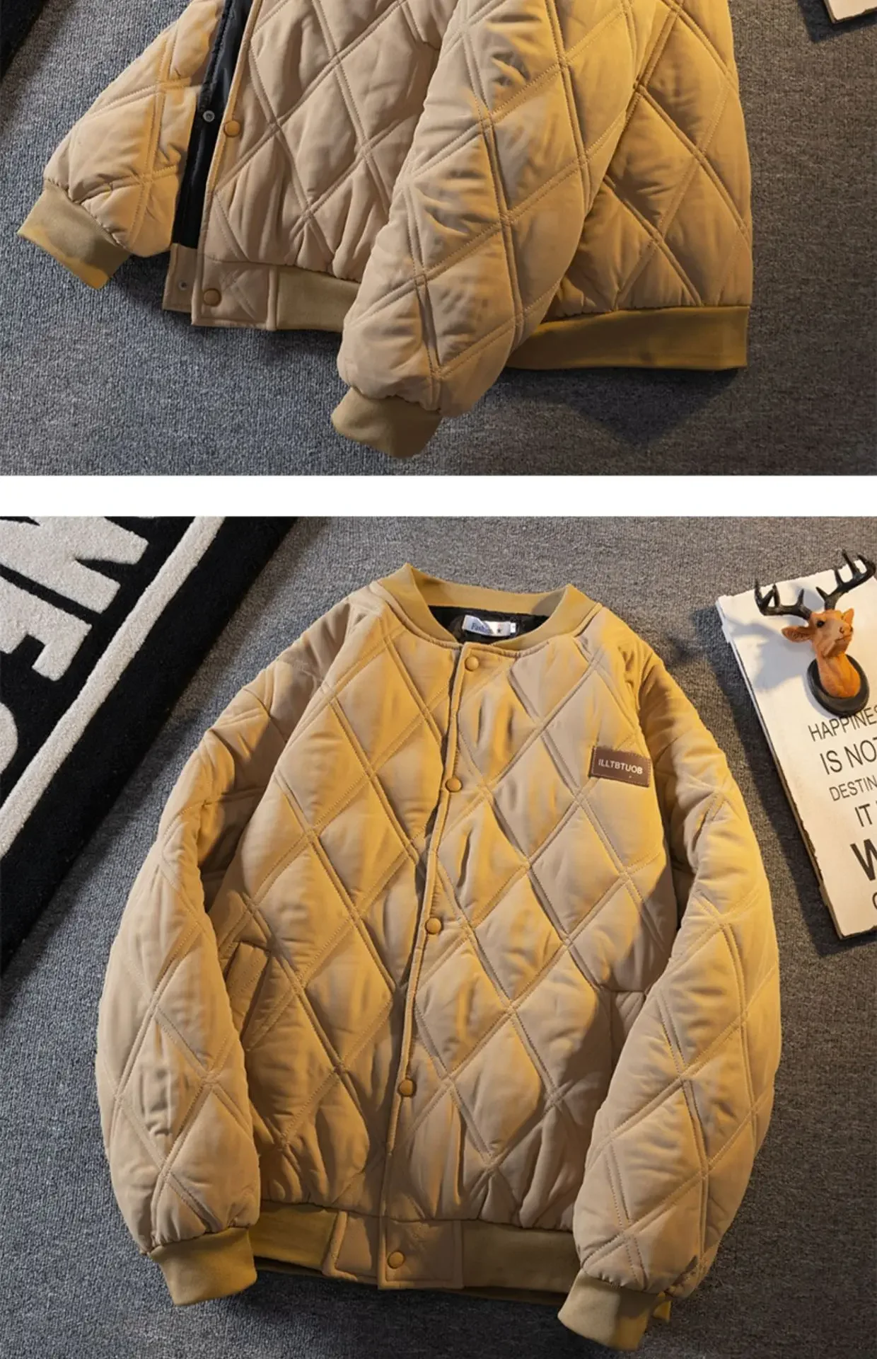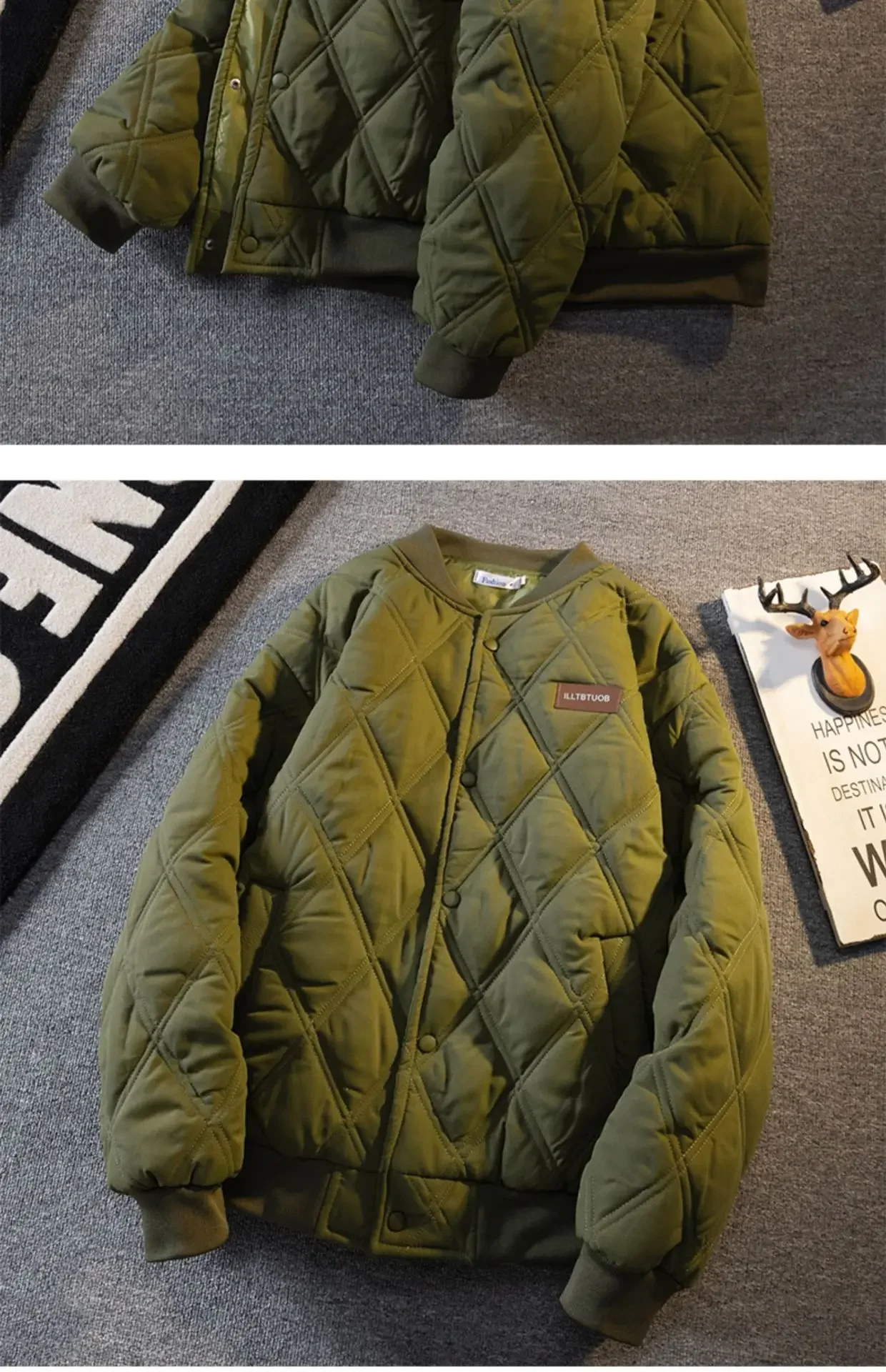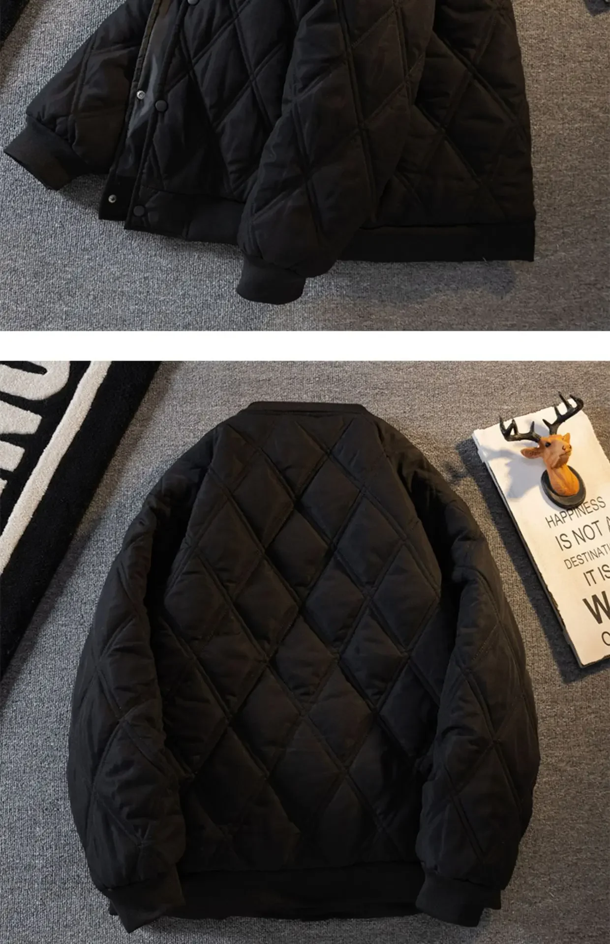 AIDASE - Fashionable Men's Winter Cotton Jacket Diamond Patterned Warm Casual Baseball Style Coat Stylish Retro Japanese Trend