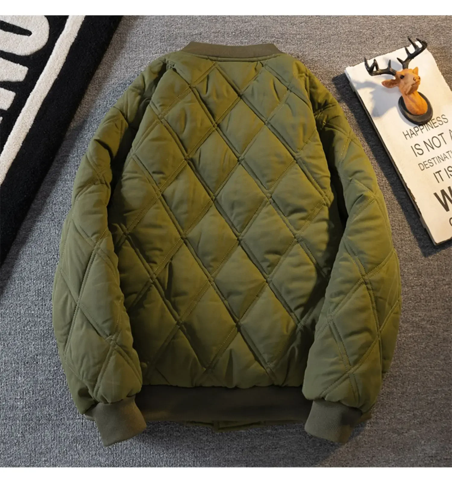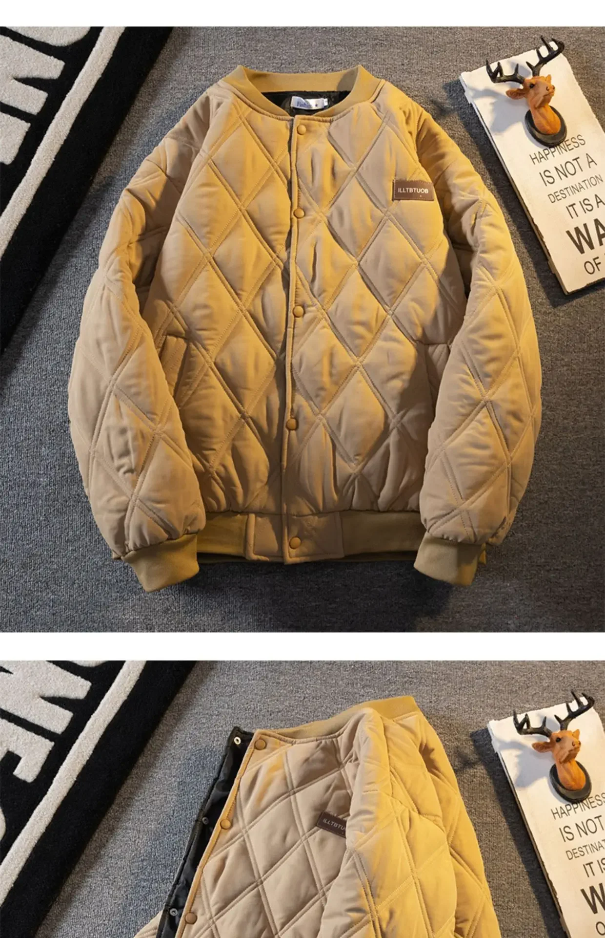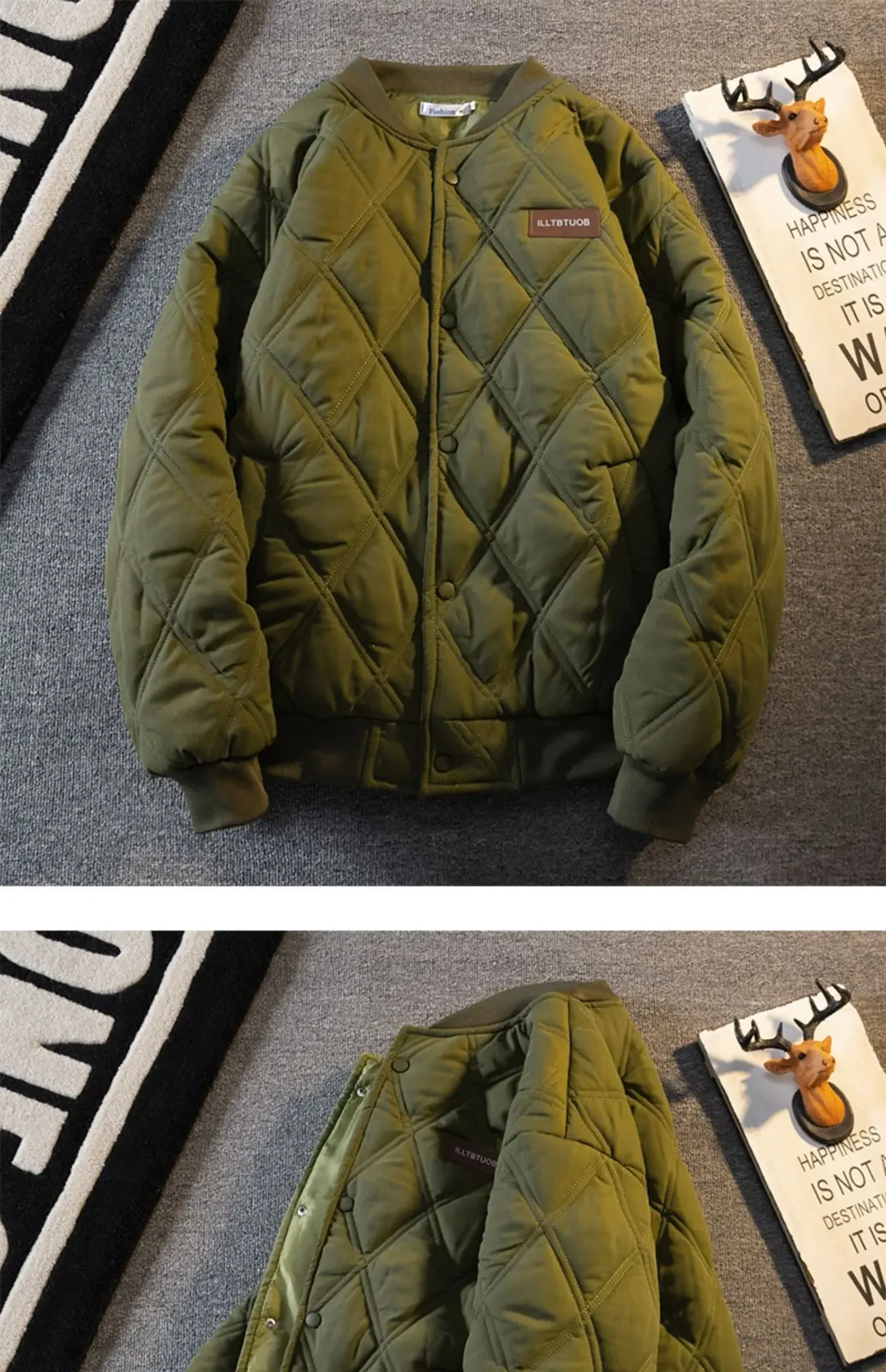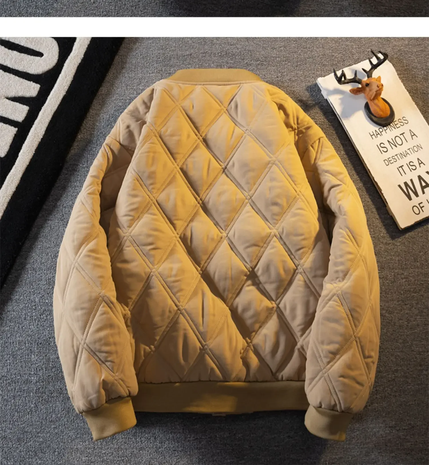 AIDASE - Fashionable Men's Winter Cotton Jacket Diamond Patterned Warm Casual Baseball Style Coat Stylish Retro Japanese Trend