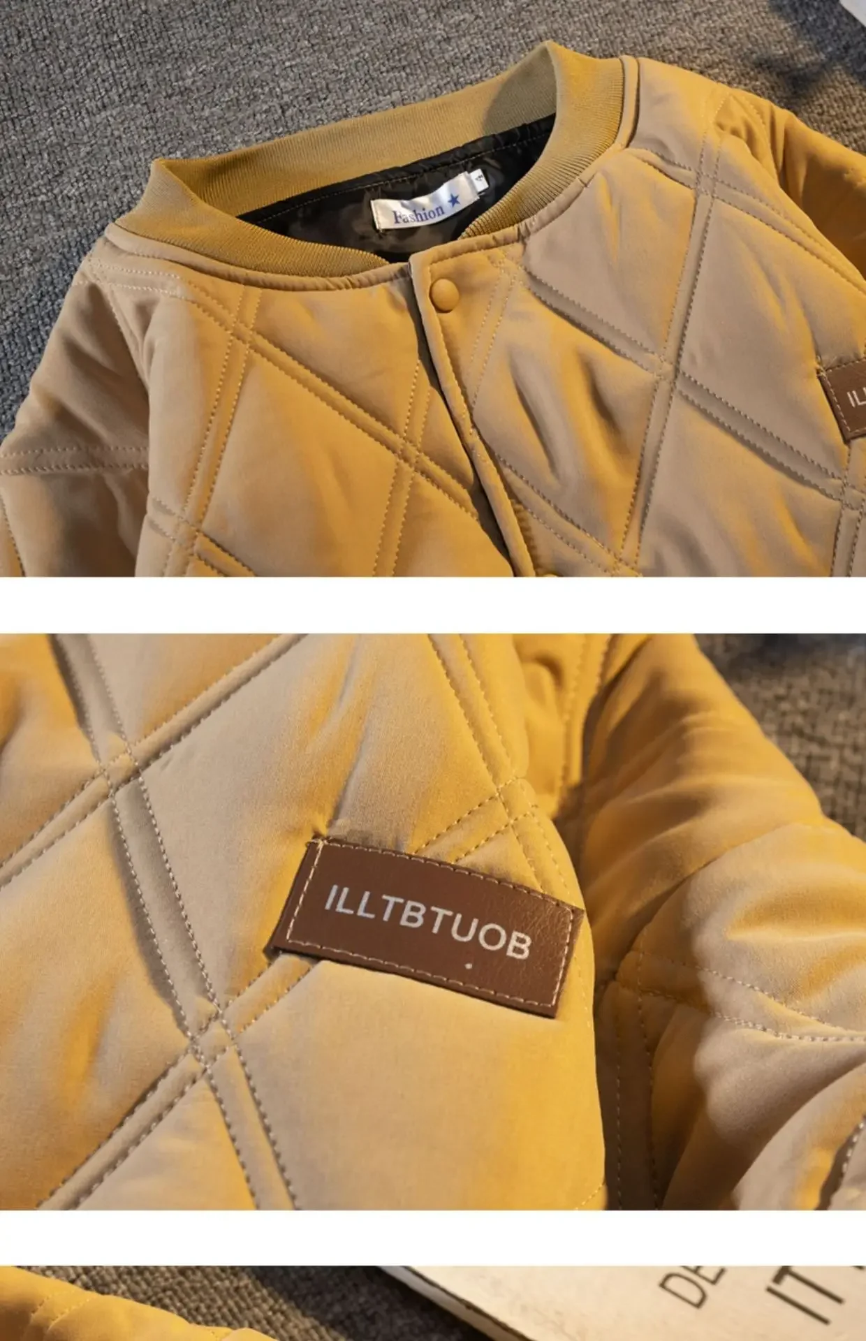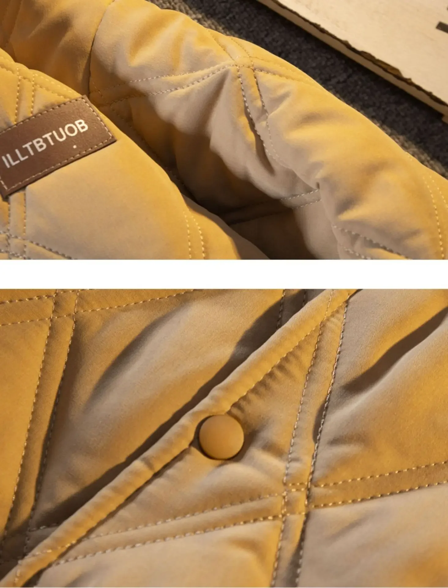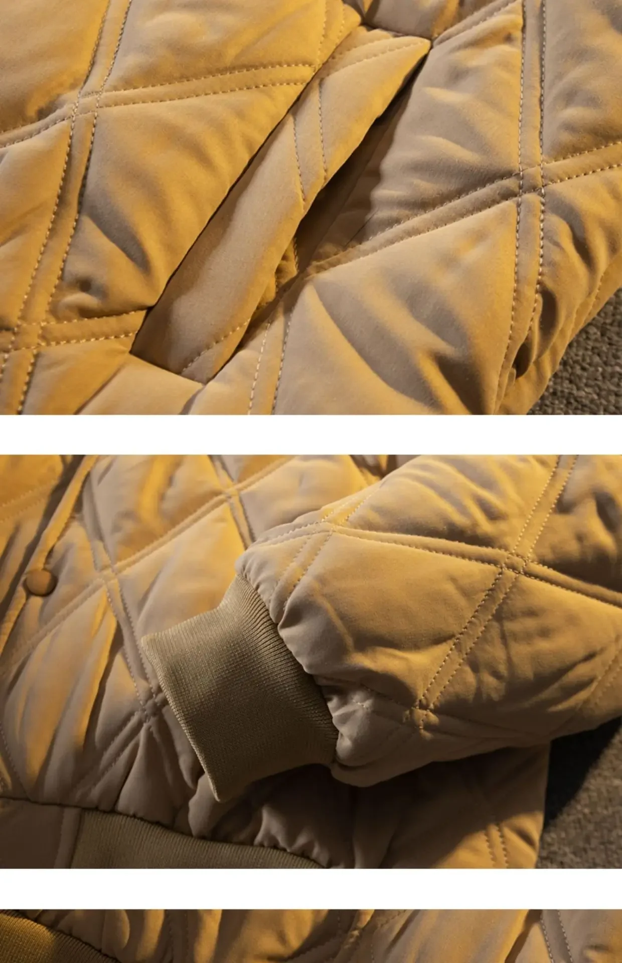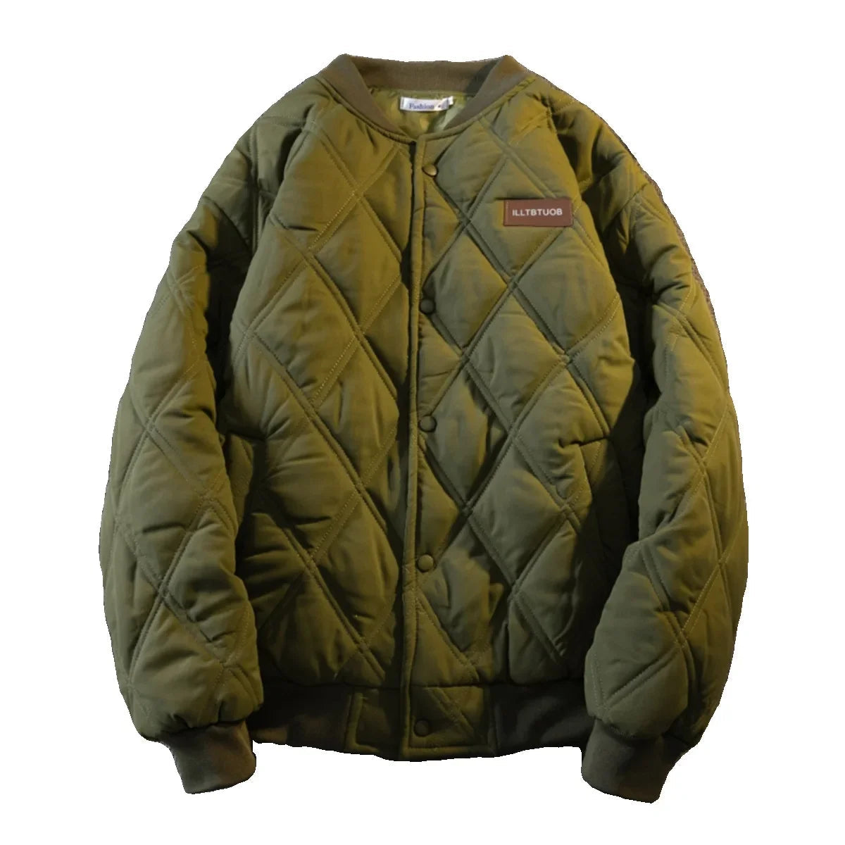 AIDASE - Fashionable Men's Winter Cotton Jacket Diamond Patterned Warm Casual Baseball Style Coat Stylish Retro Japanese Trend