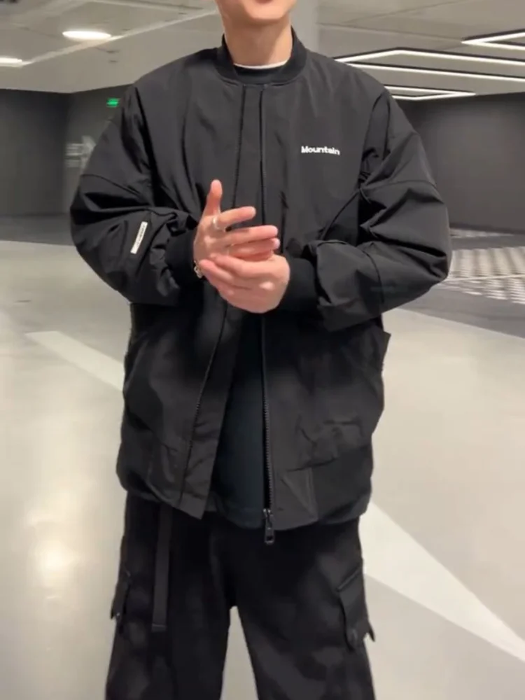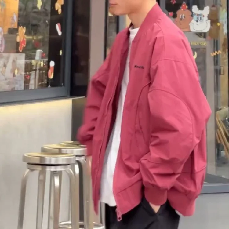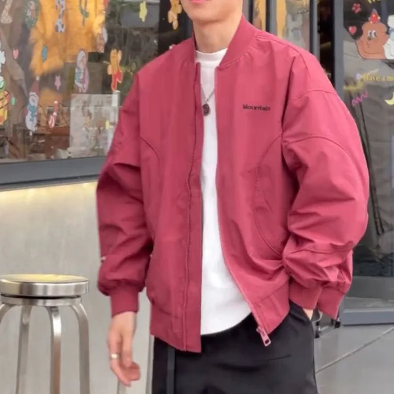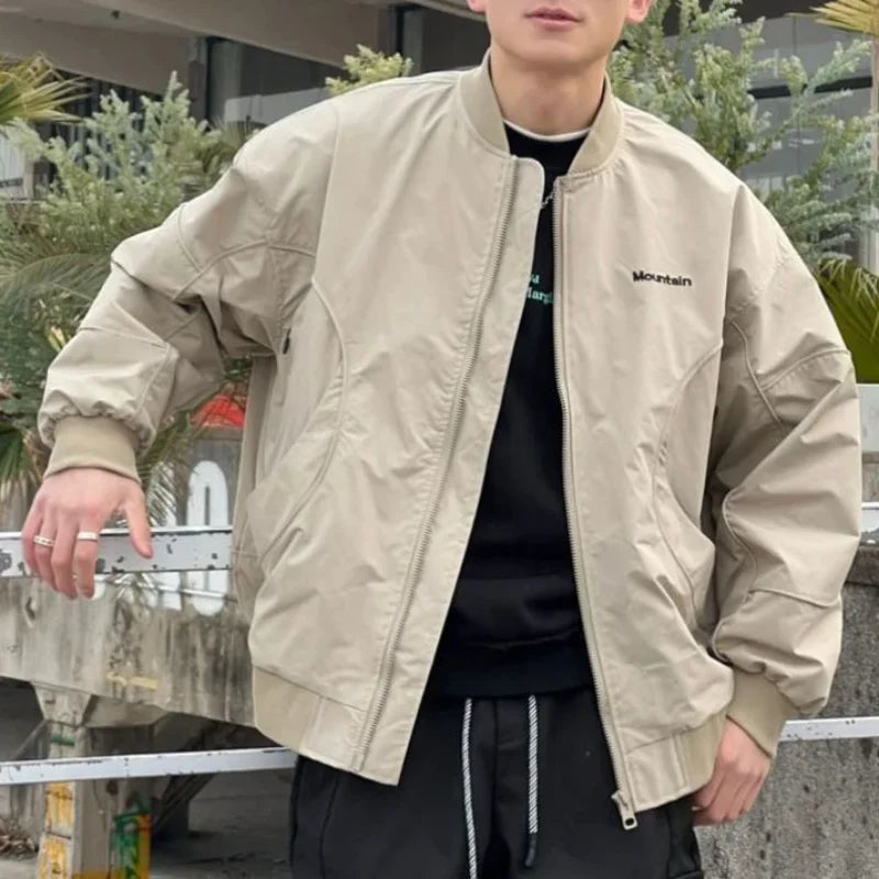 AIDASE - Japanese Loose Dropped Shoulder Baseball Jacket for Men's Spring Autumn Chest Letter Flight Jacket College Trendy Casual Coats