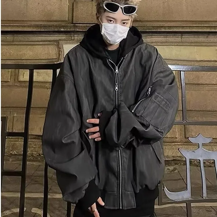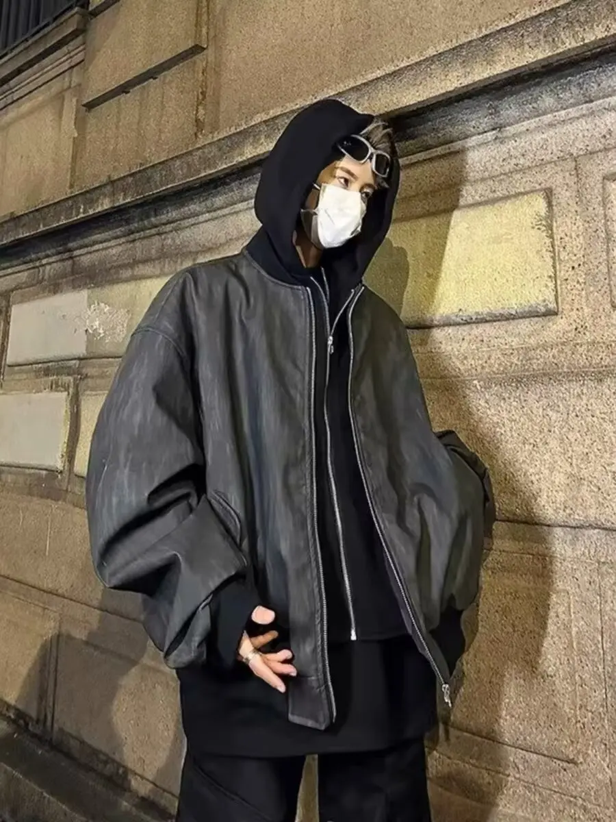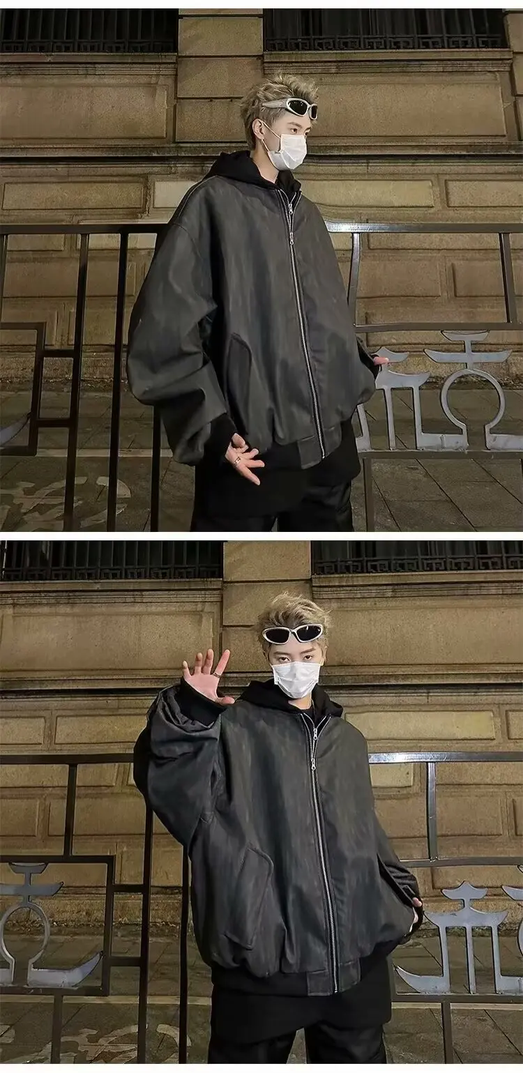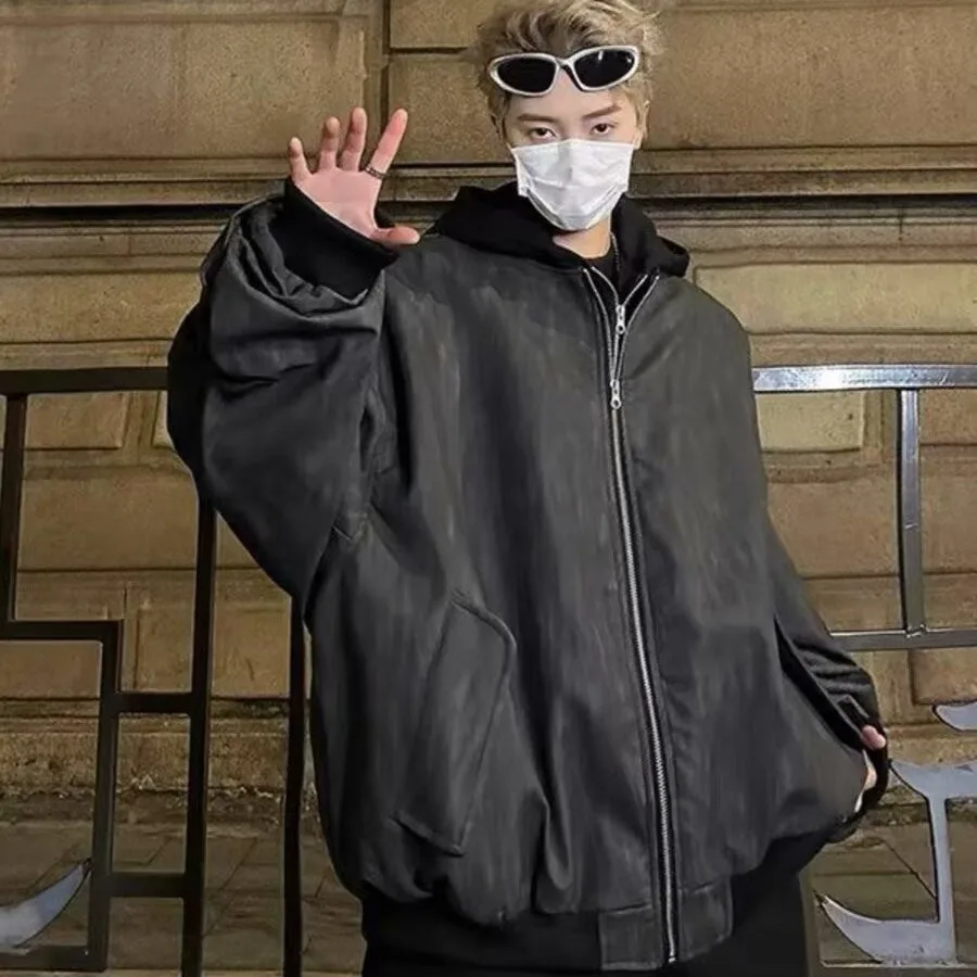 Aidase Leather Jackets Men Hooded Fake Two Pieces High Street Cool Handsome Streetwear All-match Coats Casual Designed Trendy PU Ins