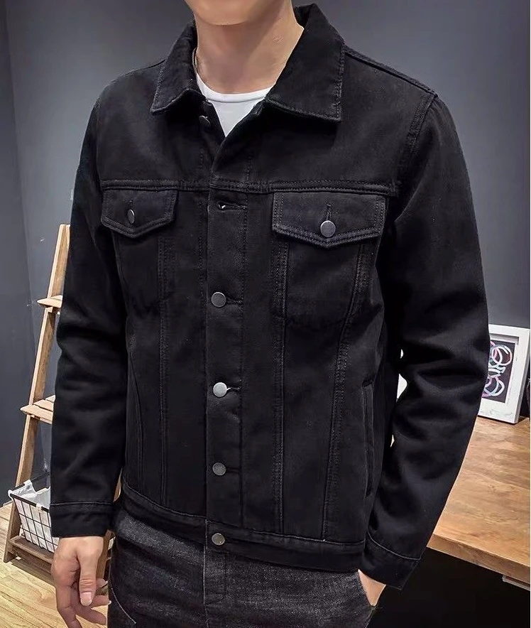 Aidase mens outfits Male Jean Coats with Sheep Padding Men's Denim Jacket Wide Sleeves Black Padded Wool Warm Winter Outerwear Aesthetic Clothing