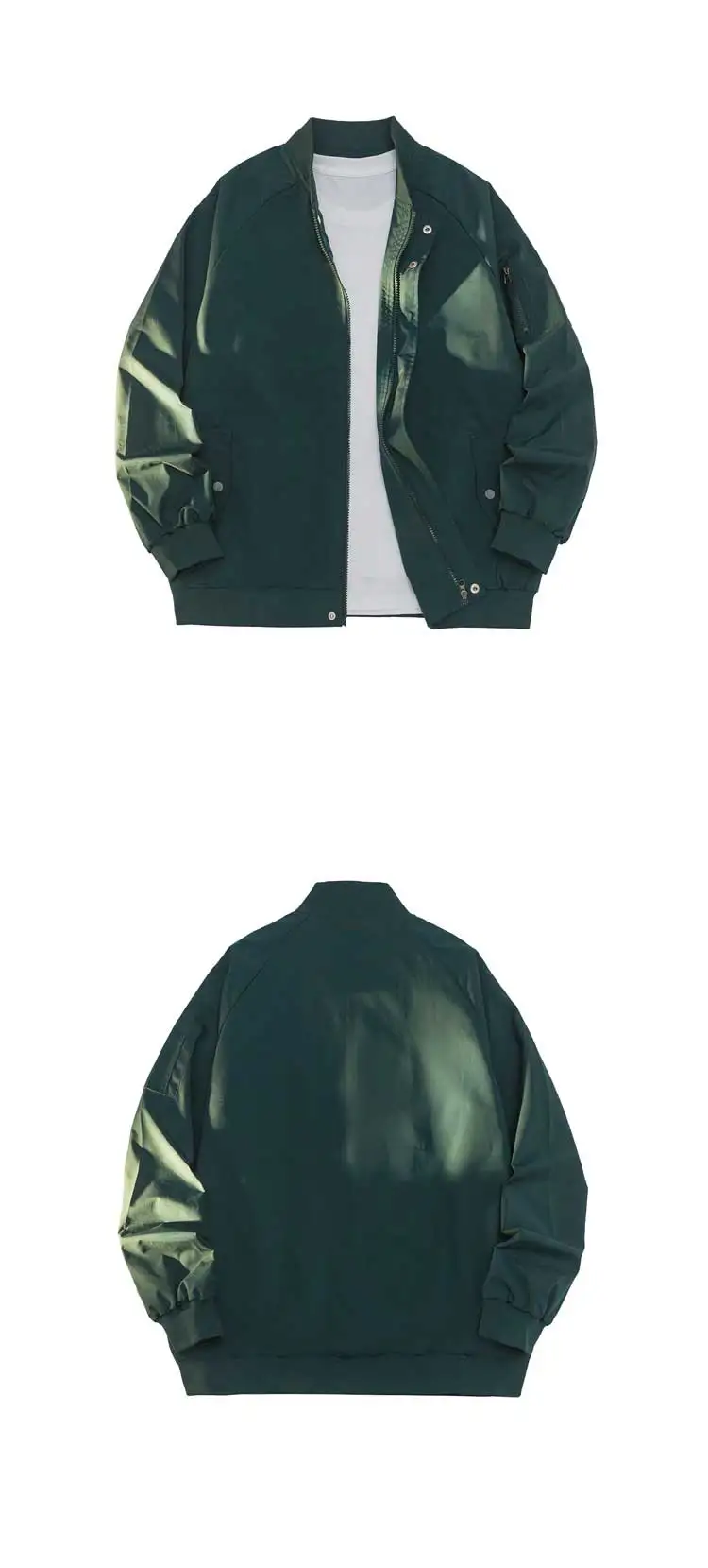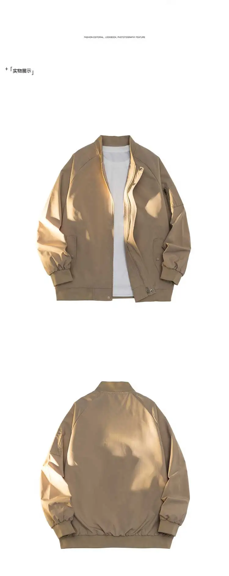 AIDASE - Men Bomber Jacket Casual Solid Stand Collar Full-Zip Pilot Coat Loose Male Outwear