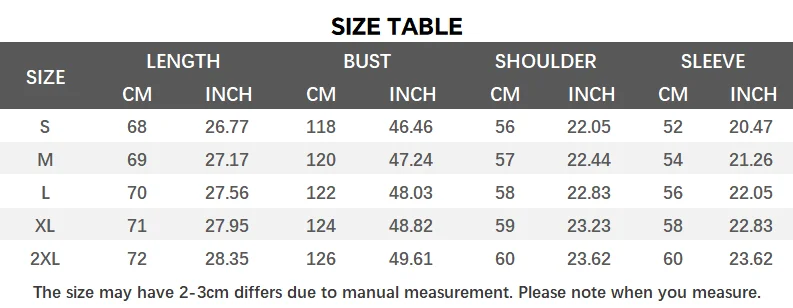 1. Due to different personal body proportions, the above size suggestions are for reference only; because it is manual measurement, there will be an error of 2-3cm, please forgive me!