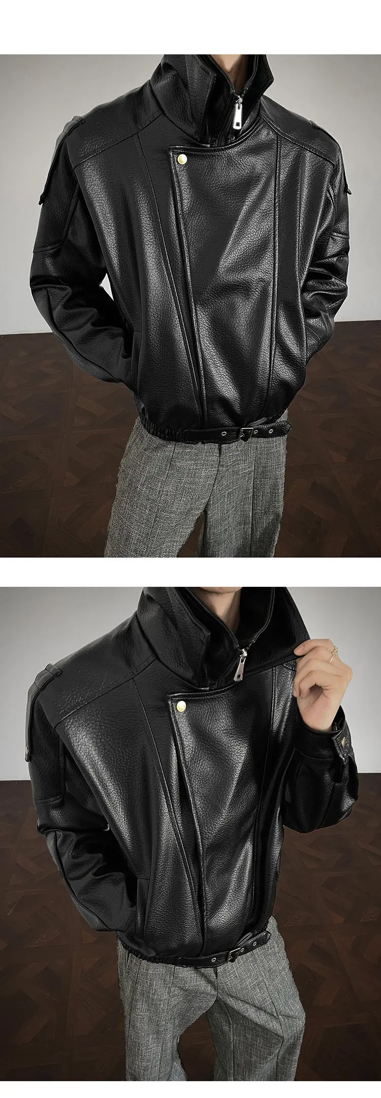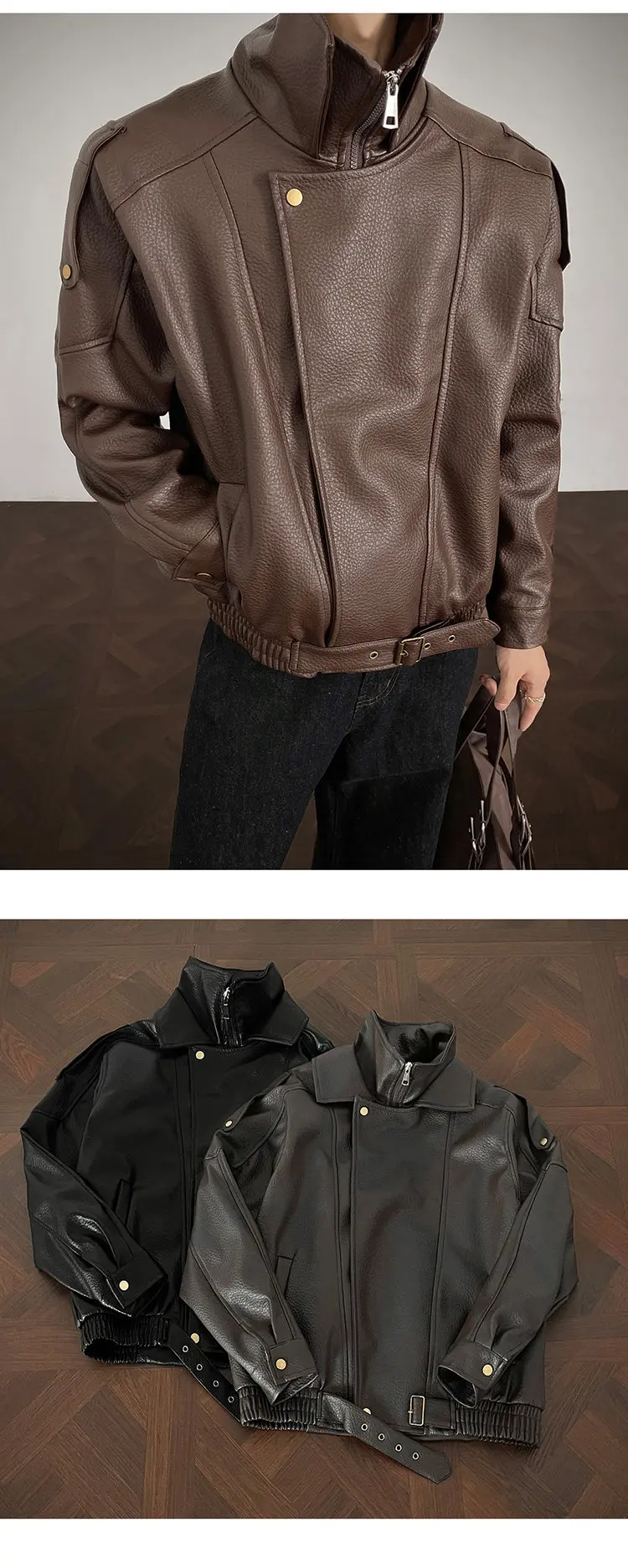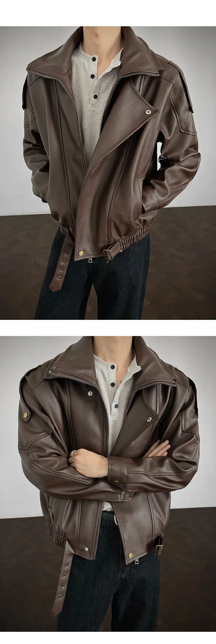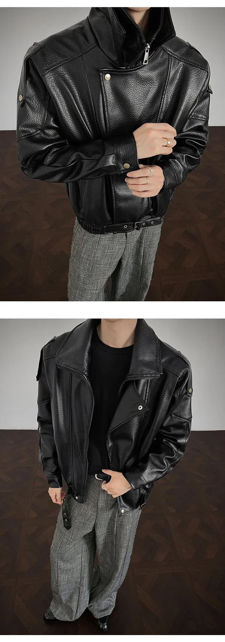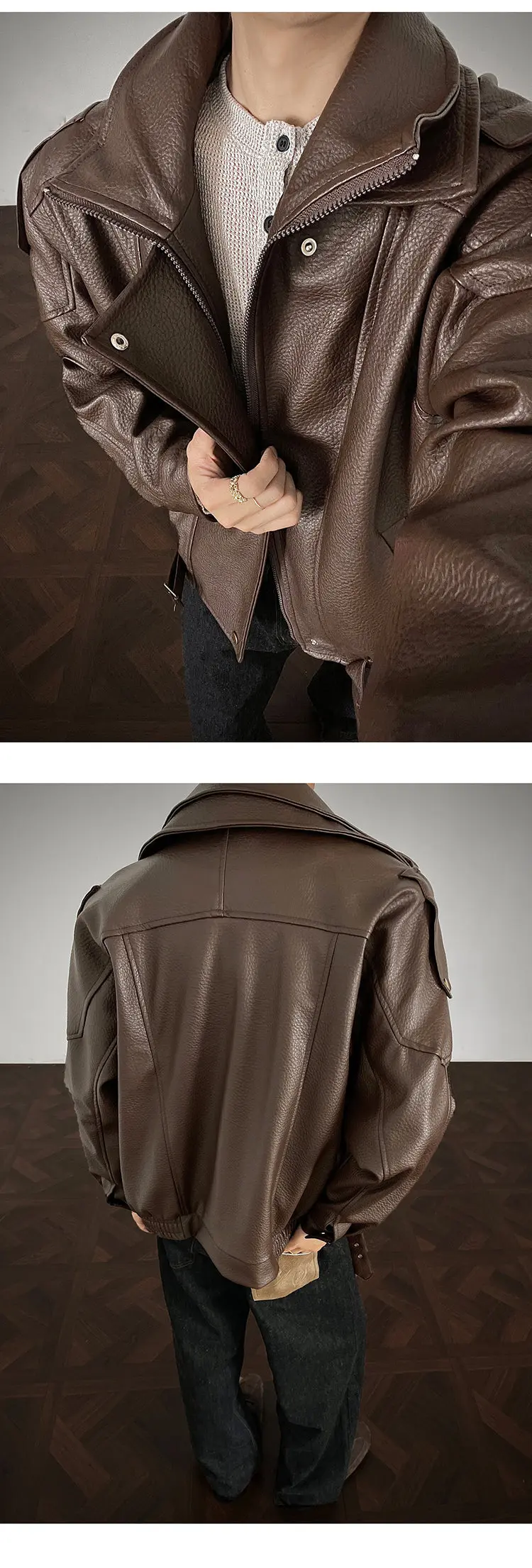 AIDASE - Men's PU Leather Jacket 2025 Autumn New Lychee Pattern Double Layer Collar Design Long Sleeve Fashion Male Coats 21E7549