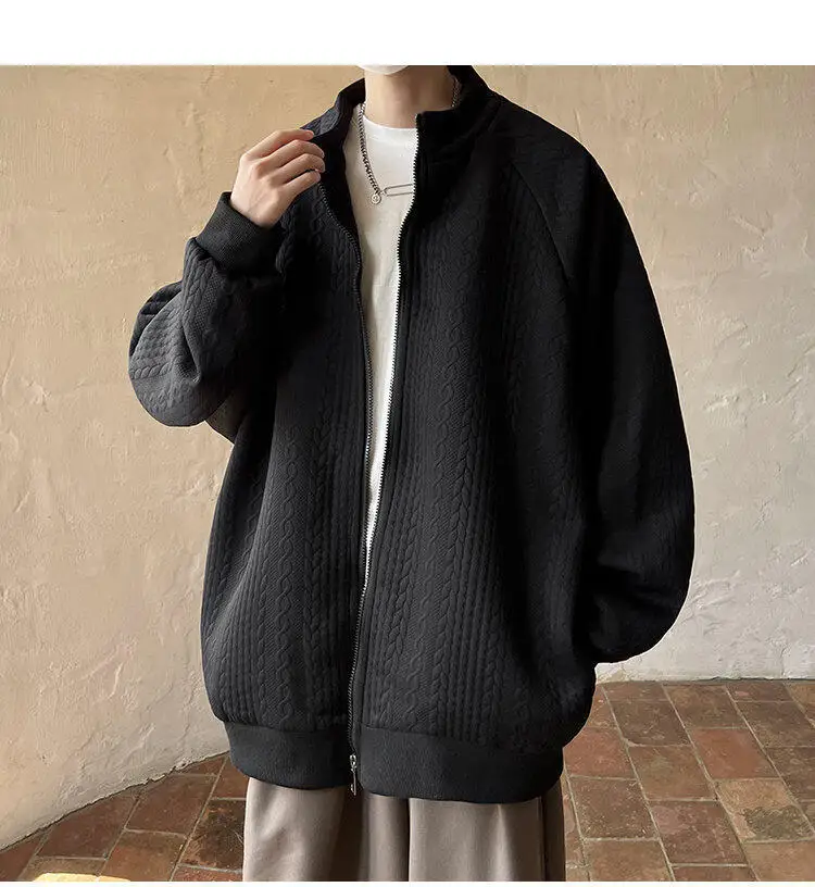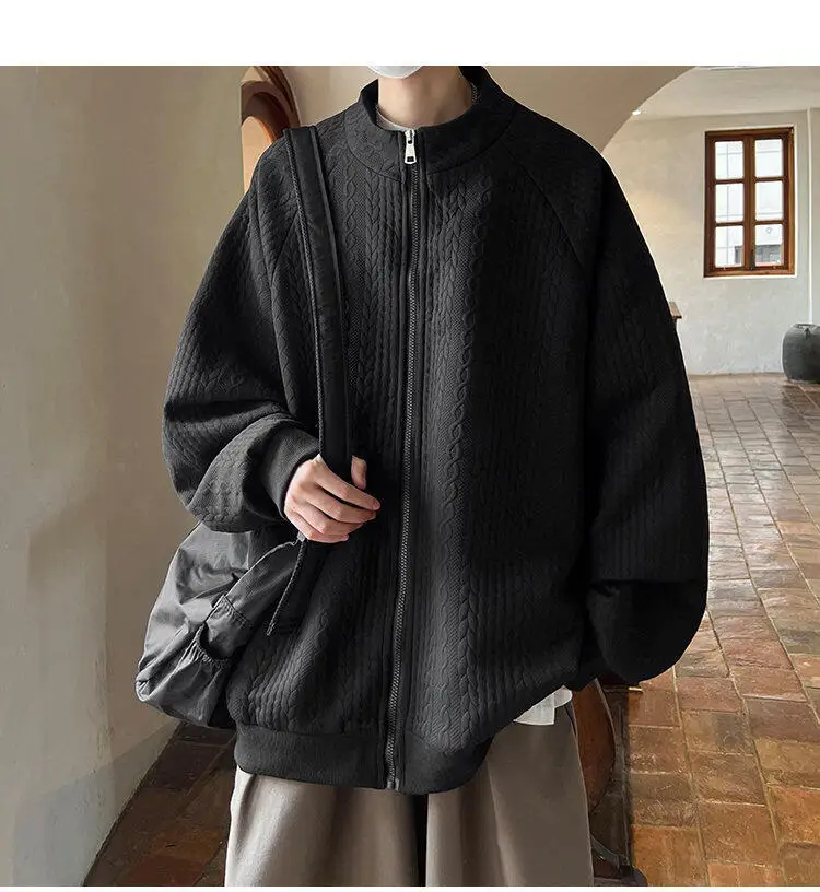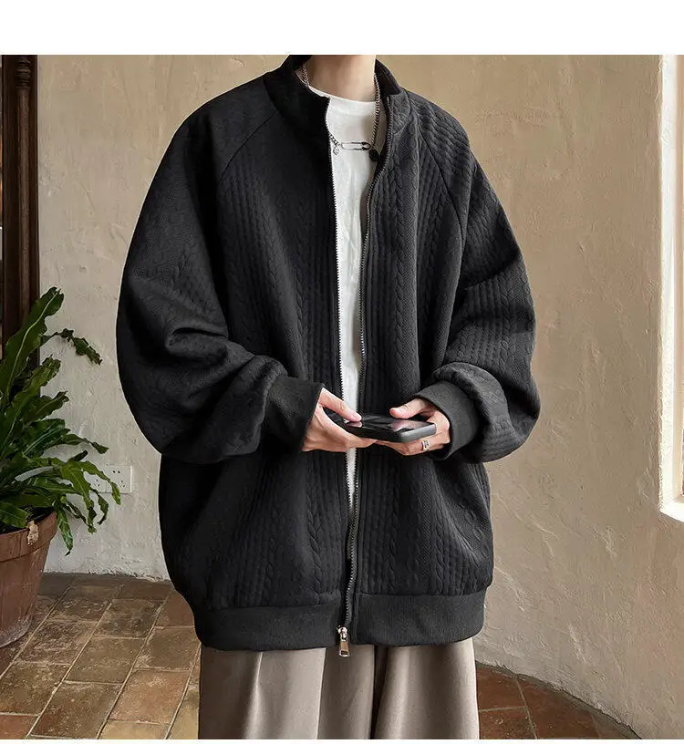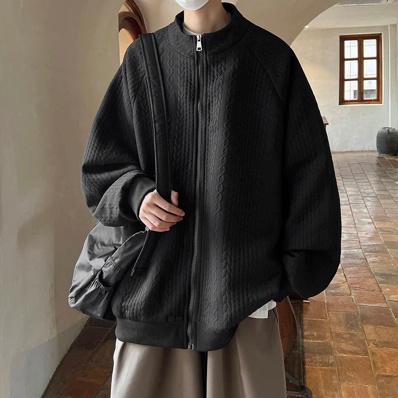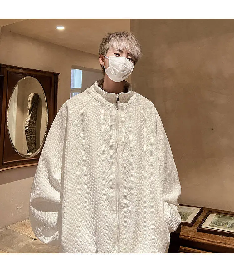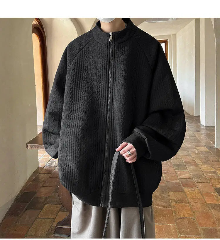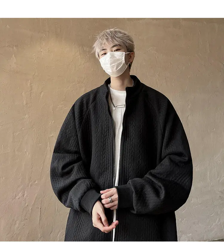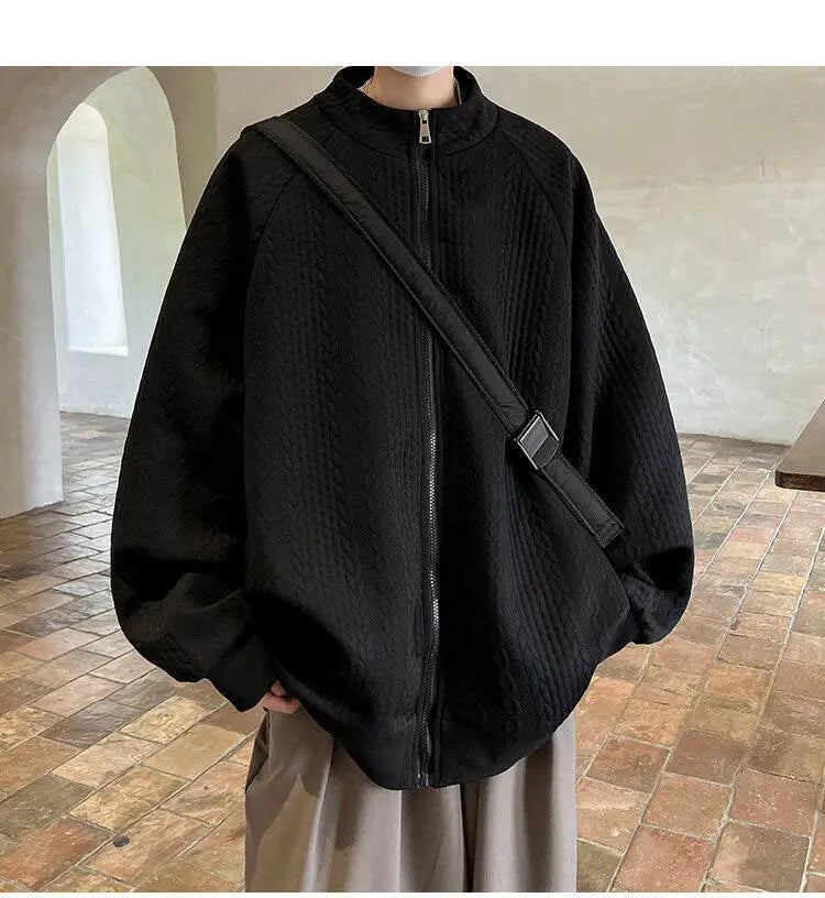 AIDASE - Niche Design Men's Jacket Diamond Pattern Decoration Long Sleeve Zipper Men Coats Korean Style Fashionable Menswear