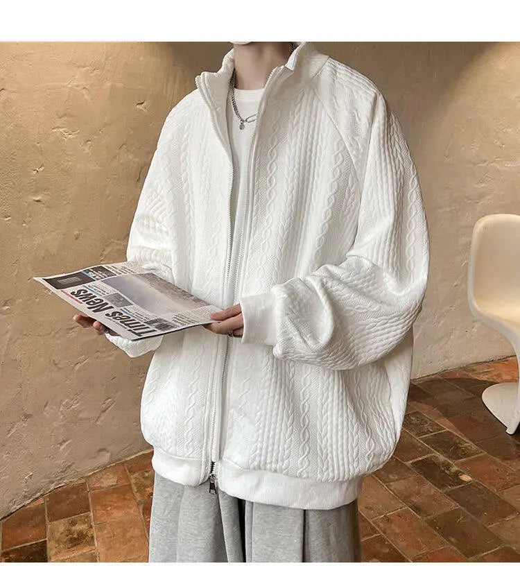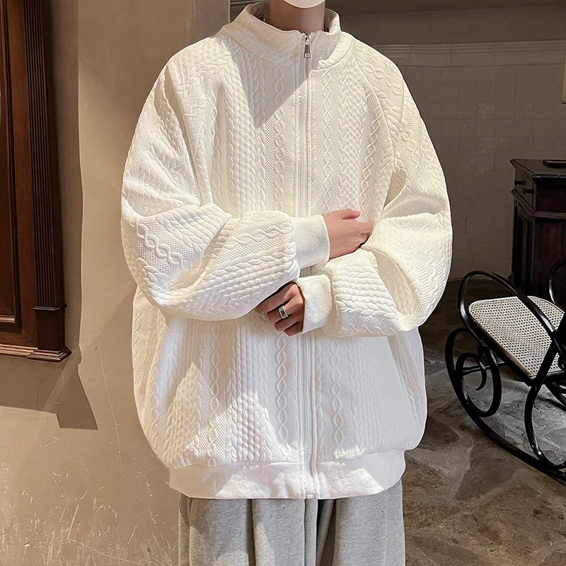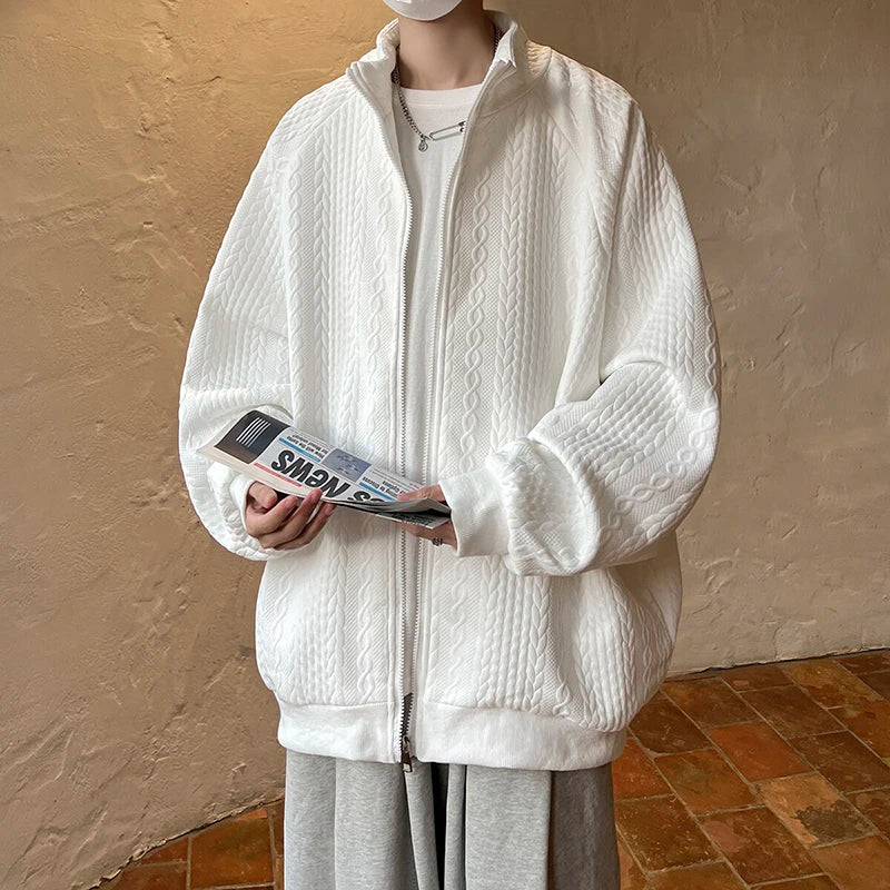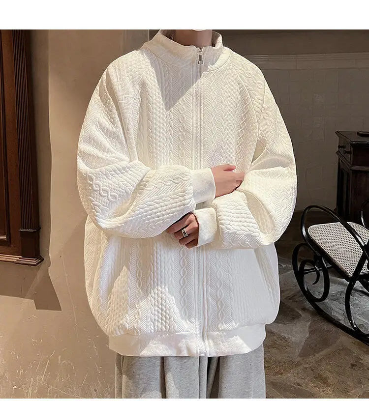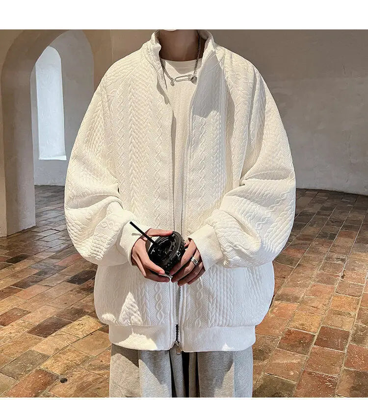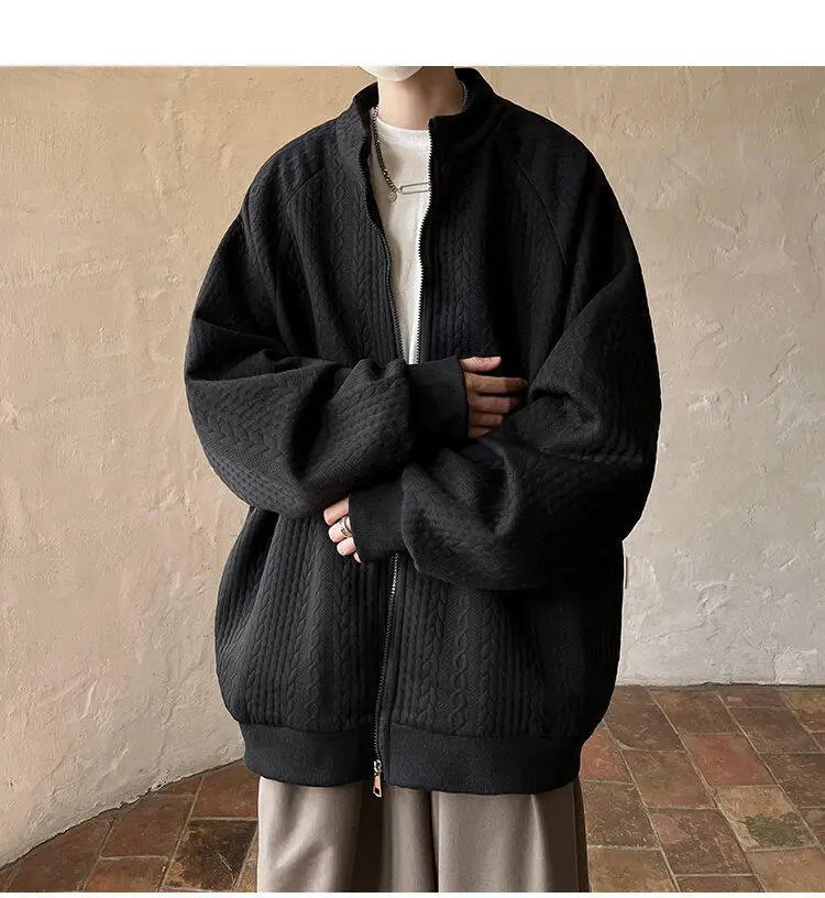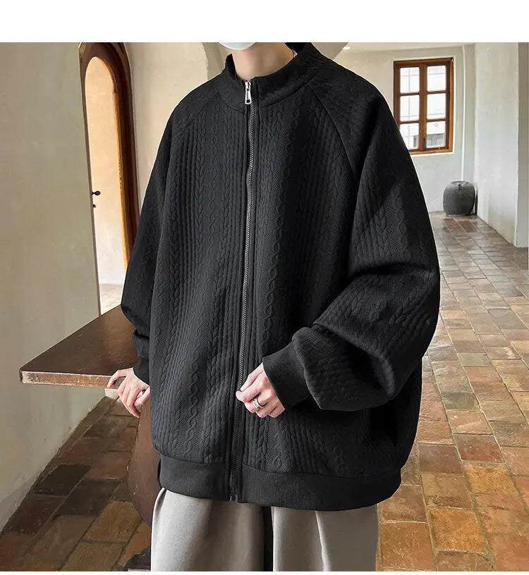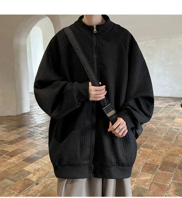 AIDASE - Niche Design Men's Jacket Diamond Pattern Decoration Long Sleeve Zipper Men Coats Korean Style Fashionable Menswear