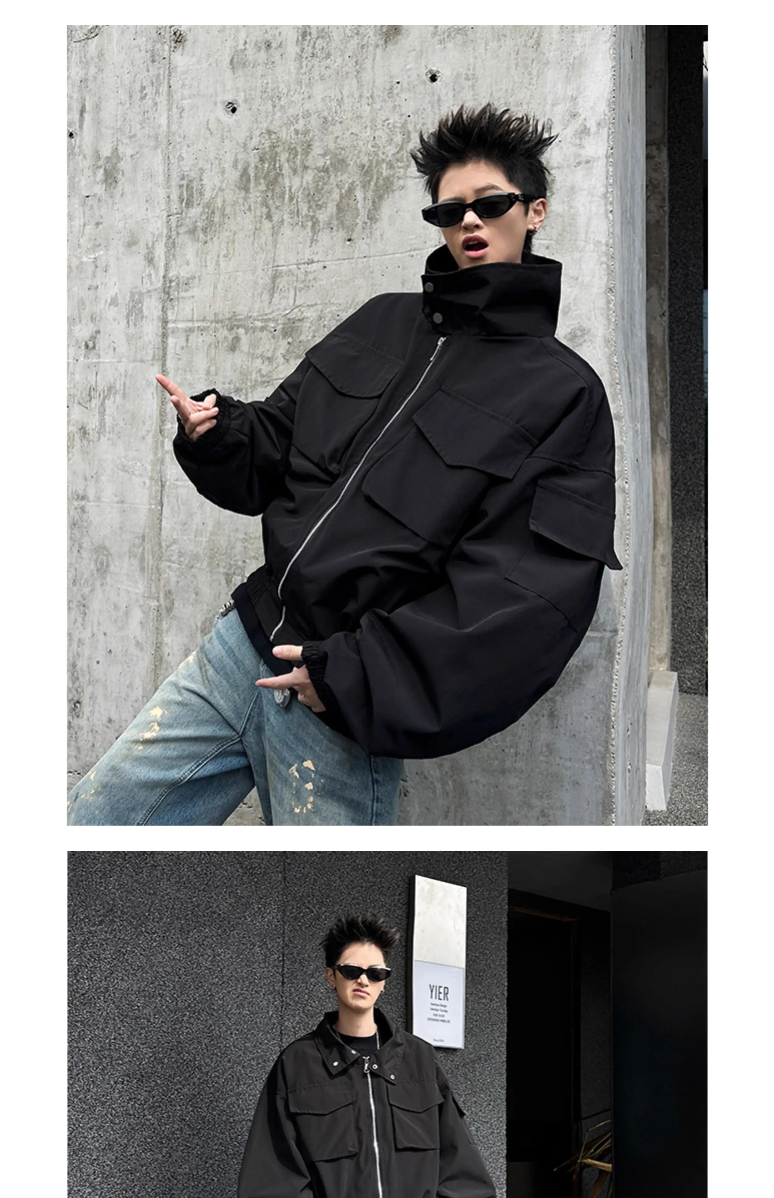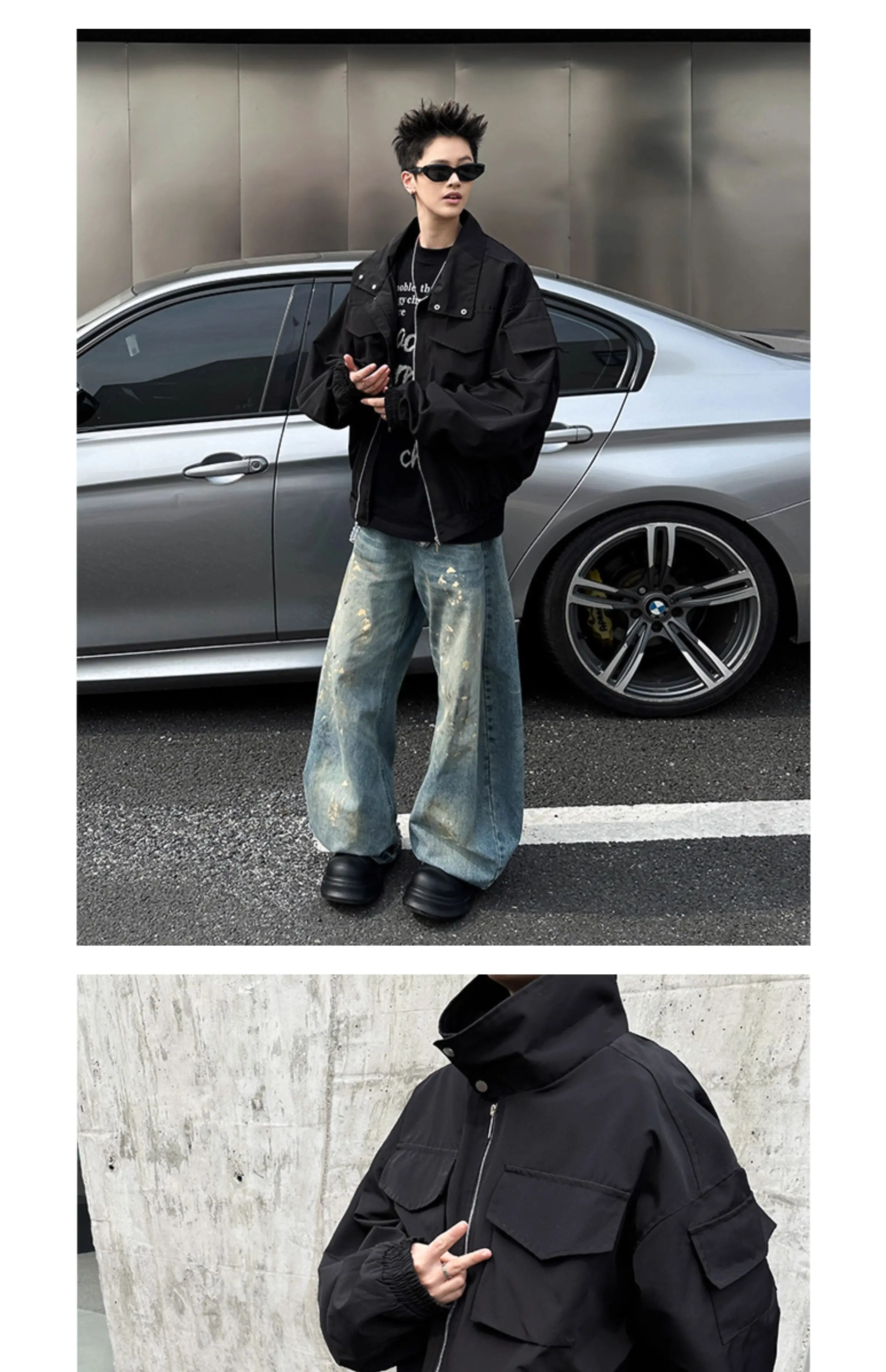 AIDASE  -  Outdoor Work Jacket Men's Spring Autumn American Retro Zipper Coat Silhouette Bomber Handsome High Street Flying Work Jacket