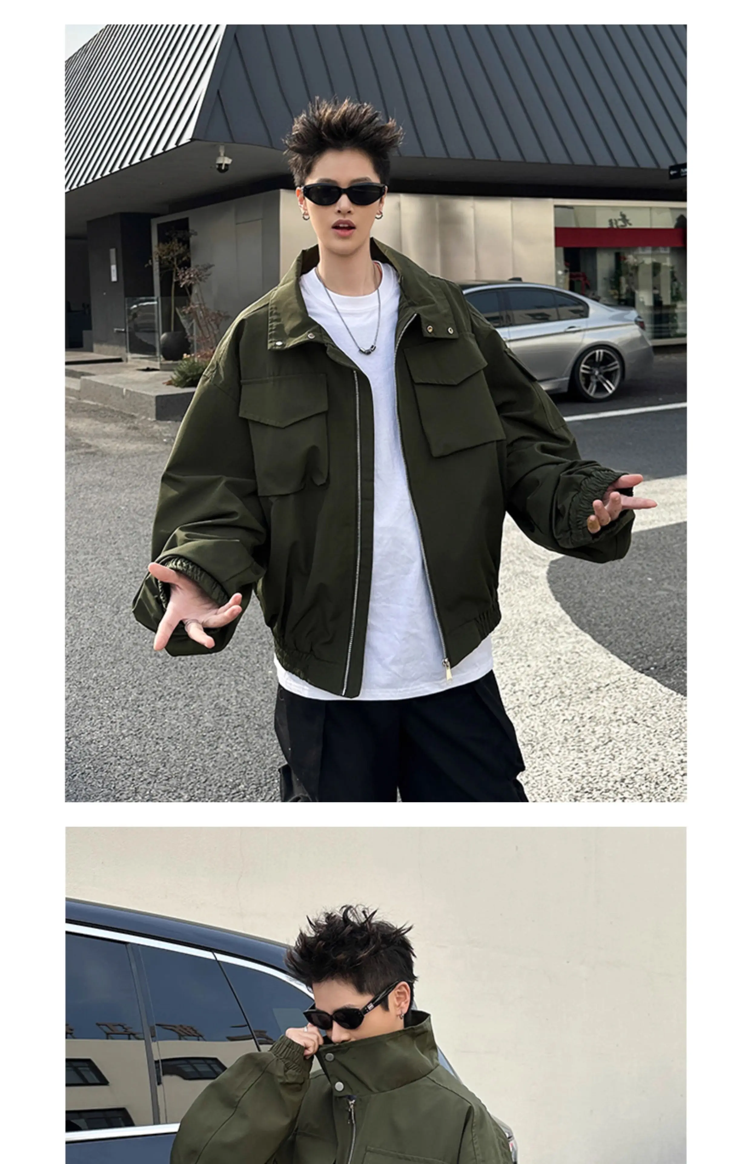 AIDASE - Outdoor Work Jacket Men's Spring Autumn American Retro Zipper Coat Silhouette Bomber Handsome High Street Flying Work Jacket