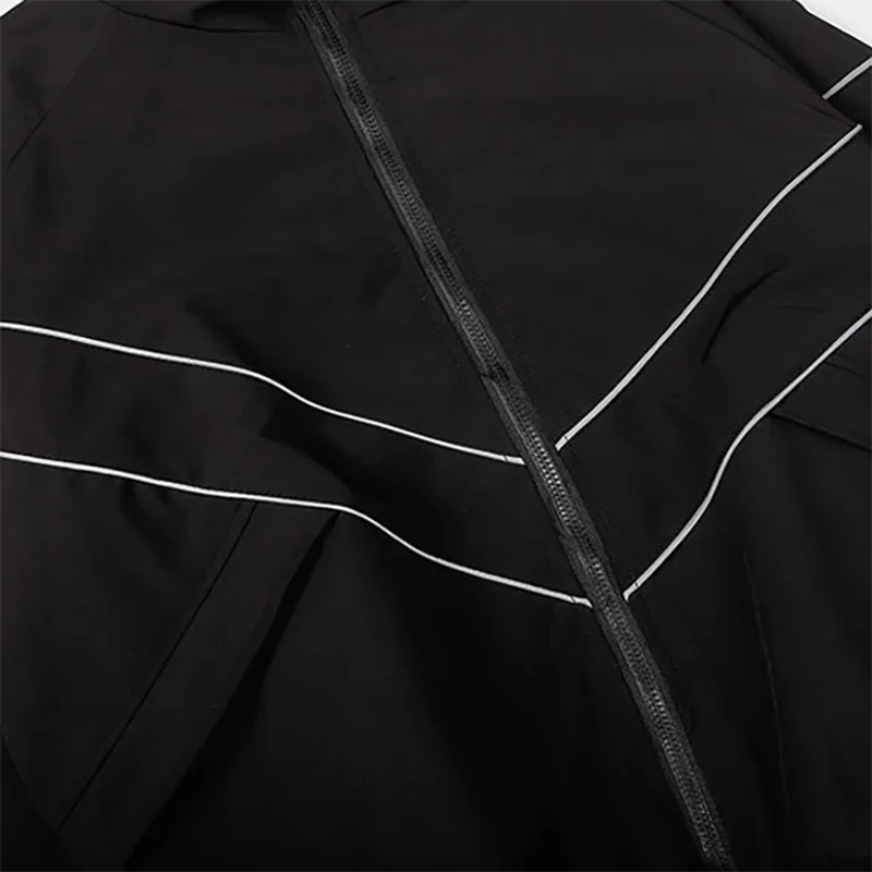 AIDASE - Reflective Striped Jacket Men Stand Collar Sports Windbreaker Coats Hip Hop Streetwear Zipper Jacket Harajuku Coats Black Blue