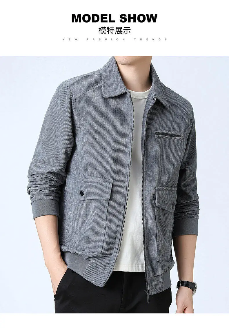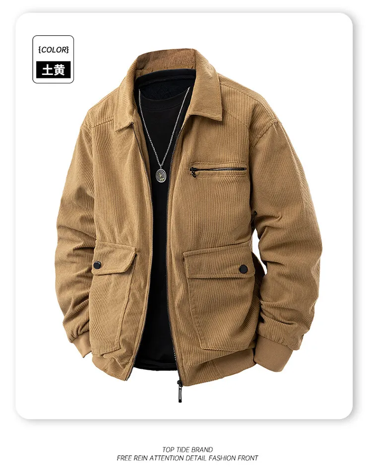 AIDASE - Spring and Autumn Corduroy Coat Loose Men's Trendy Fashion Zipper Multi Pocket Bomber Jacket