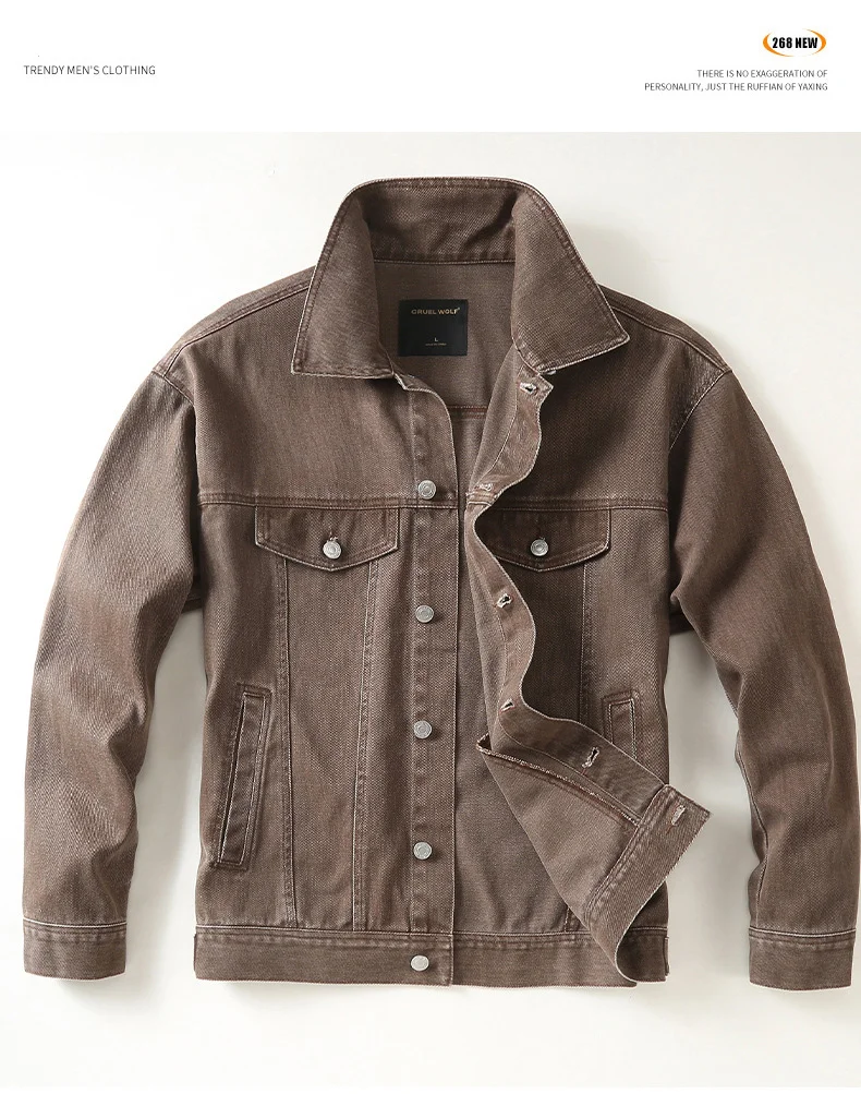 AIDASE - Spring Men's Classic American Retro Denim Jacket Tough Guy Loose Motorcycle Workwear Jean Coats Lapel Top 100% Cotton Outwear