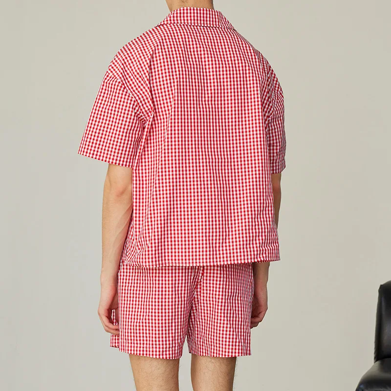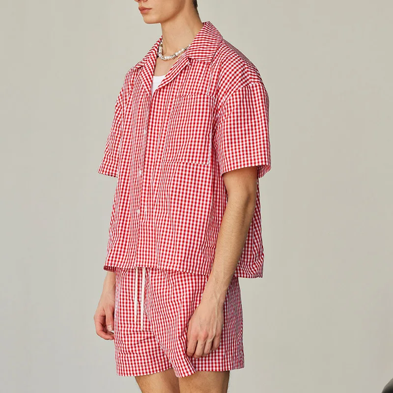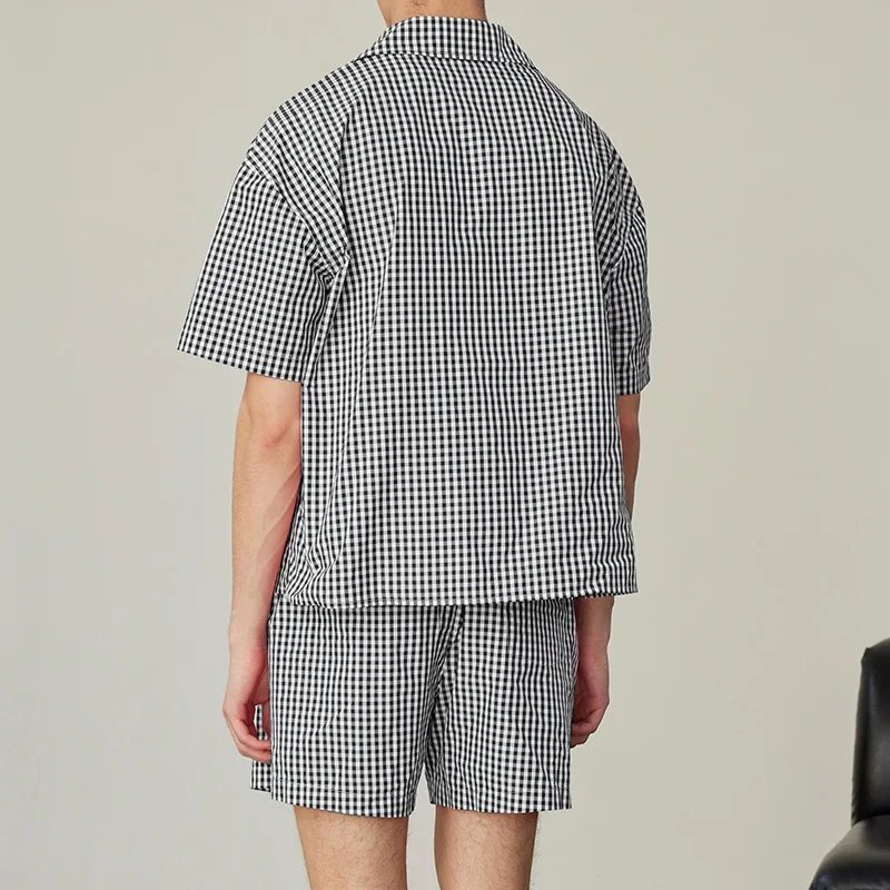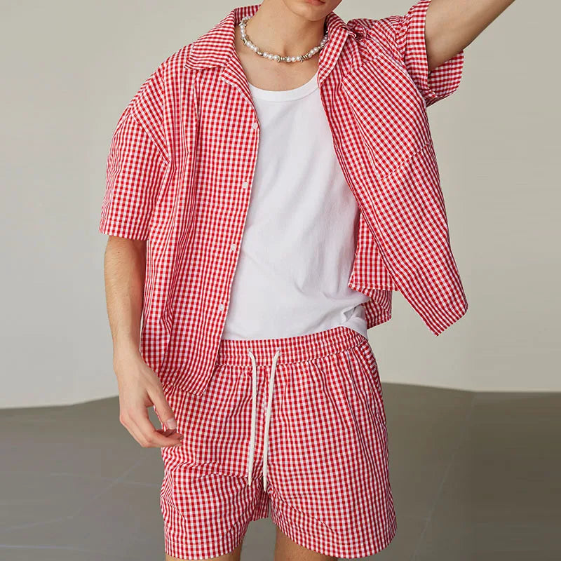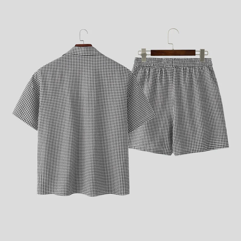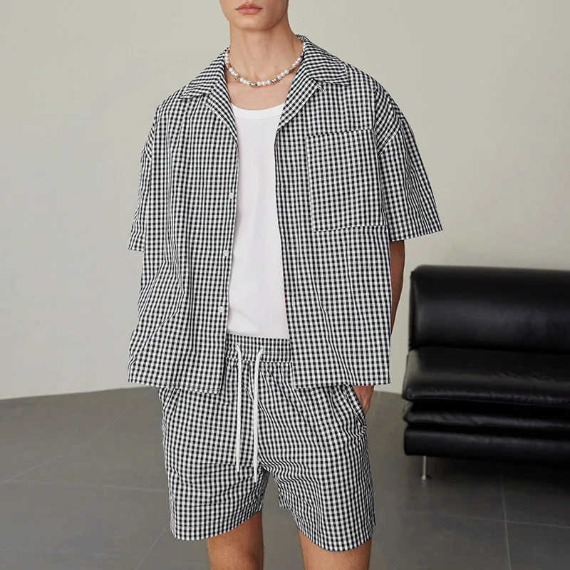 AIDASE  -  Men Plaid Sets Summer Vacation Streetwear Lapel Short Sleeve Shirt & Shorts 2PCS 2025 Loose Fashion Men's Casual Suits